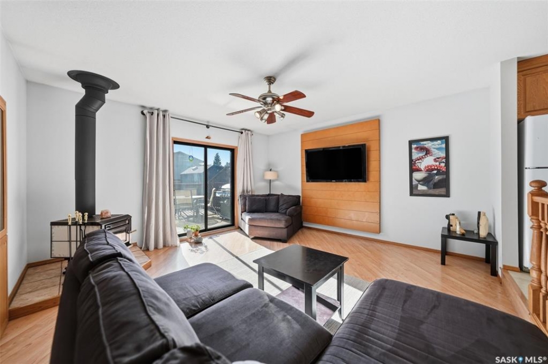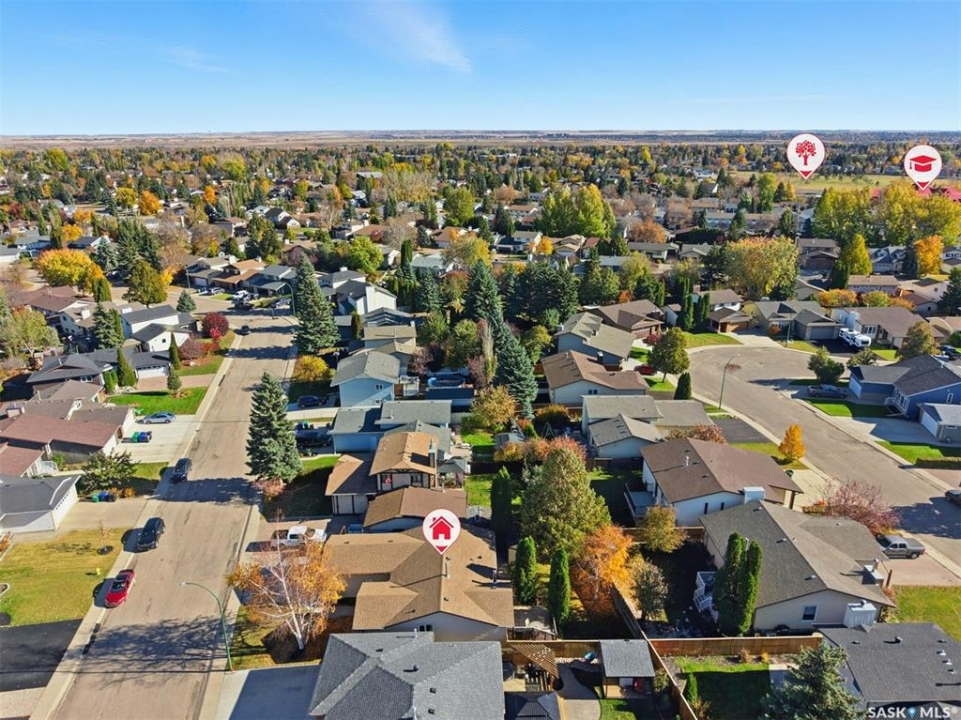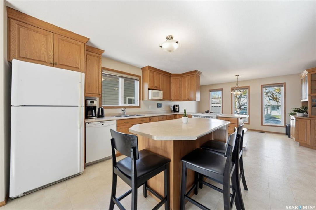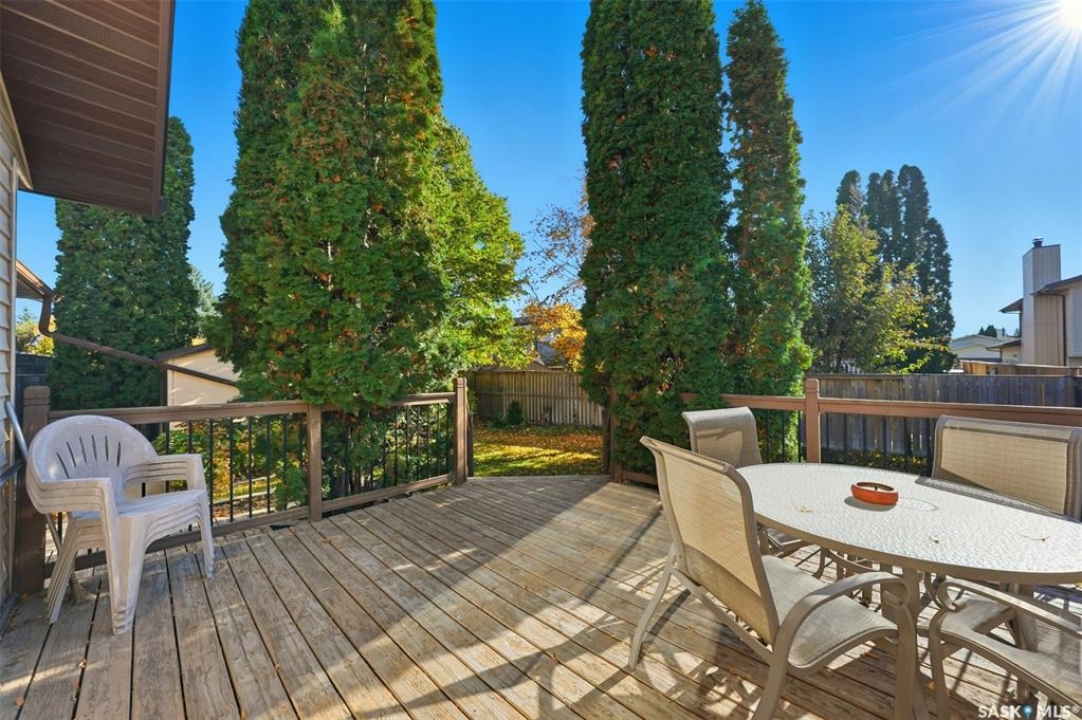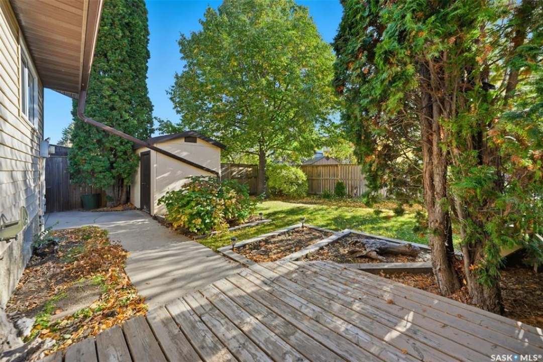 Charming Bungalow in the Heart of Silverwood Heights! Welcome to 1304 sq. ft. of well-maintained living space on a quiet crescent in one of Saskatoon's most desirable north-end neighborhoods. This 4-bedroom, 2 full-bath family bungalow offers an ideal blend of comfort, function, and location. Step inside to a bright, open-concept layout perfect for entertaining, featuring a cozy wood-burning fireplace, upgraded mechanical systems, and abundant storage throughout. The spacious basement is wide open—ideal for a pool table, media room, or custom family hangout. Enjoy cooking and dining with friends in the open kitchen/living space, then step out to a large deck in your mature, fully fenced yard—complete with shed, natural gas BBQ hookup, and plenty of room for the kids or pets to play. Additional highlights include: Newer shingles, windows, doors, and overhead garage door Finished single attached garage Triple driveway plus concrete side yard—perfect for boat or trailer parking Newer fence and tasteful upgrades throughout Shows 10/10! Close to top-rated schools, parks, and all north-end amenities, this home offers unbeatable value in a family-friendly location.Don't miss your chance to own a move-in-ready gem in Silverwood Heights!