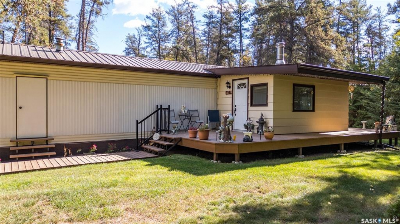 Just 10 minutes from Prince Albert, this well maintained 4 bedroom and 1 bathroom mobile home offers country living with convenience. The expansive living and dining area is filled with natural light from large windows and seamlessly flows into the spacious kitchen that has plenty of storage space. There are 4 comfortable bedrooms and a bright white 4 piece bathroom. Nestled on 1.5 acres, this fully fenced property is surrounded by 200–300 mature trees, precisely planted throughout the landscape to provide both privacy and natural beauty. A sprawling deck and firepit area create ideal spaces for outdoor gatherings, while the added bonus of a heated 7 ft x 18 ft shed adds valuable storage or workspace options. Water is supplied through a shared well located on the adjacent lot and the sewer system is a septic field to a septic tank. Situated near the North Saskatchewan River and the Nisbet Provincial Forest, this home offers a peaceful retreat close to nature. The adjacent lot is also available for purchase (MLS # SK021153), providing an exciting opportunity to expand your space. Act now, make this your next move!