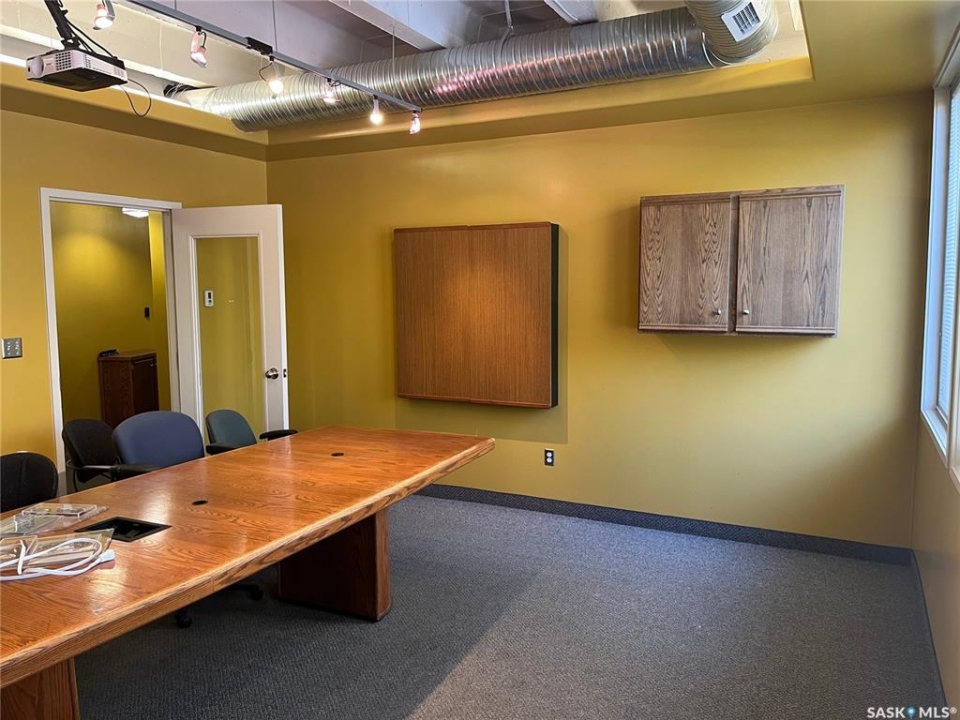 Prime 2nd-floor office space on Saskatoon's vibrant 2nd Avenue. Spanning approx. 5,000 sq ft, this unit is exceptionally well-designed for a professional team. The layout features a welcoming reception area, a large formal board room, four spacious private offices, a kitchenette, and a vast open-concept area ideal for collaborative workstations. A secure, dedicated server room provides critical infrastructure for any tech-reliant business. With onsite parking available and a prestigious downtown address, this is a rare opportunity to secure a premium, move-in-ready office space. Don't miss out!