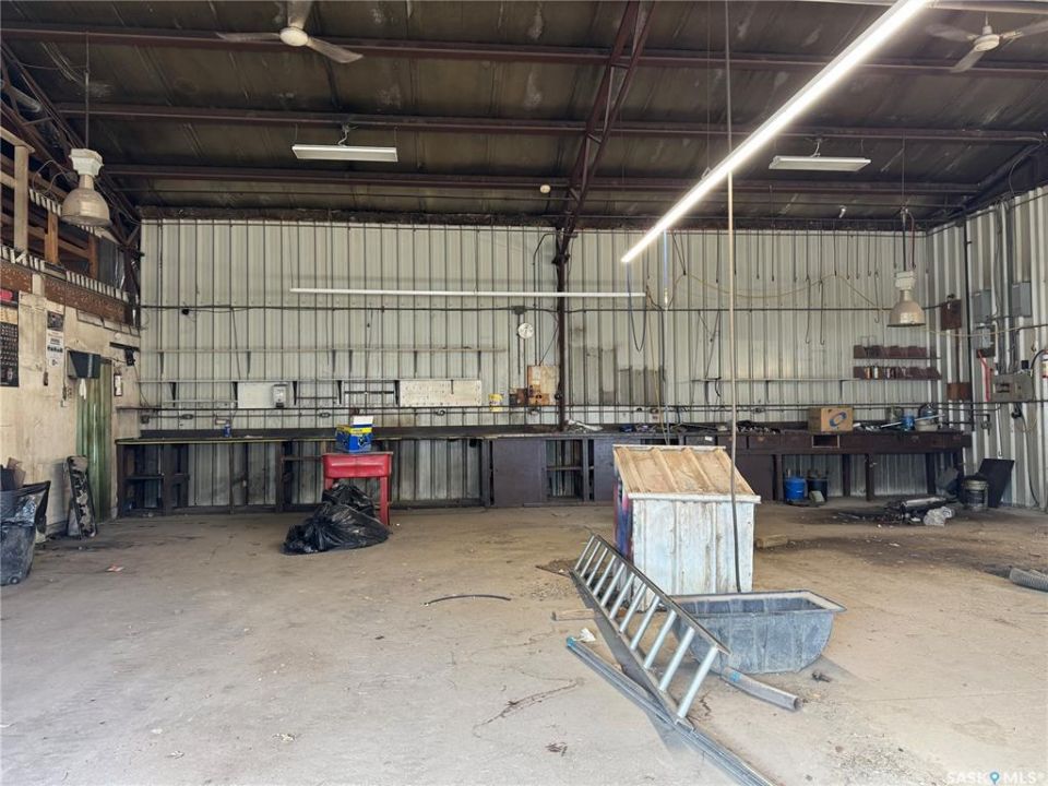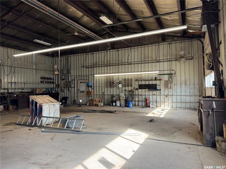 Located right in downtown Leroy, this commercial property at 124-126?Aspen Street is ideal for trades, service-based operations, or light industrial use. With 150 feet of street frontage, the site includes two large service bays with overhead doors, a paved apron, and street parking, offering excellent functionality and access for both staff and customers. The front of the building features a showroom, perfect for retail display or client-facing services, along with a two-piece washroom for convenience. A mezzanine level above includes an office and extra storage space, keeping administration separate from shop activities. Radiant heat efficiently warms the shop area, making it usable year-round. At the back, there's a detached two-car garage, plus a separate storage building on the side of the lot—great for equipment, materials, or additional vehicles. This property is being sold “as-is.” The seller makes no warranties or representations about the condition of the property. Buyers are encouraged to complete their own due diligence. Buyer to verify property line.