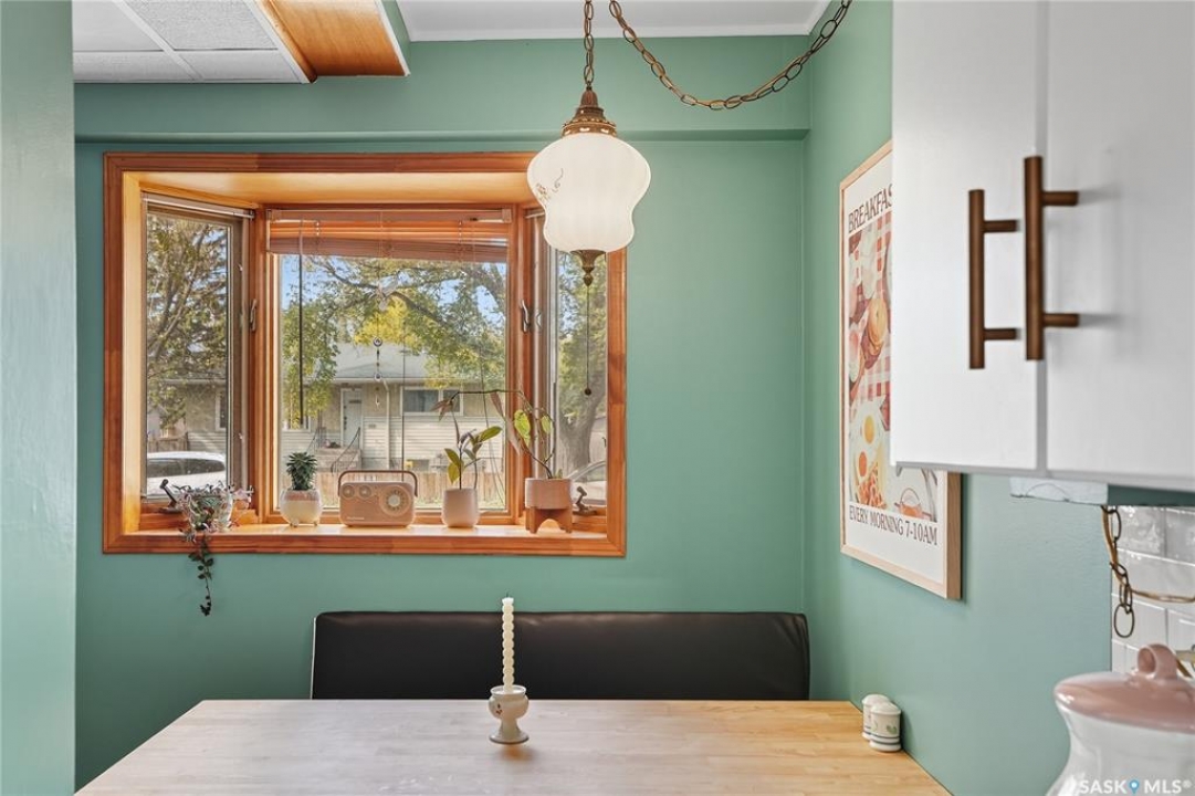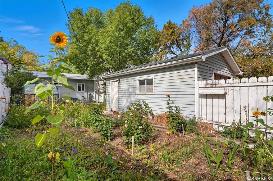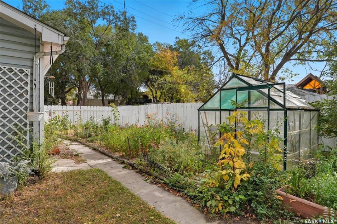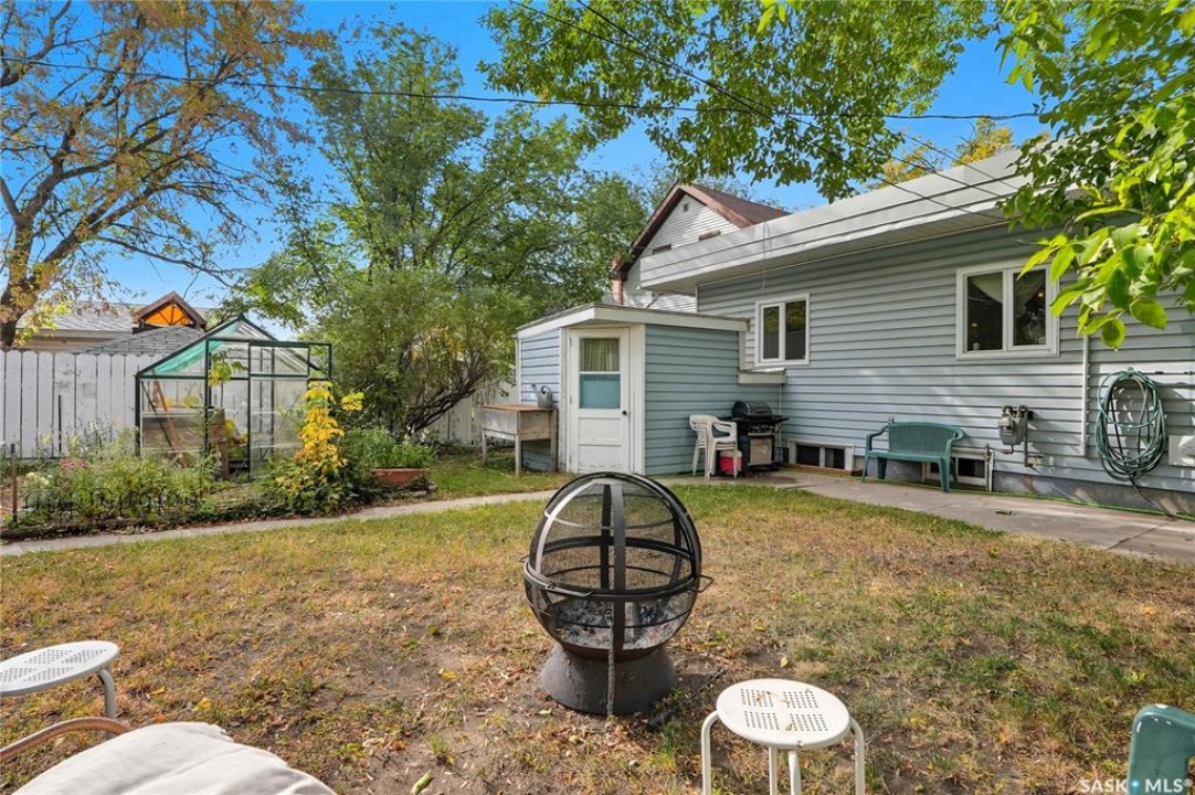 Classic charm and fresh renovations. This cute as a button bungalow is situated in Rivesrdale. Here you will find beautiful trees surrounding and a short walk to the river with some of the best restaurants in Saskatoon nearby. On the main floor you will find a cozy family room that features west facing windows for that beautiful evening light. The kitchen is a delight! Wood accents, tile backsplash, and a classic diner booth for eating at. The cabinetry has been updated with a new sink too. Down the hallway you will find 3 bedrooms and a 4 piece bathroom with flare! The basement has been recently refreshed with new flooring, drywall, and an updated bathroom. The functional layout welcomes you into a common space by the stairs and also features a completely separated entrance that is ideal for a basement suite! Here you will find a large family room that connects to a 4th bedroom. A sink is located in the partition space with an entrance to the 2nd bathroom that is complete with tiled shower. Step outside to find your own private backyard. This fenced area has a grass space and the most delightful garden with a small greenhouse! Additionally there is an oversized single-car garage that is perfect for keeping your car away from the elements and storing tools. This home has been cared for over the years and features a new rolled roof in 2015, updated windows, and high efficiency furnace. Don't miss out on this turn key home with revenue potential. Call today!