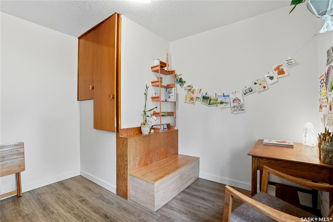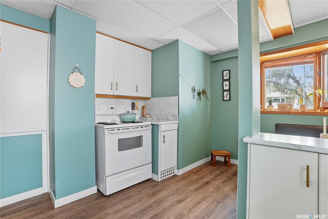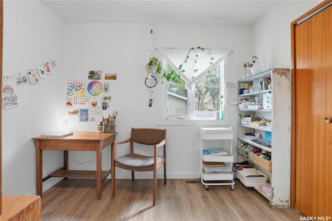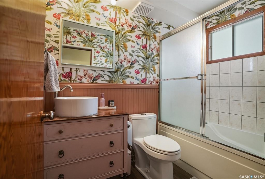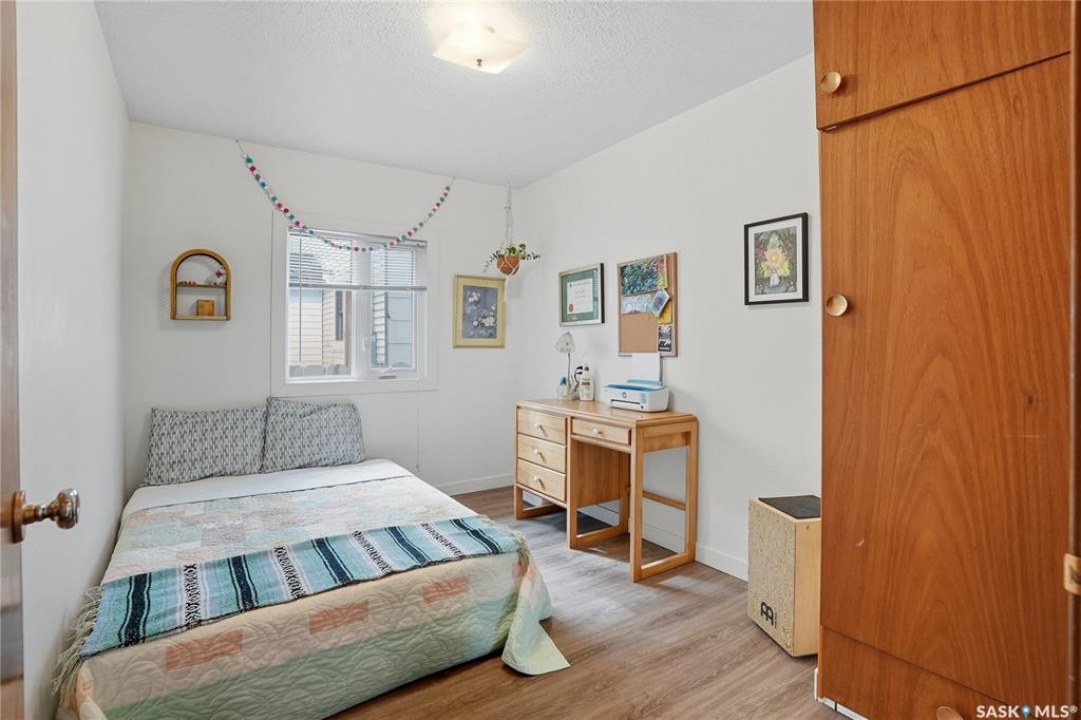 Classic charm and fresh renovations. This cute as a button bungalow is situated in Rivesrdale. Here you will find beautiful trees surrounding and a short walk to the river with some of the best restaurants in Saskatoon nearby. On the main floor you will find a cozy family room that features west facing windows for that beautiful evening light. The kitchen is a delight! Wood accents, tile backsplash, and a classic diner booth for eating at. The cabinetry has been updated with a new sink too. Down the hallway you will find 3 bedrooms and a 4 piece bathroom with flare! The basement has been recently refreshed with new flooring, drywall, and an updated bathroom. The functional layout welcomes you into a common space by the stairs and also features a completely separated entrance that is ideal for a basement suite! Here you will find a large family room that connects to a 4th bedroom. A sink is located in the partition space with an entrance to the 2nd bathroom that is complete with tiled shower. Step outside to find your own private backyard. This fenced area has a grass space and the most delightful garden with a small greenhouse! Additionally there is an oversized single-car garage that is perfect for keeping your car away from the elements and storing tools. This home has been cared for over the years and features a new rolled roof in 2015, updated windows, and high efficiency furnace. Don't miss out on this turn key home with revenue potential. Call today!