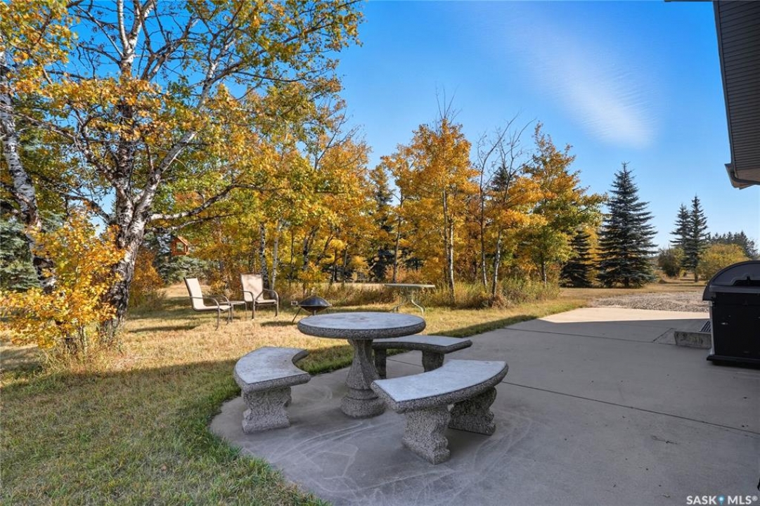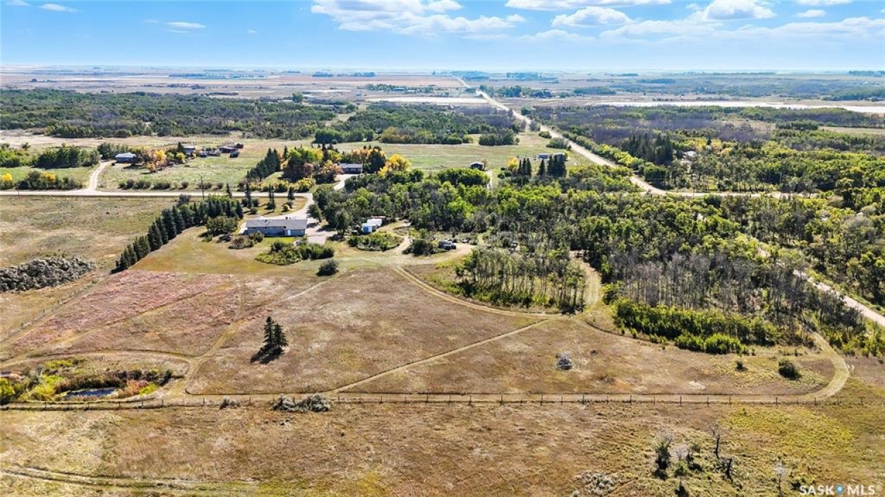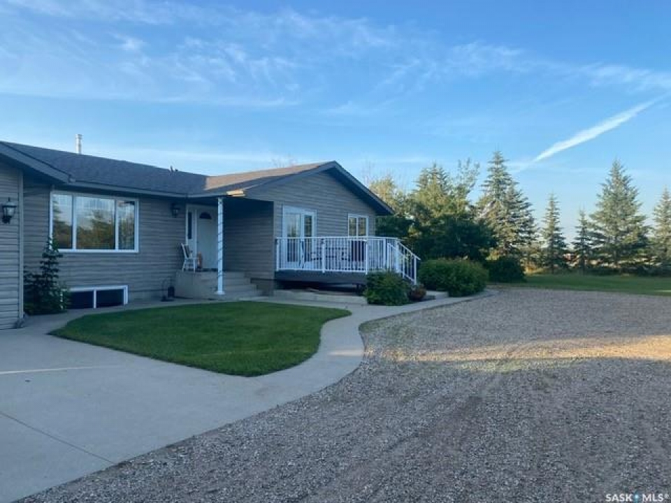 Location, loacation! Only 10 minutes from Saskatoon - this 1392 sq ft raised bungalow is just minutes off Highway 14. Sitting on 10 acres of land that could be easily be subdivided to create revenue and get a return on your investment. Trails wind through the trees and bush, giving you and your family the chance to enjoy dirt biking, quadding, snowmobiling, or even horseback riding right on your own property! The 24'x42' triple car attached garage/shop features 10' ceilings, a spacious work area, and plenty of shelving and storage for tools and toys. Inside the house, you'll feel the character the moment you walk in. The bright living room welcomes you with south-facing windows that flood the space with natural light throughout the day. In winter, the passive solar gain helps keep things cozy, and the wood-burning fireplace adds warmth and charm on a cold winter day. The kitchen is open and functional, with lots of cabinet space and room to host family meals and get-togethers. Just off the kitchen, you'll find a 2-piece guest bath and a convenient main floor laundry room. The main floor also features three big bedrooms and a 3-piece bathroom. Downstairs, the fully developed basement offers two more bedrooms, a large living area, and oversized windows that brighten the space and make you forget that you're in a basement. There's room for a games area, TV room, kids zone, or even a pool table! The property is serviced with natural gas and electricity, and includes a cistern for water that can be easily filled by hauling your own city water, or by delivery. The septic system consists of a concrete holding tank and a grey water pump out. Don't worry about getting the kids to and from school in Saskatoon, because school buses pick up right at the driveway go to elementary, and high schools in Saskatoon! This acreage has had thoughtful upgrades along the way, including newer windows and extra insulation on the exterior walls and in the attic. Book a showing today!