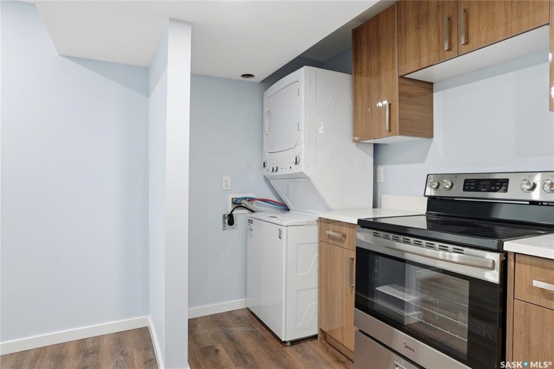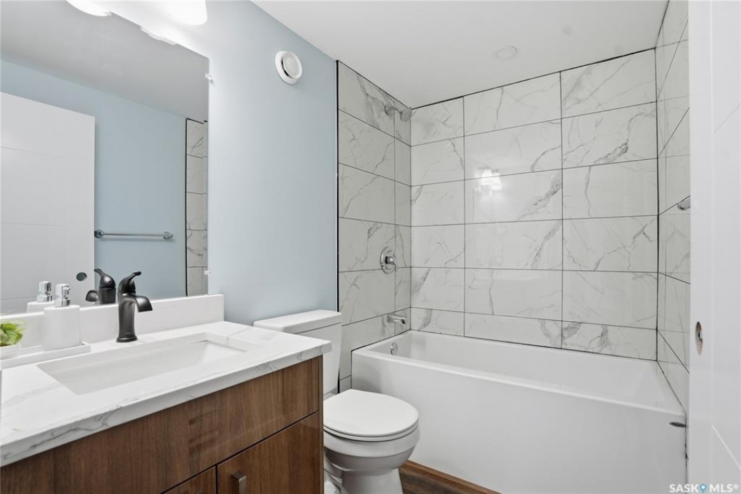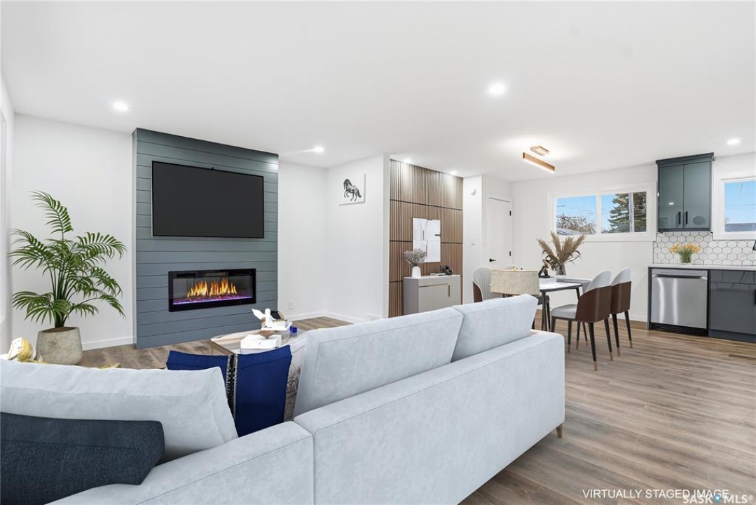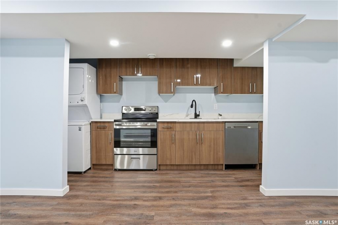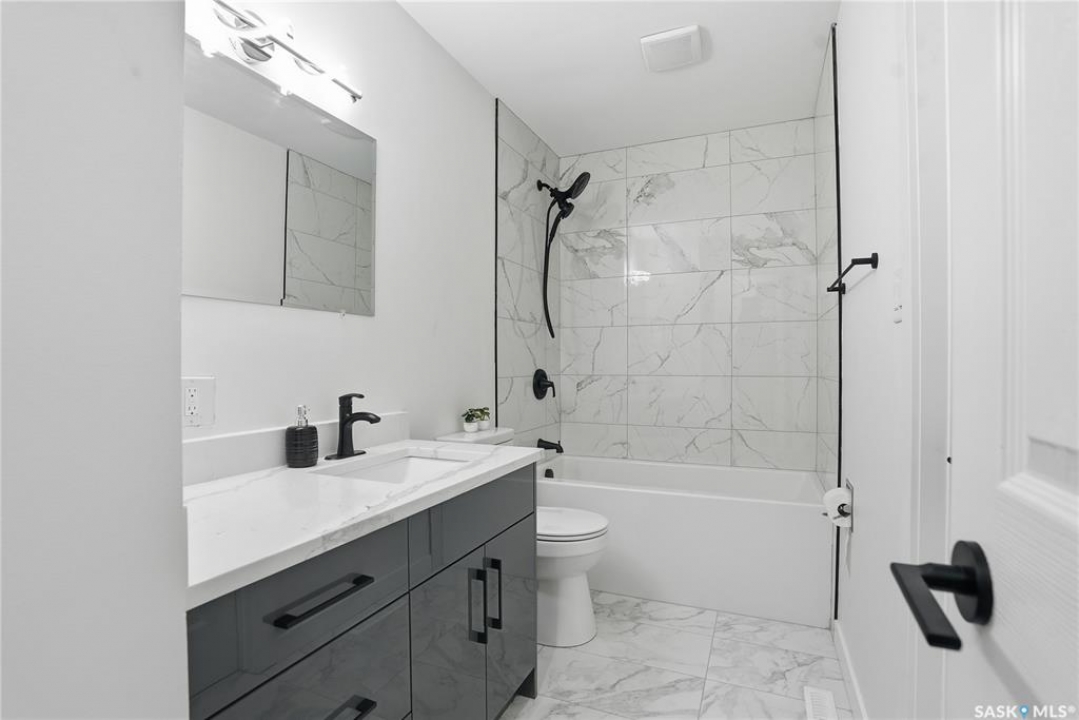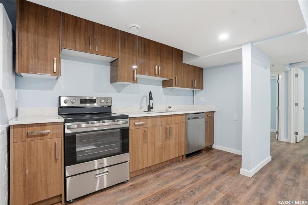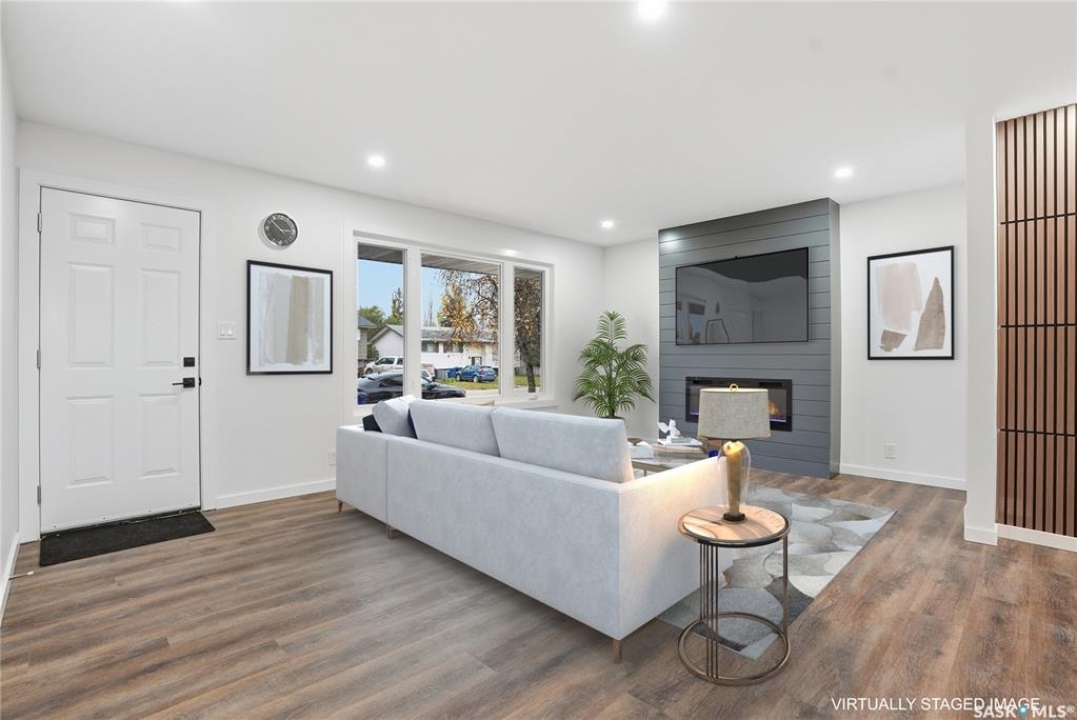 Welcome to this fully renovated gem in the heart of Warman featuring a LEGAL two bedroom basement suite! This 1,000 sqft. home has been completely redone from top to bottom, offering the feel of a brand-new home in a well-established neighbourhood. The main floor features a bright and spacious living room accented by a stunning electric fireplace with shiplap feature wall. The brand-new kitchen boasts custom high-gloss cabinetry, stylish backsplash, quartz countertops, and sleek stainless steel appliances. Down the hall, you'll find three comfortable bedrooms with all new vinyl plank flooring and a fully renovated 4-piece bathroom with luxe modern finishes. Downstairs, the legal 2-bedroom basement suite is a showstopper in itself. This brand-new suite includes a large living space, modern kitchen with quartz countertops, full appliance package, in-suite washer and dryer, all-new egress windows, and sound bar insulation in the ceiling for added comfort and privacy, an ideal setup for generating rental income. No detail has been overlooked in this renovation — with all-new mechanical systems including new furnace, water heater, HRV, and sump pump. Additional upgrades include new windows throughout, new siding, new electrical, new doors and trim, re-poured and levelled basement slab, and fully re-insulated basement walls. The property also features a double detached garage with new siding and an oversized garage door, adding convenience and value. This home stands out for its exceptional craftsmanship, practical design, and outstanding investment potential. Ideally located just minutes from Great Plains College and all of Warman's amenities, with quick and convenient access to the highway. Don't miss this incredible opportunity, a turn-key home with a legal suite in Warman doesn't come around often! Ask your agent for a full list of the extensive work that was put into this property.