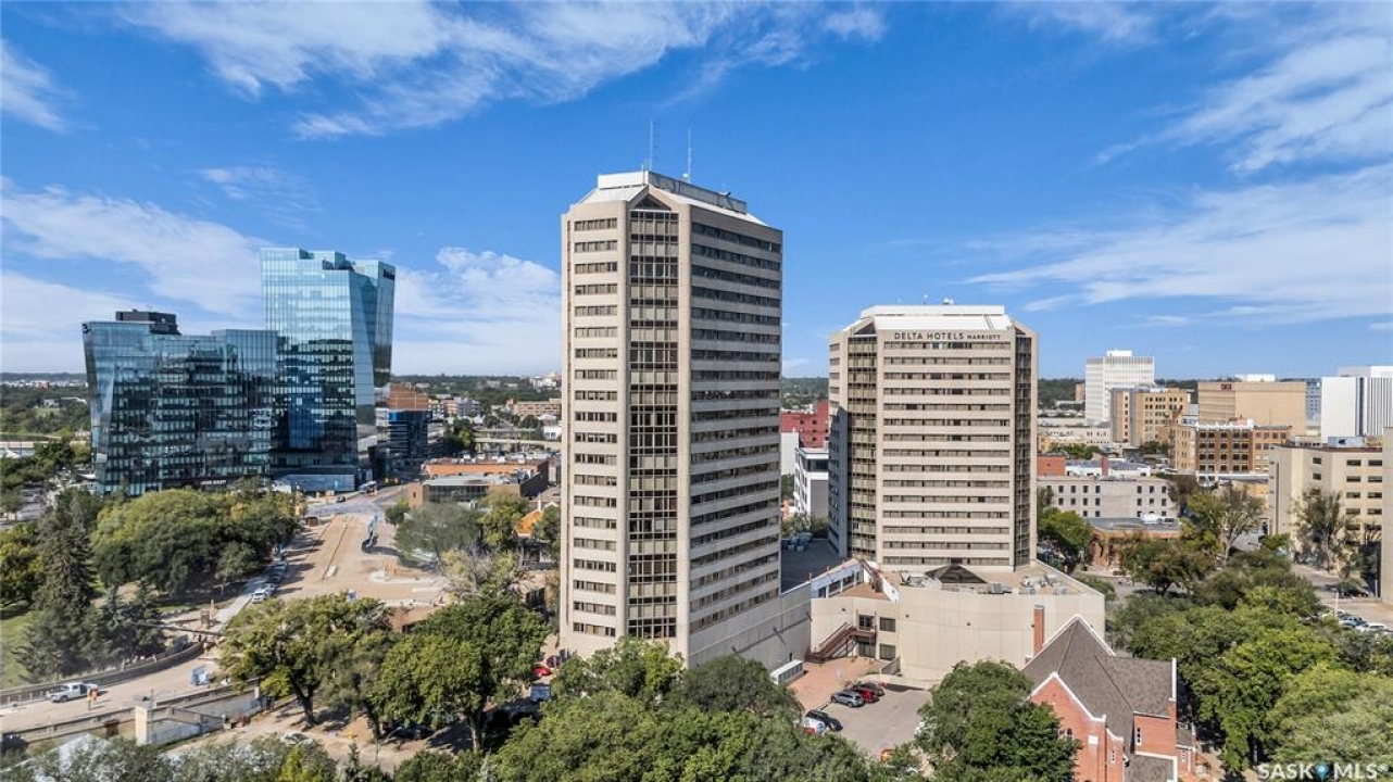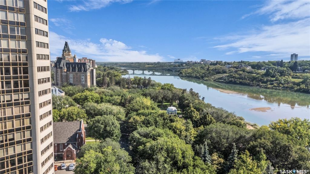 The Renaissance – Iconic Views & Urban Living Welcome to The Renaissance, where location, lifestyle, and luxury come together. This 2-bedroom, 2bathroom condo has been extensively renovated and is completely move-in ready—offering not just a home, but a statement. From the moment you step inside, the unmatched view steals the show—looking directly onto the historic Bessborough Hotel and beyond. Whether it's sunrise coffees or sunset wine, your private space frames one of the best views in Saskatoon. Located just steps from the Saskatchewan River, walking and running trails, and a short stroll to Broadway, you're never far from local gems like Poached, Shelter, and Cafe Del Rey. The best of Saskatoon's dining, coffee, and culture is truly at your doorstep. And when you're not out enjoying the neighbourhood? You'll have access to top-tier amenities including a full gym, indoor pool, and waterslide—making it easy to relax or recharge without leaving the building.