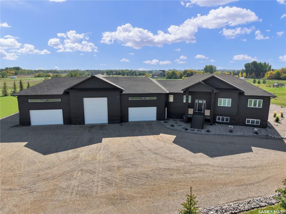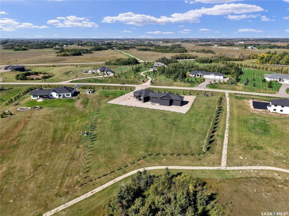 Welcome to this exceptional custom-built estate, a rare combination of sophistication, comfort, and modern design. Strategically located within the exclusive Grasswood Estates, this property provides the epitome of luxury lifestyle both in and out. Walk in and find yourself in a considerate floor plan with 12mm waterproof laminate flooring throughout, in-floor heat in the basement, and central air for warmth all year round. The gourmet kitchen boasts a natural gas hookup, waterfall island, microwave/oven combination, and streamlined finishes to create a fashionable and efficient space. Live outdoors on the front and rear composite decks, including a covered deck perfect for year-round entertaining. The beautifully landscaped yard boasts an irrigation system with a well that provides water only for the irrigation system (drip irrigation system), crushed rock landscaping, and more than 100 mature trees for shade, privacy, and serenity. Relax in the spa-inspired bathroom with a 12-inch rain shower, or withdraw to the huge 2400SQFT heated garage with a 20-foot interior room, ideal for truck parking or 10 vehicles or workshop layout with industrial ceiling fans, industrial heaters and industrial led lights. Among these are natural gas BBQ hookup, high-end construction, and an unmatched combination of luxury and usability. Whether entertaining guests or simply soaking up peaceful prairie sunsets, this rare property was crafted to awe. Enjoy the finest combination of estate living and contemporary convenience - only minutes from Saskatoon. Buyer and Buyer's agent to verify measurements. Please don't hesitate to call me or your favourite realtor to book a showing.