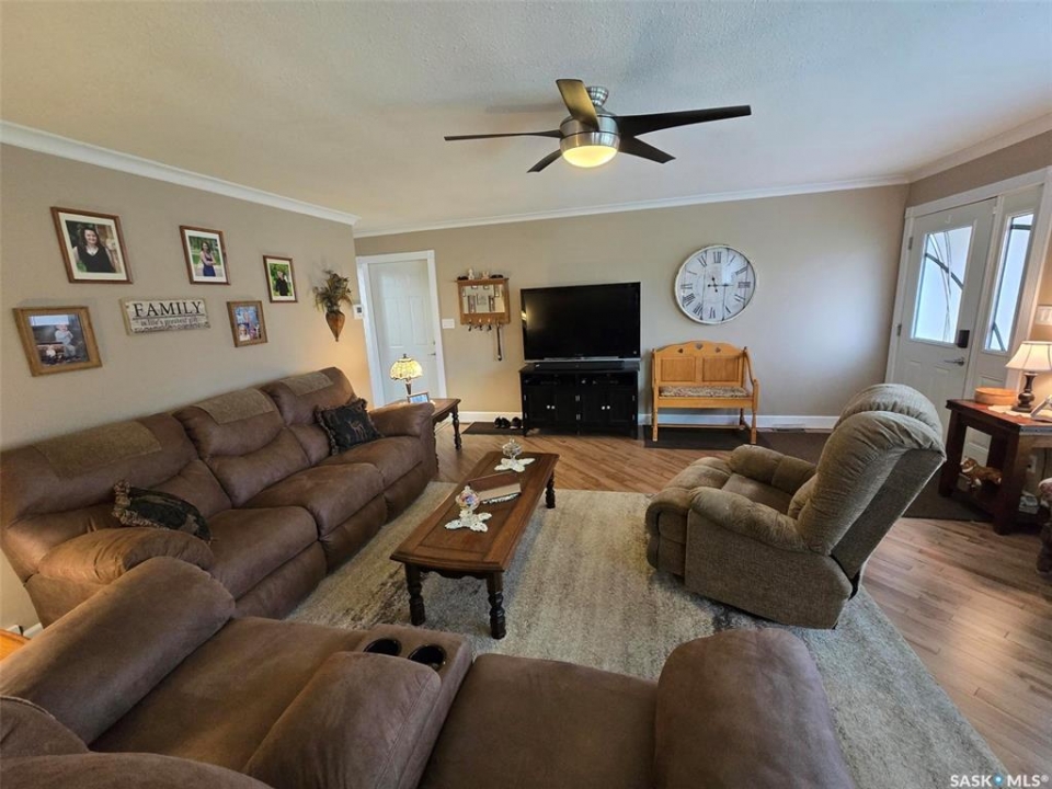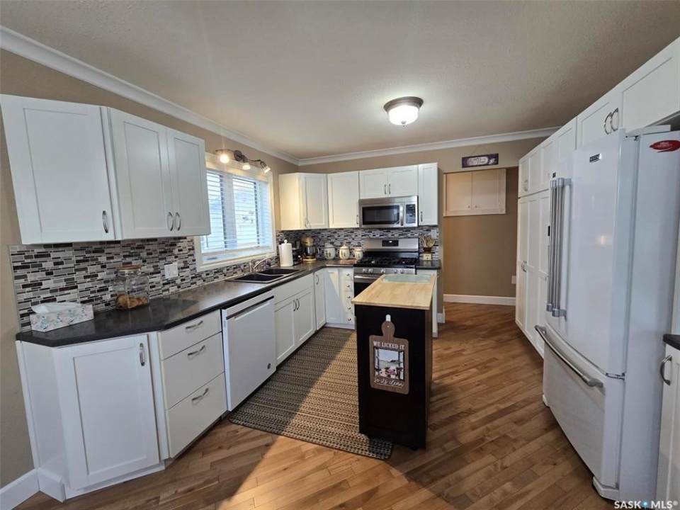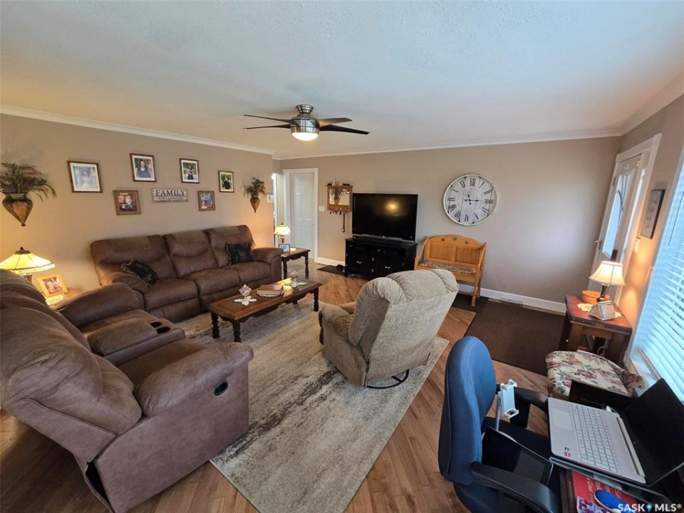 Enjoy the comforts of 718 Stella Street in Grenfell . A great family town and a 3 bedroom plus 3 bath home that will sure to please what you are looking for. Well maintained home searching for a family of retired couple! Step into this 1986 solid bungalow with 1304 sq ft on main level and another 1304 sq ft in the finished basement. Situated on a 66' x 165' and located across from the Health Center and down the road from the Elementary School. Exterior highlights to include... Fenced yard with well planned & productive garden , deck (16' x 20') with gazebo, a firepit space, and new in 2023 a double detached garage (24' x 24') in the back yard for all the storage and work space you desire. The home has an attached garage (28' x 20') another bonus to the property. Main floor of the home is spacious and a great design to provide a semi - private living room from the dining room and kitchen. New hard wood flooring throughout the main areas gives the space a seamless transition. Check out the classic white kitchen with an abundant of storage and counter space for the chef/baker in the family. Lots of natural light filter through the new vinyl windows. Ceilings, crown moldings , baseboards and paint are some of the updates in the area. Spacious primary bedroom that fits a king bed and has "HIS & HER" closets with organizers. Bright and clean 4 piece bathroom , has a new vanity, sink, paint and lighting. 2nd bedroom allows for a queen bed , and a new barn door for the closet. Storage is not a concern here , with 3 closets in the hallway. The south side door enters into a porch, laundry room and 1/2 bath. A perfect place to wash up from the garden or use the convenient washroom. Basement is finished with 1 bedroom , another guest room(office), a storage room, a 3 piece bathroom and a mechanics room. Extra features: Newer HE furnace & NG water heater (2020), NG stove , NG BBQ hook up, central air , back flow valve. This beauty has it all! Make it your HOME!