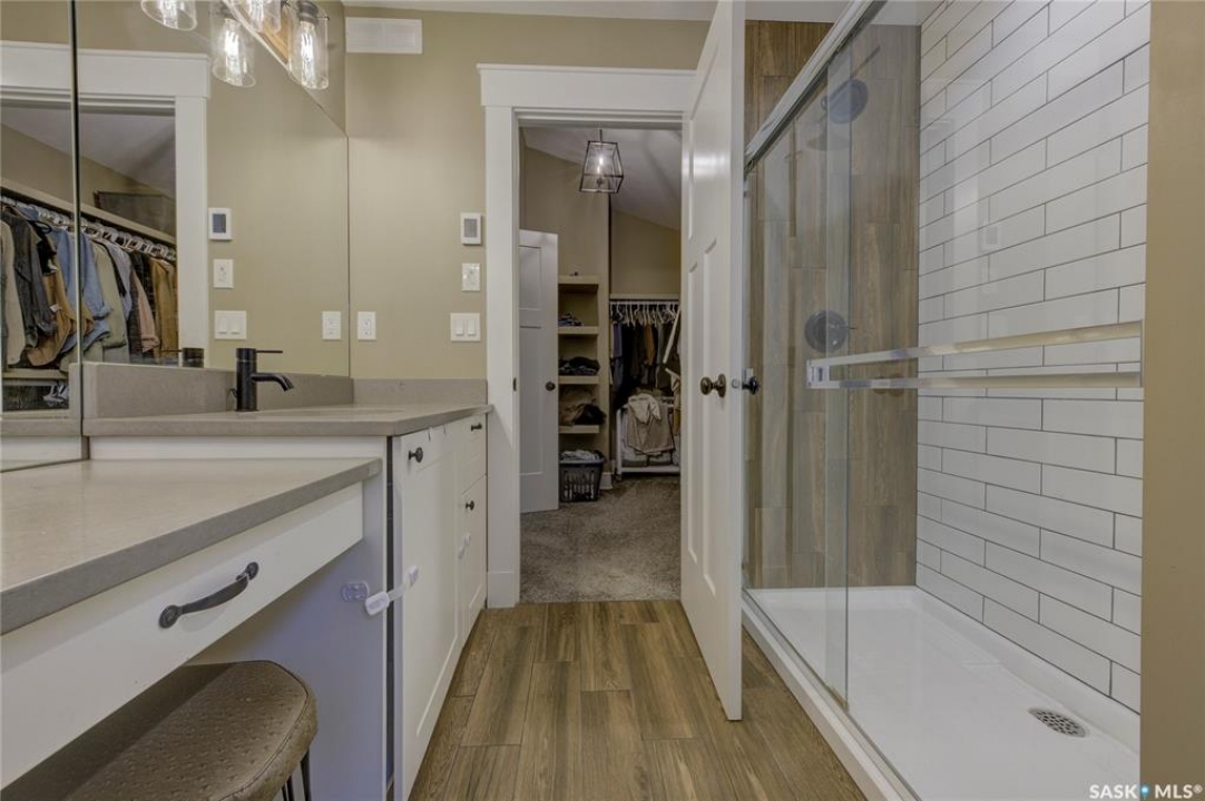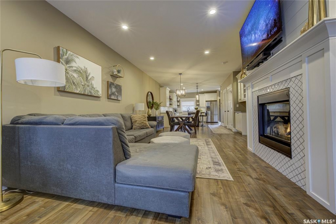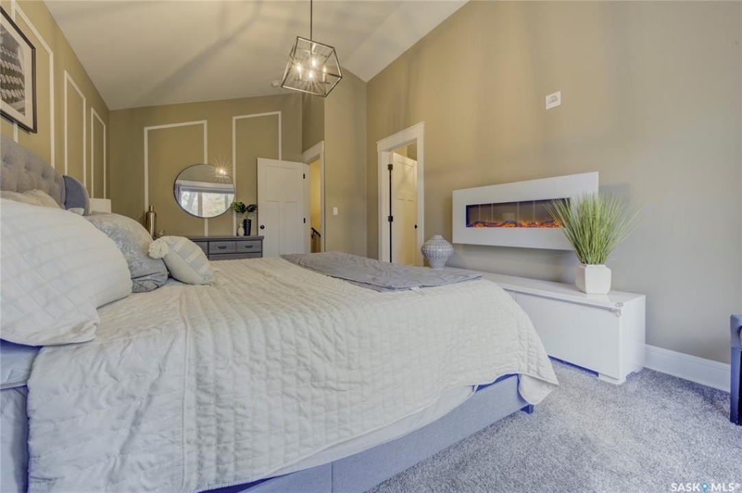 Some homes catch your eye—this one captures your heart. Welcome to this exceptional 1,757 sq ft two-storey in the sought-after community of Haultain. From the moment you step inside, soaring 9-foot ceilings, a striking gas fireplace, and an airy open-concept layout set the stage for a home that's as stylish as it is comfortable. The kitchen is a showpiece—featuring a farmhouse sink, quartz countertops, and a smart, functional design that makes entertaining and everyday living effortless. Central air conditioning keeps things comfortable, while the large deck and maintenance-free landscaping invite you to enjoy the outdoors without the work. Upstairs, the primary suite is your personal escape. A vaulted ceiling and wall-mounted electric fireplace add warmth and charm, while a massive walk-through closet leads to a spa-like ensuite with heated tile floors—a little everyday luxury you'll never want to give up. Two additional spacious bedrooms and convenient second-floor laundry complete the upper level with practicality and ease. The lower level is a blank canvas with serious potential—featuring a separate entrance, in-floor heat rough-ins, plumbing rough-in for a future bathroom, and its own electrical panel, making it ideal for a future suite or personalized development. A double detached garage completes the picture. Tucked away on a quiet, tree-lined street, this home blends modern design with timeless appeal. It's not just a place to live—it's a place to love. Book your showing today!