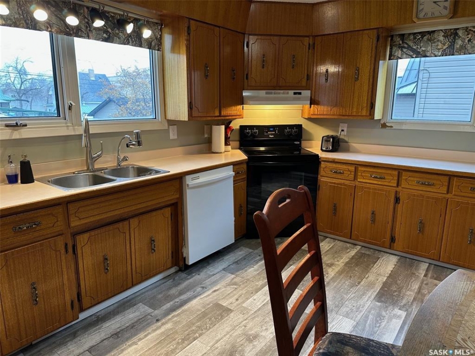 This home is located in the central area of Estevan and is close to the downtown area, grocery store and banks. The main floor features a spacious eat in kitchen, large south facing living room, 3 bedrooms and full bathroom; as well the laundry is conveniently located in the back entryway. The fully developed basement has another kitchen, 2 more bedrooms, full bathroom, family room and laundry/storage room. Plenty of room for your family; and The back yard is completely fenced and includes an over sized double carport and storage shed
