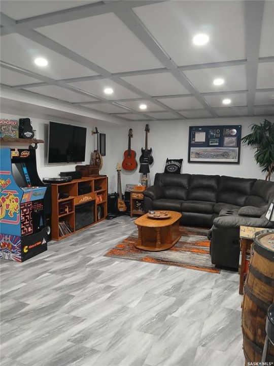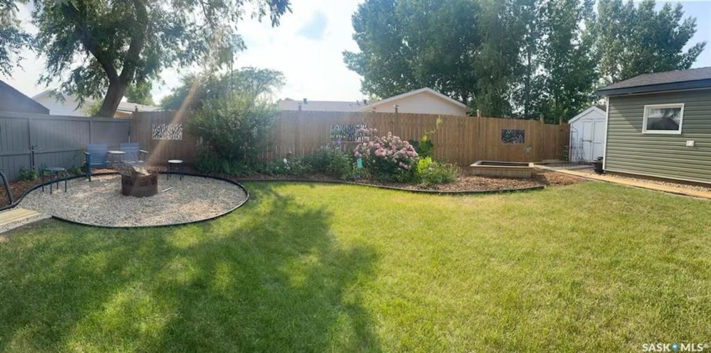 Nestled in a serene cul-de-sac in the heart of Shaunavon, this beautiful home offers the perfect blend of comfort, style, and functionality. Step onto the inviting front veranda and feel instantly at home. Inside, the open-concept main floor boasts a spacious, light-filled living room that flows seamlessly into a well-appointed kitchen. The kitchen is a chef's dream, featuring a corner pantry, ample cabinetry, and large, bright windows that bathe the space in natural light. Garden doors lead directly to a generous back deck, perfect for indoor-outdoor entertaining. The main floor also includes a cozy office space, ideal for a home business, and convenient washer and dryer hookups near the kitchen for added practicality. The master bedroom is a true retreat, complete with a luxurious four-piece ensuite featuring a heated lamp, oversized jetted tub, and dual showerheads. Two additional bedrooms on the main floor offer ample closet space, ensuring comfort for family or guests. The fully renovated basement, updated within the last two years, showcases modern finishes with new flooring, doors, lighting, and a sleek three-piece bathroom. Two spacious bedrooms, a utility room, and a generous storage room complete this versatile lower level. Stay comfortable year-round with central air conditioning. Outside, the professionally landscaped backyard is a private oasis, featuring a new fence (2022), a fire pit area, and automatic underground sprinklers for both front and back yards. A single detached, insulated, and heated garage provides additional convenience. This move-in-ready home combines modern upgrades with thoughtful design, making it perfect for families, professionals, or anyone seeking a peaceful retreat in Shaunavon. Don't miss your chance to own this gem!