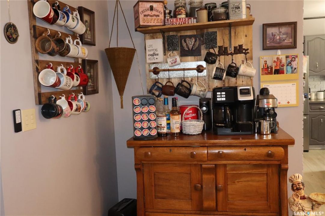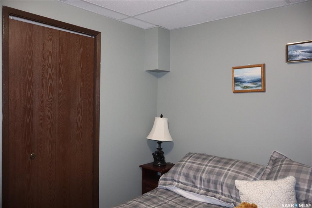 Situated on a spacious double corner lot in the Town of Rockglen, this property showcases upgraded vinyl siding and faux stone accents, complemented by a durable metal roof. All windows and doors are high-quality vinyl replacements. The insulated and heated double attached garage provides reliable year-round utility. Check out the awesome view of the rolling hills! The kitchen features an island with a cooktop, extensive cabinetry, and a nook ideal for a coffee bar setup. An open-concept dining area connects seamlessly to the kitchen and grants access to a tiered deck through a garden door. The living room offers ample natural light via an oversized window. The primary bedroom is enhanced by an updated three-piece ensuite with a walk-in shower. Two additional bedrooms are located on the main floor, along with convenient laundry facilities tucked into the hallway. The developed basement includes a sizable family room equipped with a wet bar, a three-piece bathroom, and a den currently functioning as a bedroom (buyers are advised to verify window egress compliance). Additionally, there is a versatile multipurpose room—well-suited for crafts or hobbies—with attached storage space. The utility room provides built-in shelving and houses a natural gas forced air furnace. The exterior boasts abundant storage solutions, numerous upgrades, and a tiered deck designed for outdoor cooking and entertaining. The landscaping is arranged for low maintenance and incorporates underground sprinklers. This property is ready for its next family to enjoy.