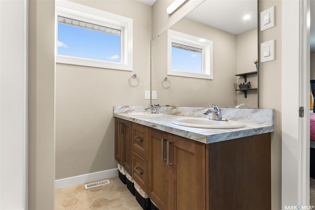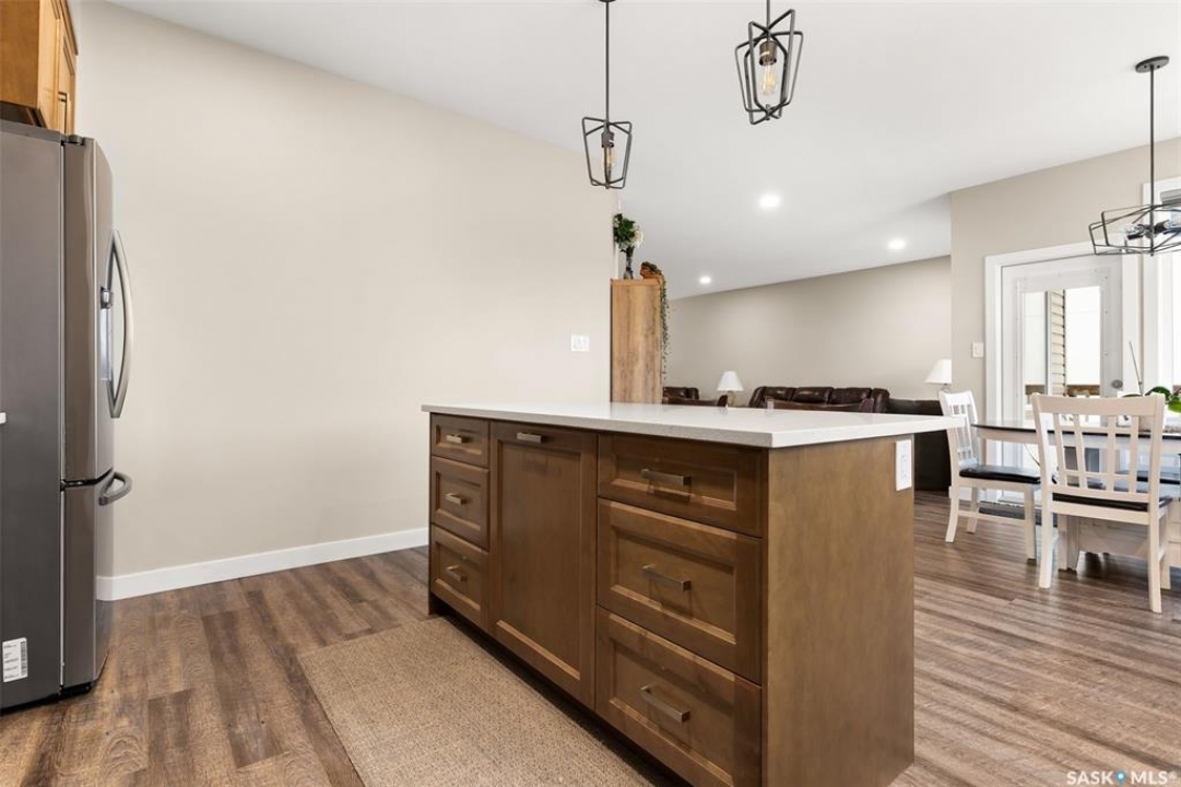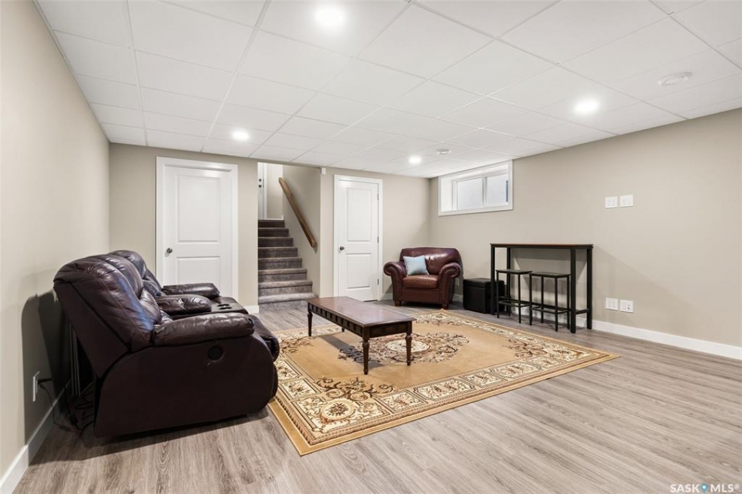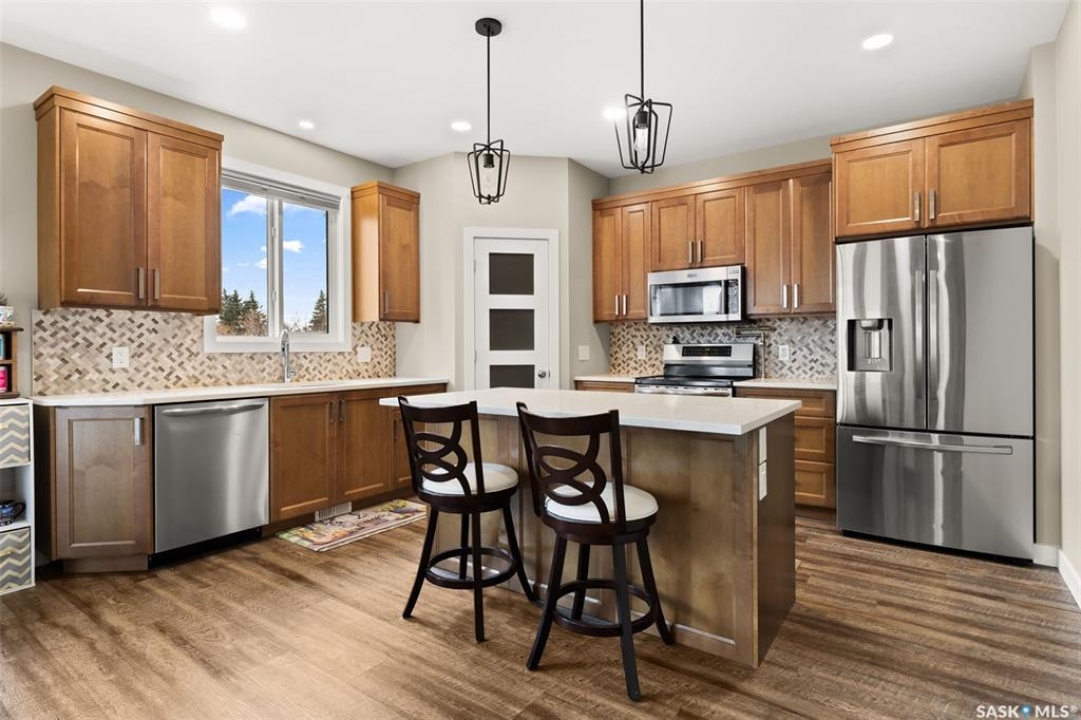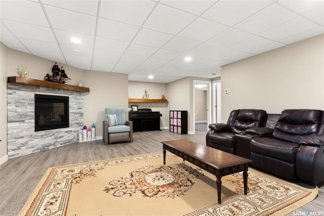 Discover the perfect blend of comfort and function in this spacious 5-bedroom, 3-bathroom family home. Step inside to find a welcoming and open main floor with 9ft ceilings. The sun-filled kitchen features maple cabinetry with stone counters, a stylish backsplash, pot filler, and plenty of drawers and prep space. Down the hall are 2 bedrooms, a 4-piece bathroom and main floor laundry for added convenience. Upstairs, the private and spacious primary suite offers a relaxing escape with a large walk-in closet and 5-piece ensuite with two sinks. The fully finished basement expands your living space with a cozy gas fireplace with custom mantle, perfect for movie nights or family gatherings. Here you will find 2 additional bedrooms ideal for guests or an at-home office. Outside, the yard is completely finished and offers a low maintenance fence, raised garden beds with underground sprinklers, a patio and covered deck. Enjoy the convenience of an attached and heated 24'x 24' garage and Govee permanent lighting that adds a touch of charm year-round. With no back neighbours this is a wonderful opportunity for those seeking space, quality, and privacy, all in one exceptional home.