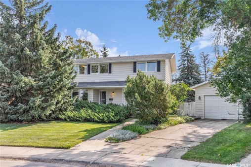 Welcome to 54 Britnell Crescent, a rare opportunity to own a timeless two-storey home on one of West College Park's most prestigious and quiet crescents. Set on a massive pie-shaped lot—just shy of 12,000 sq. ft.—this property is a private park all your own. Whether you're picnicking under the trees, dancing beneath the northern lights, watching rabbits hop through the yard, or picking apples from your very own tree, this backyard is pure magic. The home offers 1,816 square feet of well-planned living space, freshly dressed with new exterior paint and complemented by a detached garage and concrete driveway. Inside, you'll find four generous bedrooms upstairs (easily converted back to five if desired), including a primary suite with a sizeable closet and private ensuite. The main floor was designed for both comfort and connection: a formal dining room big enough to host your entire extended family, a rear family room with built-ins to showcase your travel treasures and serene views of the yard, and a fully renovated kitchen featuring ceiling-height cabinetry, a built-in desk, and a massive picture window overlooking the greenery. A beautifully updated 3-piece bathroom with tiled walk-in shower and wood feature ceiling rounds out the main level. Downstairs, the fully developed basement is a dream for entertaining and play—whether that means games night, movie marathons, or crafting. The oversized laundry room with utility sink adds practicality to the charm. This home has been cherished by the same family for over 40 years, and now it's ready for its next chapter. With Evan Hardy Collegiate just steps away, nearby parks and schools, easy access to 8th Street amenities, and a quick commute to the University of Saskatchewan and downtown, the location offers both convenience and community. If you're looking for a place with space to grow, laugh, host, and make memories, 54 Britnell Crescent is ready to welcome you home.