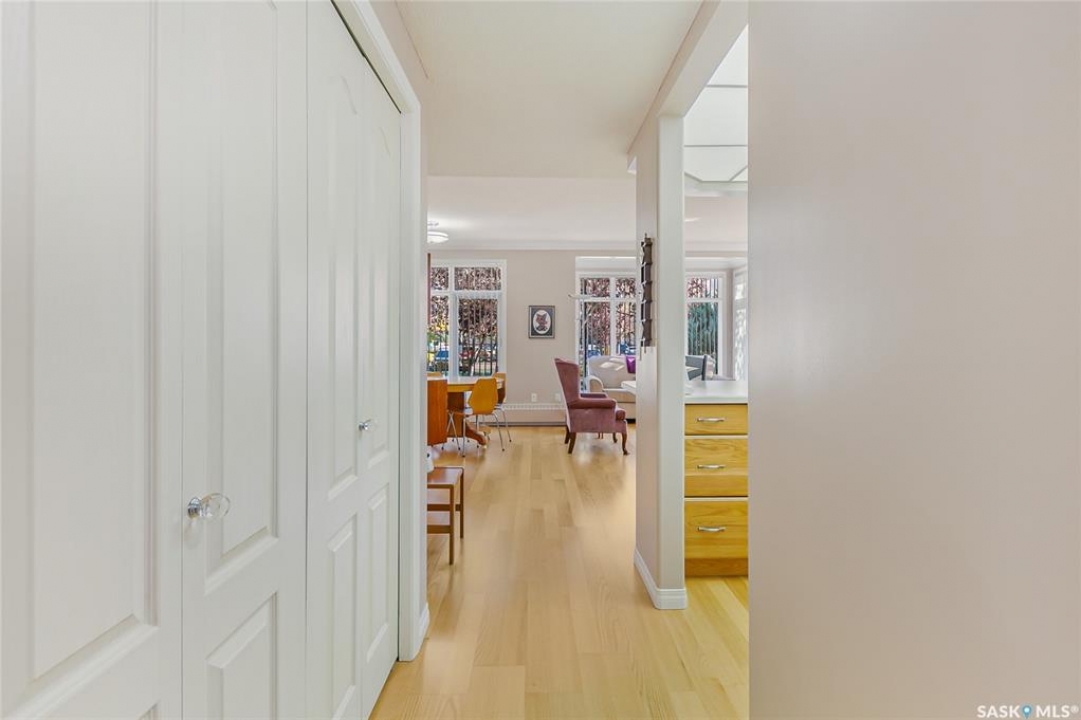 Your Best Move: Exceptional Value in College Court! Welcome to this perfectly-priced, 2-bedroom, 1-bathroom main-floor unit offering exceptional value in Regina's College Court building. Located in the popular Transition Area, this property is the perfect find for any buyer. Enjoy serene views of the courtyard from your bright, well-maintained space. Access is convenient, with entry available via the main building door or a nearby rear door. Your comfort and security are a priority here. The unit comes with a desirable underground, heated parking space; a true favour on cold Prairie days. This unit also features a private storage locker located in the heated parking area, only a couple of stalls away from your private stall and the access door into the building, which is thoughtfully and meticulously well-maintained. And don't miss the amenities room! Come and hang out for a coffee with new friends, play a game of pool or shuffleboard, or have a quick workout at your convenience - this area features a kitchen and a bathroom, making planned gatherings a breeze. Live in a desirable neighbourhood with the ease of a low-maintenance, secure property like this one. Don't miss this opportunity to purchase a great condo at a great price! Call today!