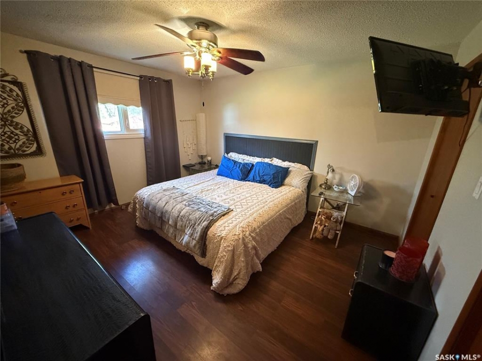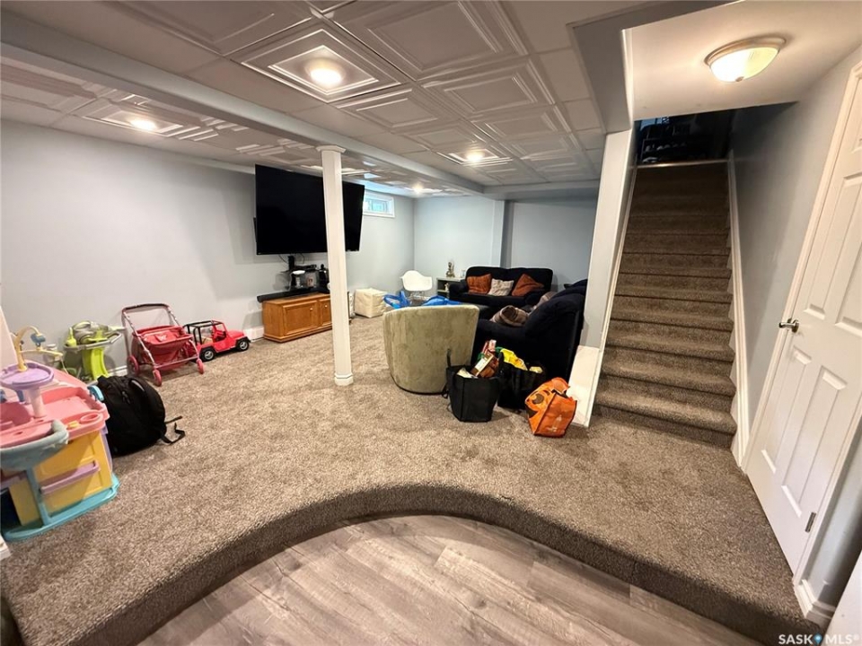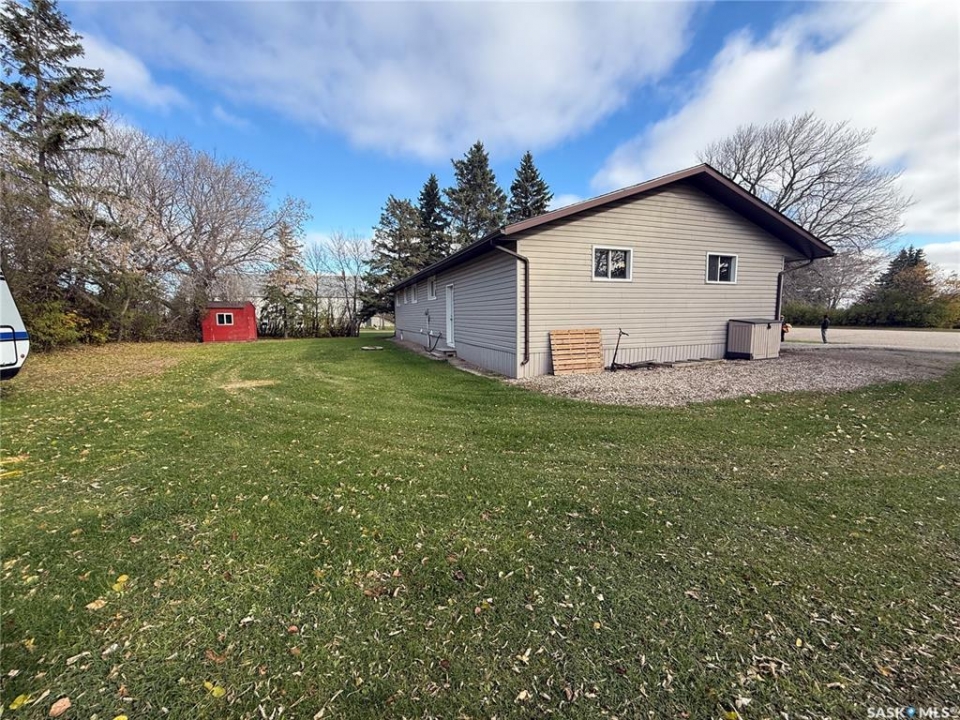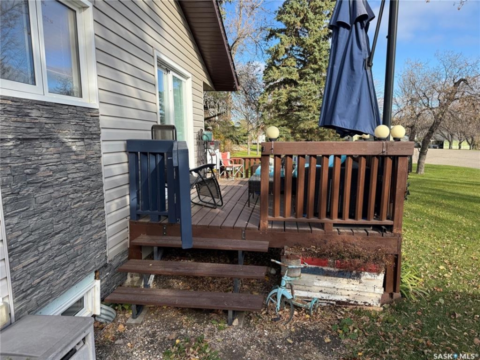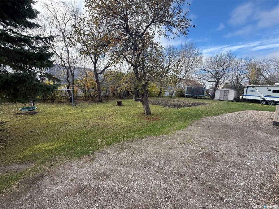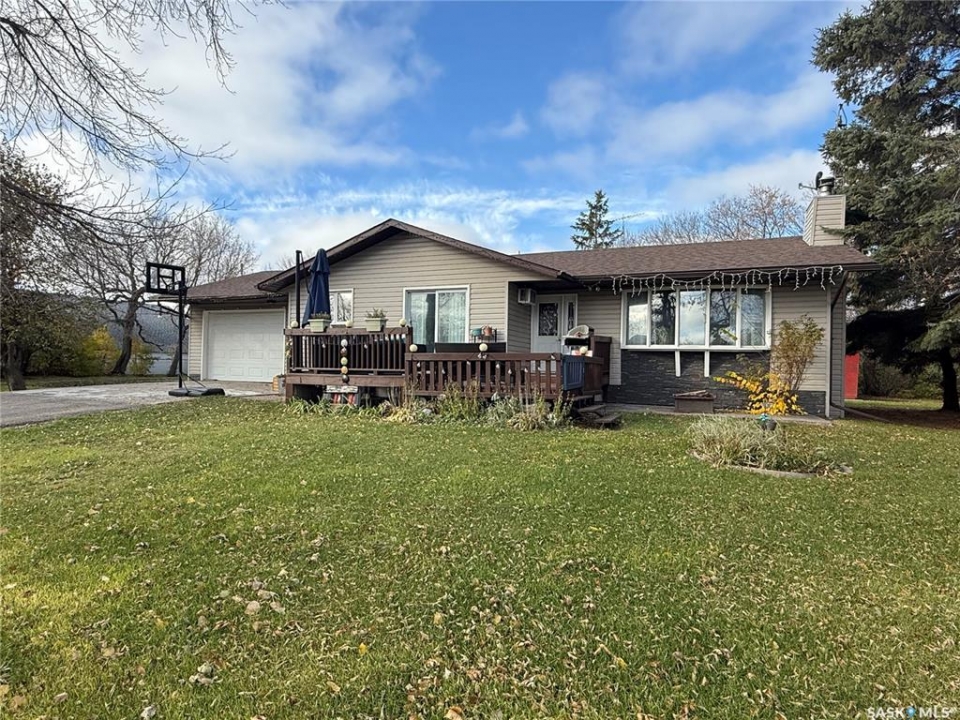 Welcome to the friendly community of Storthoaks! This property is sure to impress any buyer with its amazing yard, attached garage and modern layout. If offers a large kitchen with ample cupboard space that opens to the dining room. The dining room has patio doors to access the deck. The living room is spacious and has a bay window which is great for someone with plants. Down the hallway is the primary bedroom that accesses the main floor 4 piece bathroom. There are 2 additional bedrooms on the main floor as well as a den/office area. There is also a 2 piece bathroom/laundry room that is just off the foyer. The basement offers a raised family room and opens to the rec room. This area would be perfect for a pool table or games area. There are 2 large rooms in the basement, a 4 piece bathroom, office room and large storage room. The outside yard is very private with mature trees, garden area, rv parking and a shed. This home is on a corner lot and has been very well cared for. Updates include: New shingles in 2024 & 2025 completed.