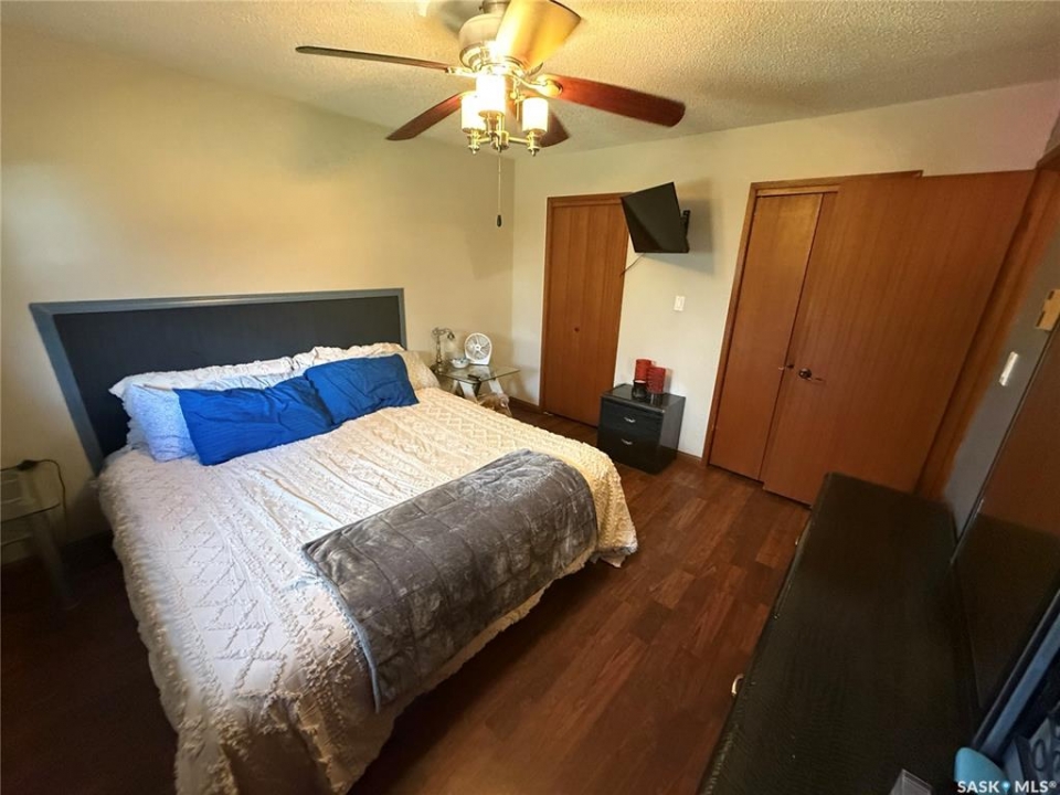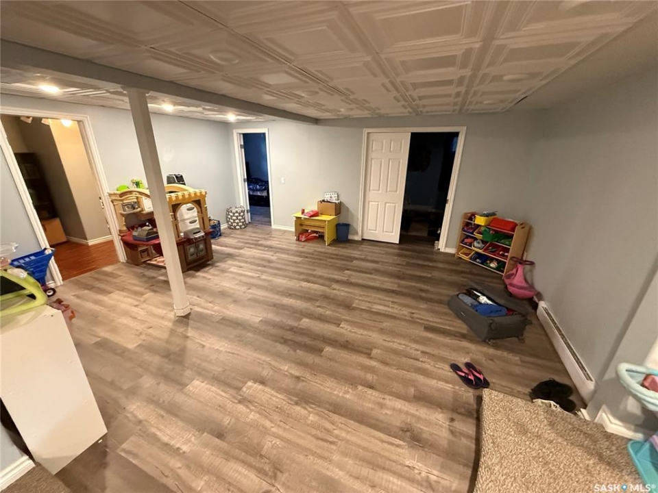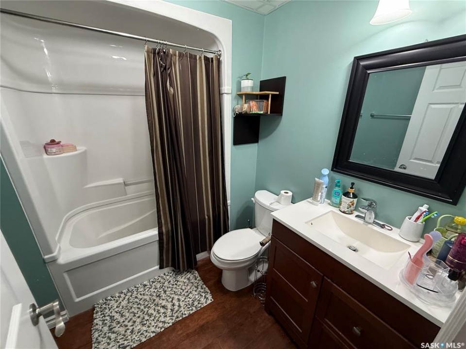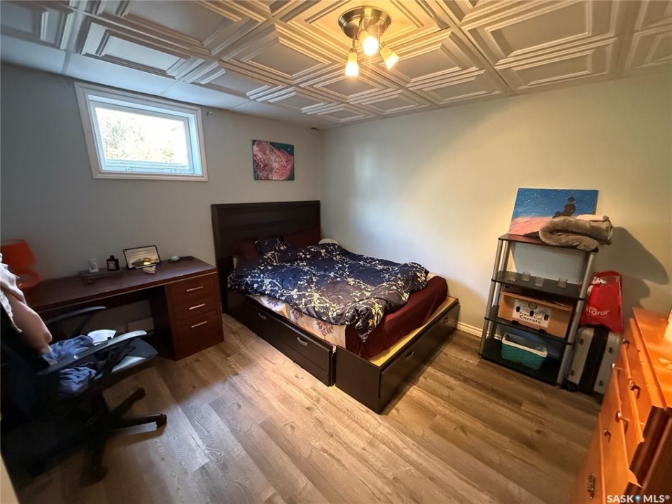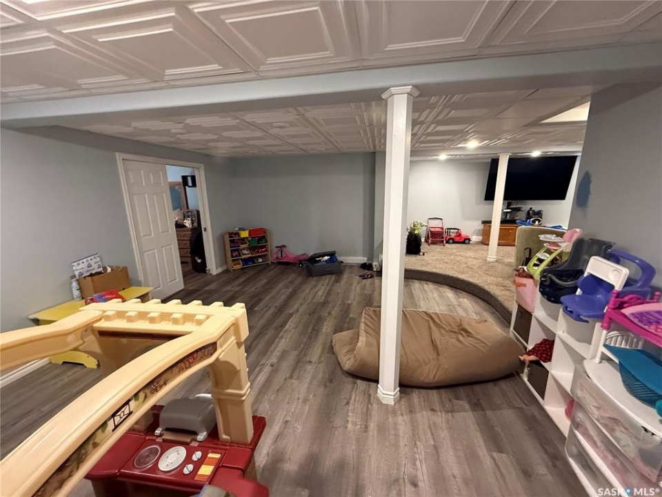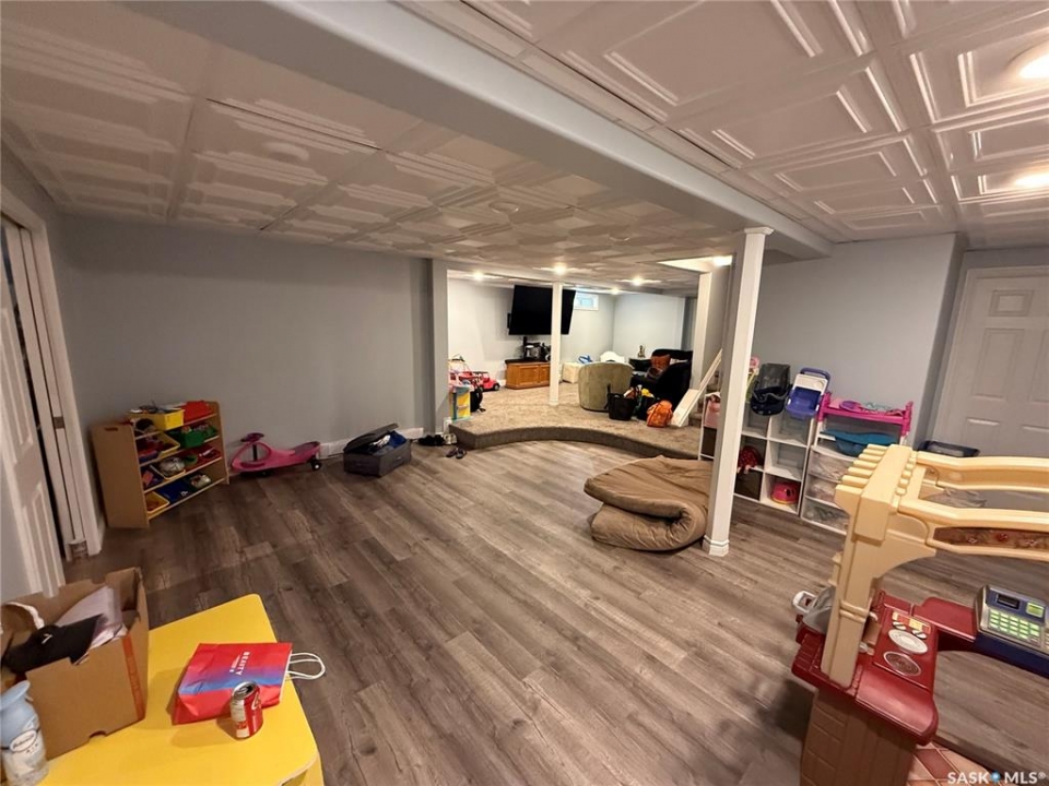Welcome to the friendly community of Storthoaks! This property is sure to impress any buyer with its amazing yard, attached garage and modern layout. If offers a large kitchen with ample cupboard space that opens to the dining room. The dining room has patio doors to access the deck. The living room is spacious and has a bay window which is great for someone with plants. Down the hallway is the primary bedroom that accesses the main floor 4 piece bathroom. There are 2 additional bedrooms on the main floor as well as a den/office area. There is also a 2 piece bathroom/laundry room that is just off the foyer. The basement offers a raised family room and opens to the rec room. This area would be perfect for a pool table or games area. There are 2 large rooms in the basement, a 4 piece bathroom, office room and large storage room. The outside yard is very private with mature trees, garden area, rv parking and a shed. This home is on a corner lot and has been very well cared for. Updates include: New shingles in 2024 & 2025 completed.