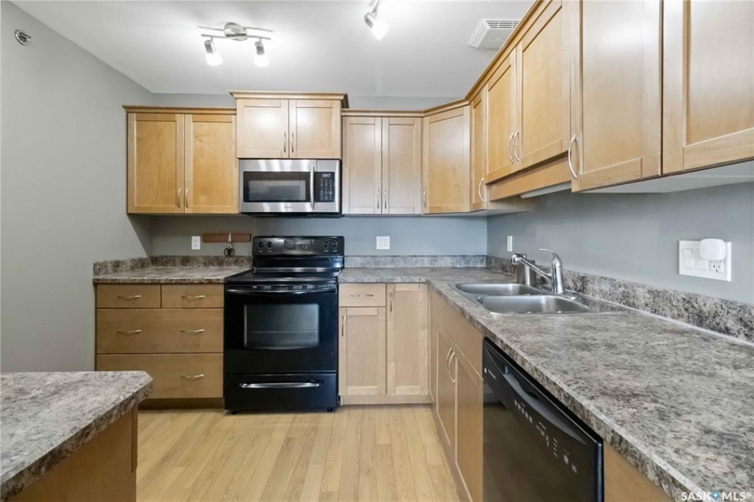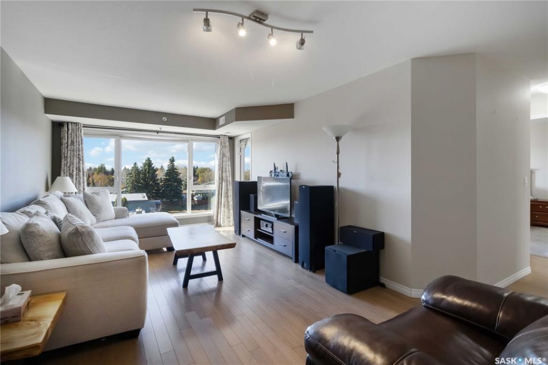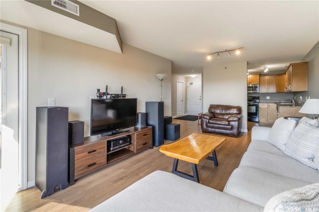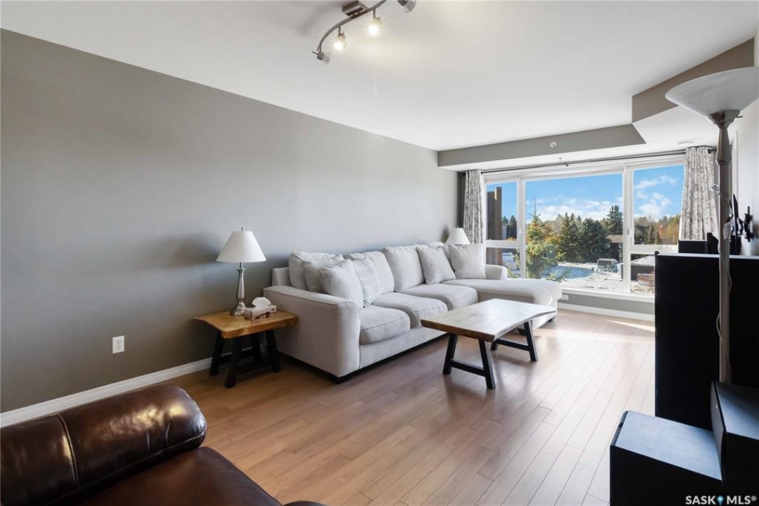 Welcome to this meticulously maintained 4th floor condo that truly has it all comfort, style, and convenience! Offering 944 sq. ft. of thoughtfully designed living space, this south facing unit offers an abundance of natural light and overlooks a peaceful tree line view that you will love waking up to. Inside, you'll find 2 spacious bedrooms and 2 full bathrooms, including a primary suite with its own private bath. The unit shows like new, all you need to do is move in and enjoy! Stay comfortable year round with central air conditioning and a forced air furnace. You will also enjoy the convenience of in suite laundry, underground parking, and a separate storage unit for extras. The building itself offers fantastic amenities, a meeting room for gatherings, a guest suite for visitors, and of course, a prime location close to shopping, restaurants, parks, golf course and more. Step out onto your sunny south facing balcony, sip your morning coffee, and soak up the view this is condo living at its best. Don't miss out on this great home book a showing today!