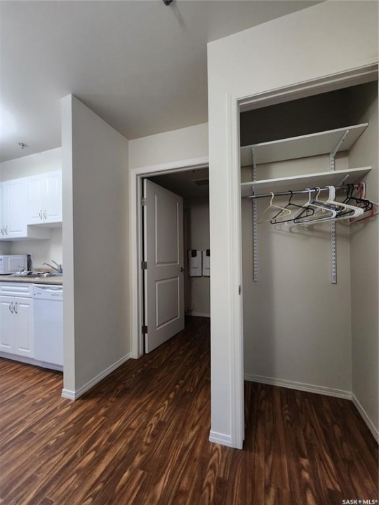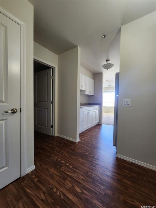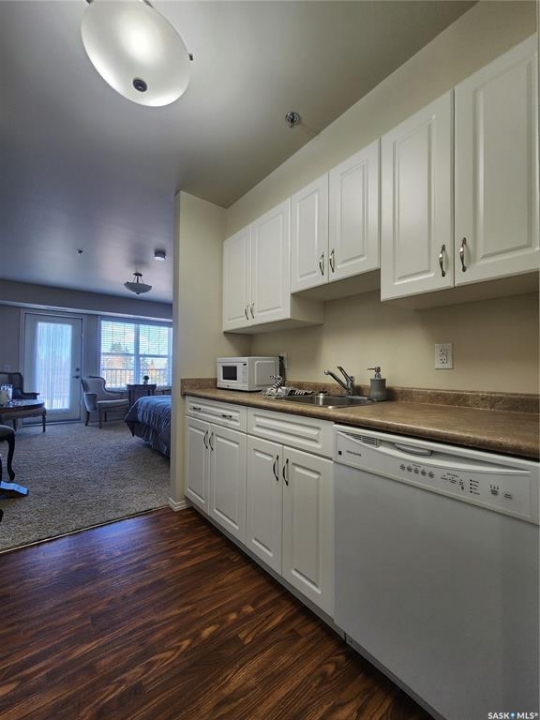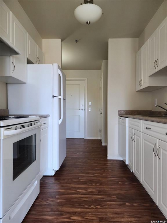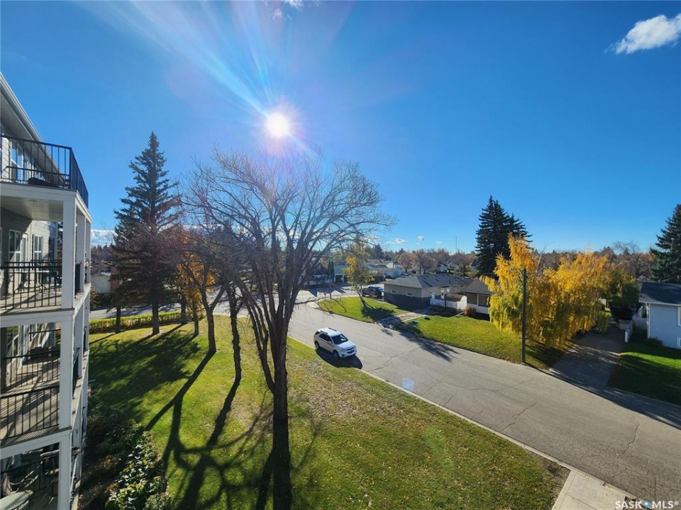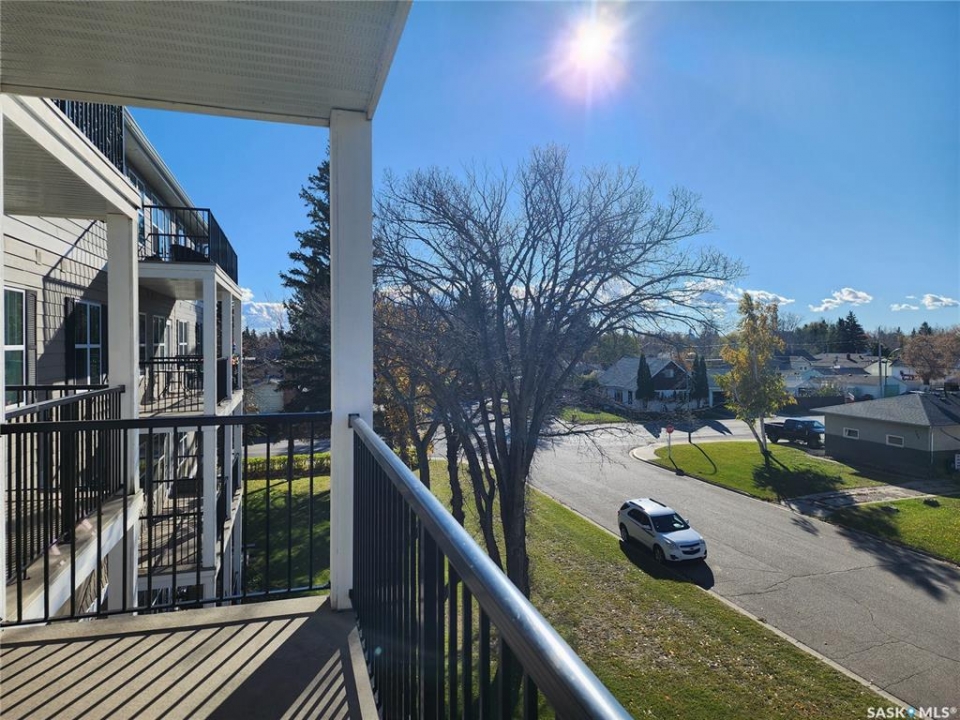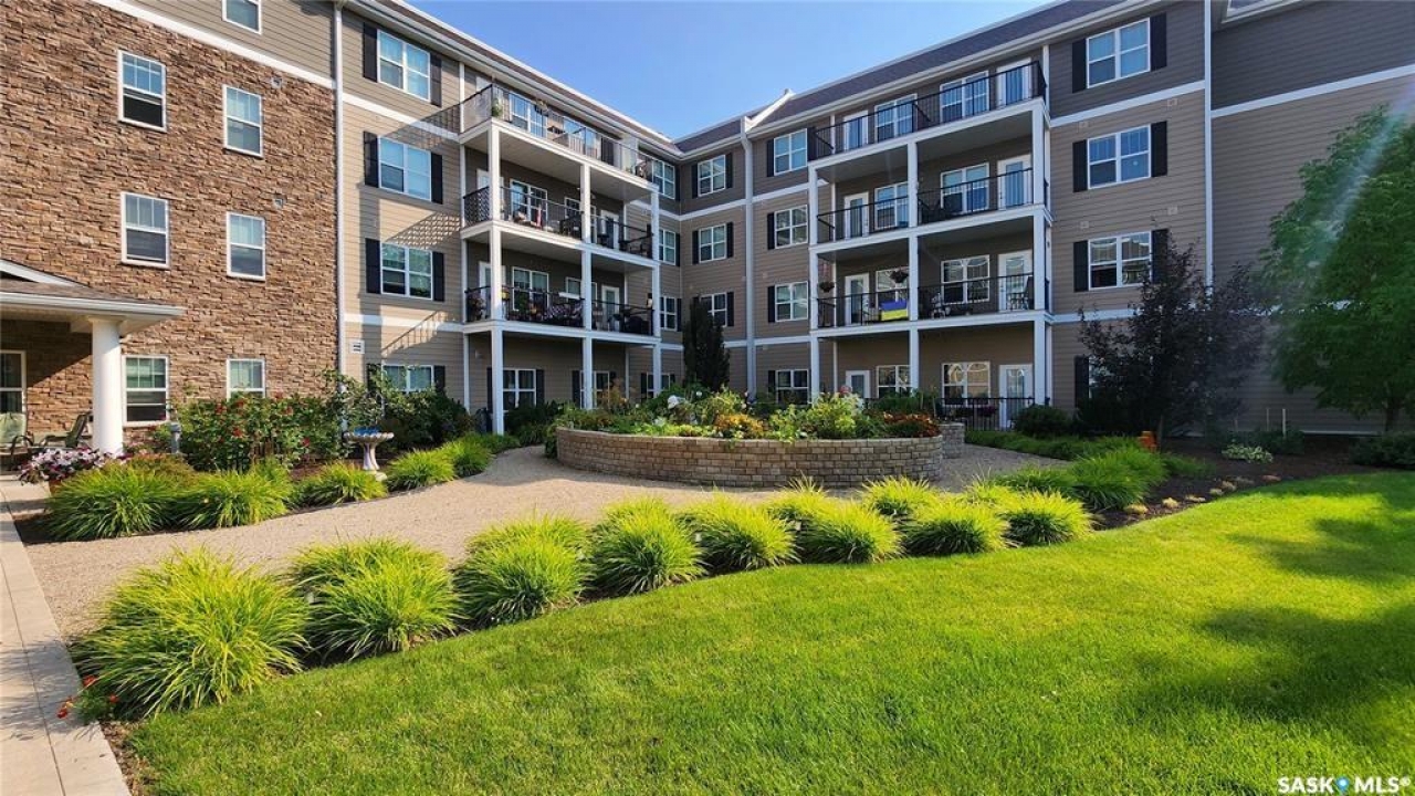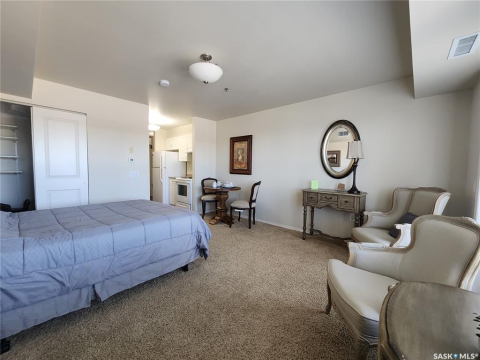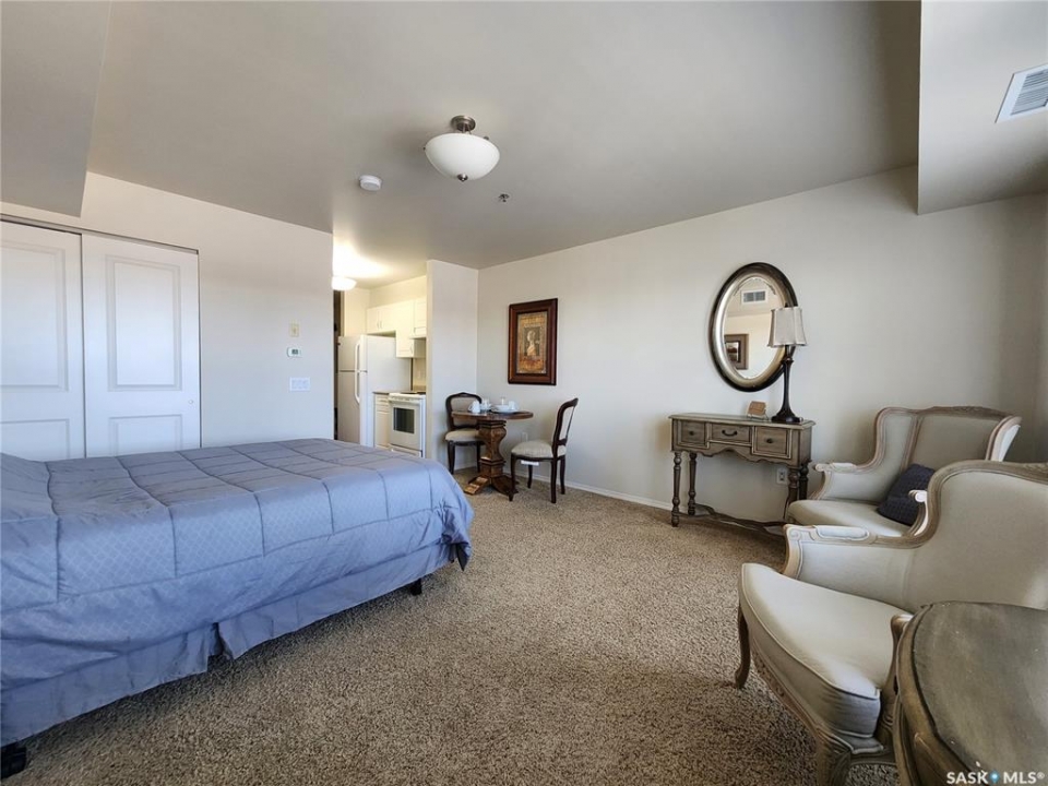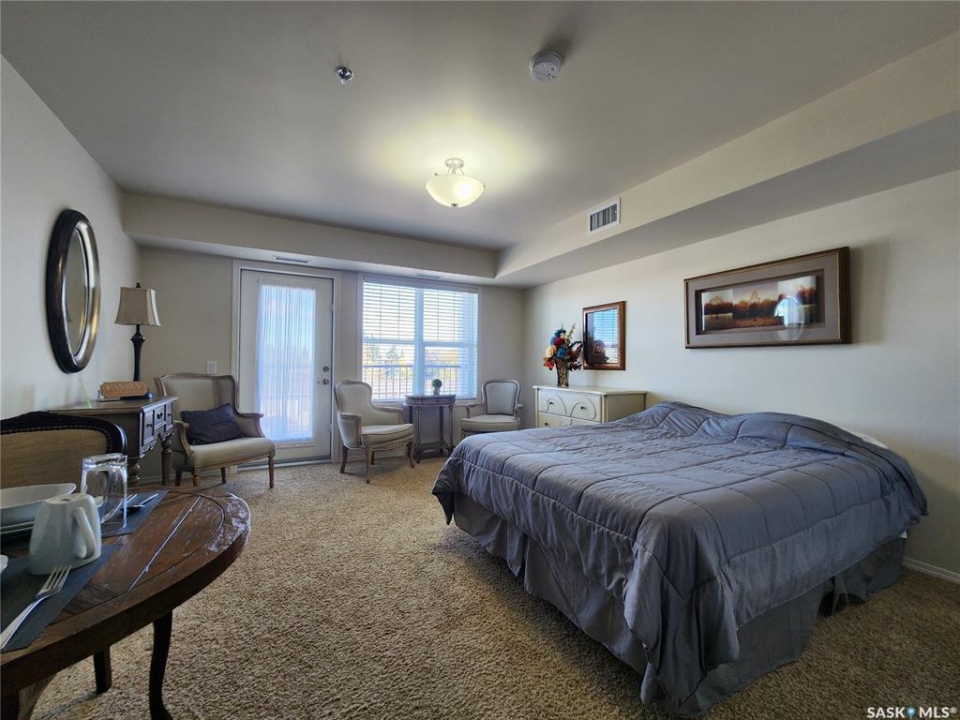 Welcome to easy and carefree living at the lovely Cumberland Villas in Melville. This inviting studio suite on the 3rd floor offers comfort, convenience, and smart design — all at an affordable price. Step into a spacious foyer with ample storage, leading to a well-appointed galley kitchen that opens into a bright and versatile living area — your cozy space for both relaxing and sleeping. The suite includes 4 appliances, generous counter and cabinet space, a large 4-piece bathroom, and in-suite laundry neatly tucked away in the bedroom closet. Step out onto your private west-facing balcony, perfect for relaxing or enjoying the fresh air, and take in the beautifully maintained courtyard. This suite includes a dedicated parking stall and access to a wide range of amenities, such as a dining and bistro area, workshop, library, elevator, lounge, and recreation center — all designed to enhance your lifestyle. At Cumberland Villas, you'll discover a welcoming community and the perfect place to call home. (The staged pictures are not the actual suite)
