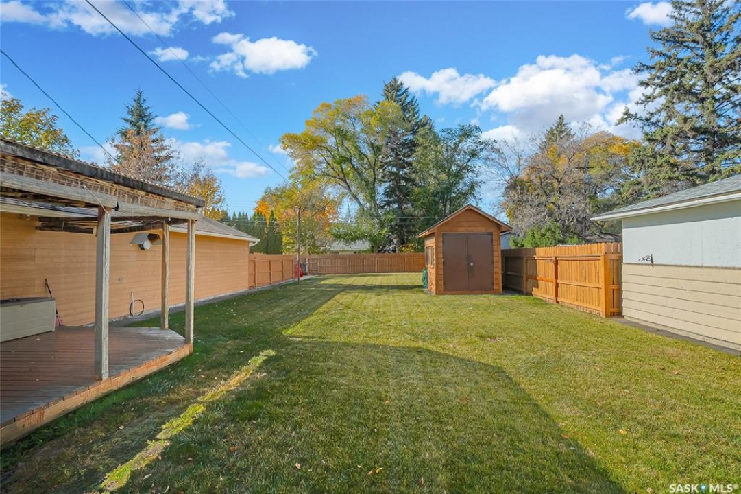 Make yourself at home at 1810 Sommerfeld Avenue, a truly exceptional property nestled in the heart of Saskatoon's highly sought-after Holliston neighborhood. Welcome to this charming 980 sq. ft. bungalow, a home that has been meticulously cared for and reflects years of pride of ownership. This fantastic family home offers a practical layout designed for modern living. The main floor features a bright living room and an inviting open dining and kitchen area, complemented by three bedrooms and a four-piece bathroom. Downstairs, the fully developed basement provides even more functional space, including a large family room, a fourth bedroom, a second four-piece bathroom, and a dedicated office space—ideal for remote work or a den. Outside, you will find an exceptional 14' x 52' oversized tandem detached garage that is a mechanic or hobbyist's dream, featuring convenient access from both the front and the back, along with a large separate shed for extra storage. Situated on a massive 56' x 156' lot, the outdoor space promises endless enjoyment and a peaceful, private retreat. Holliston is well-regarded for its established community feel, excellent schools, and unparalleled convenience to amenities, including Market Mall, local parks, and easy access to major traffic arteries, making this an ideal place to call home. Do not miss this rare opportunity to own a beautiful, well-maintained home in one of Saskatoon's most desirable neighbourhoods.