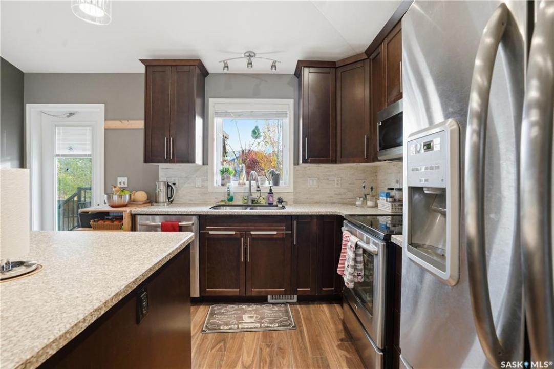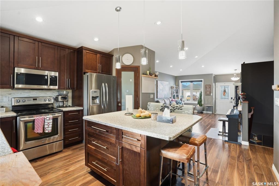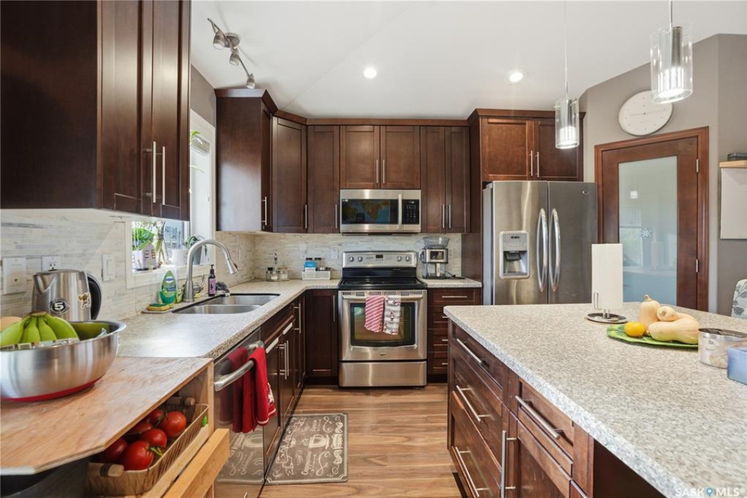 This great Stonebridge property is located on a quiet street, just blocks away from schools, parks and a vibrant commercial area that offers the amenities that you are looking for - shops, banks, restaurants and much more! A beautifully designed and fully developed bungalow offering bright light, vaulted ceilings, kitchen island with ample counter space, a corner pantry, and stainless-steel appliances as well as a garburator. From the kitchen area you can go out to the raised deck, down to the lower-level patio, and out to the lawn area in the back yard. Primary bedroom has an ensuite bath with a walk-in shower and a walk-in closet with built in shelving. Also, on the main floor there are two additional bedrooms and a 4-piece bath with a tub/shower combination. Located in the basement there is a fourth bedroom and an in-floor heated bathroom with a walk-in shower for all your guests to enjoy. In the basement area you will find an open concept exercise area/games room and a living area to watch television in. Basement features large windows. The attached 2 car garage is insulated and has a 11.5- foot ceiling and large overhead door. Added features are Central air, underground sprinklers, and natural gas BBQ hookup. Call your favorite realtor today and come out to view this great Stonebridge property!