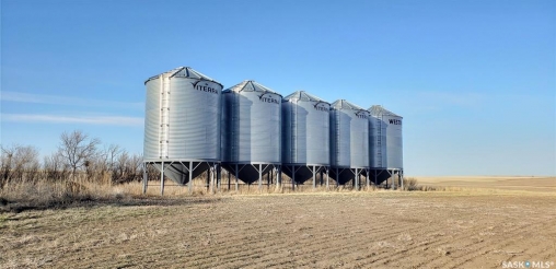 his six quarters (960 acres) of land is in a block and has been farmed very well with crop rotations and crop inputs. The crop rotations for the last four years were, 2025 Durum, 2024 Lentils, 2023 Durum and 2022 Canola. There is approximately 50 acres of newly seeded grass. Grain storage is approximately 25,000 bushels (5 hopper bottom bins with natural aeration tubes).