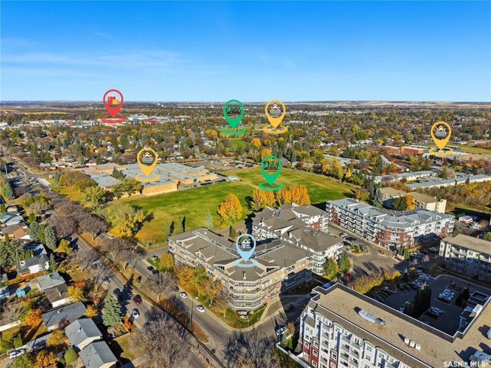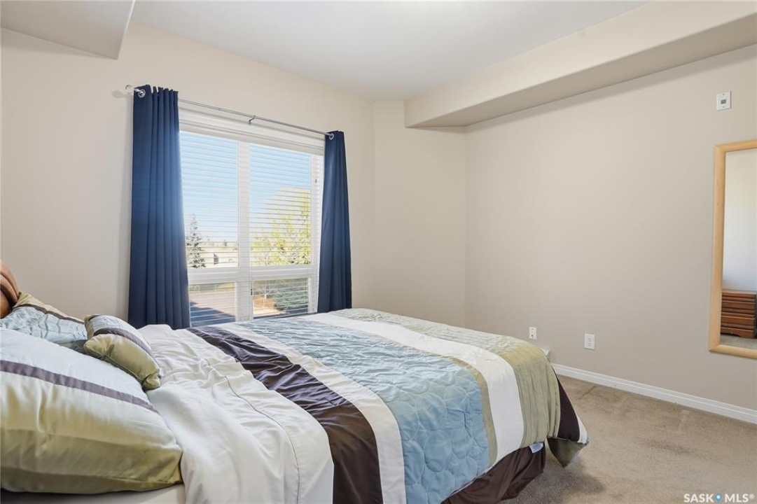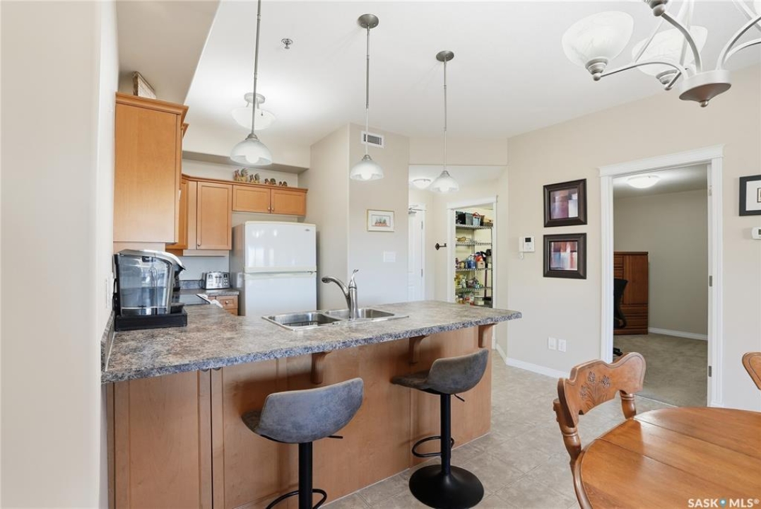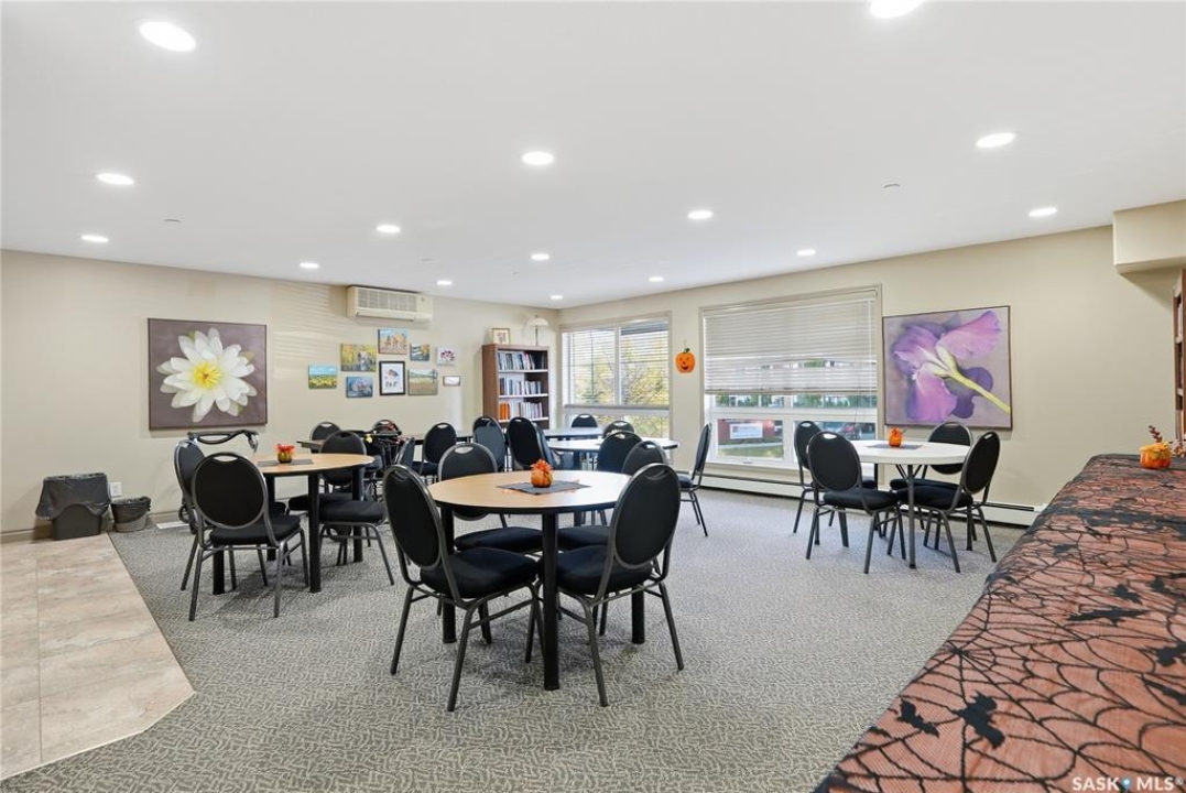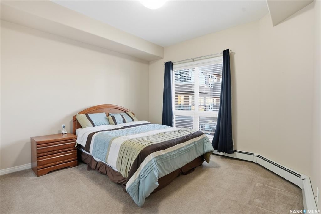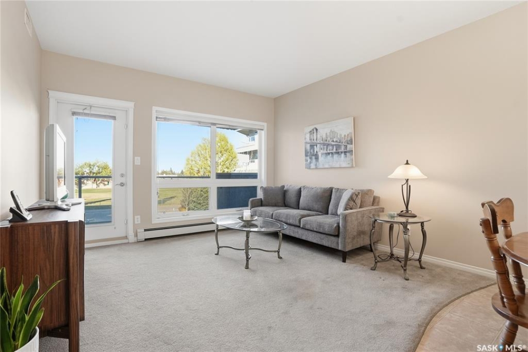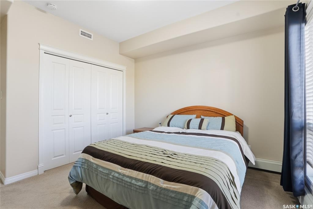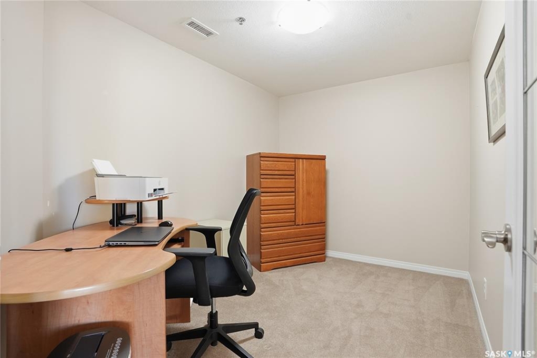 Excellent layout, location & pride of ownership with this 1 bed + den condo at Dover Heights with central A/C, in-suite laundry & storage, underground parking & close proximity to Market Mall & many amenities. This well-designed suite offers a bright & open feel with 9' ceilings, open-concept living room, dining space & kitchen with peninsula breakfast bar, natural wood-tone cabinetry with under-cabinet lighting. Efficient use of space with lots of room for entertaining guests & family. Generously-sized balcony facing trees & open park space, featuring a natural gas hookup for your BBQ. Spacious main bedroom along with a den that's amply sized for use as a home office or guest room. The underground parking stall features a generously-sized self-contained storage room for your convenience. Features of the condo commons include an amenities room, elevator service to all levels of the building, exercise area, visitor parking, & wheelchair-accessible entrances. Well-managed condo association & reserve fund with pride in the building amongst its residents. Heat, water, snow removal & exterior building maintenance included in the condo fees of approximately $394/month. An excellent & affordable condo perfect for those looking to downsize!