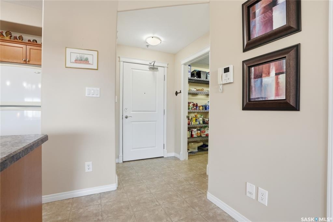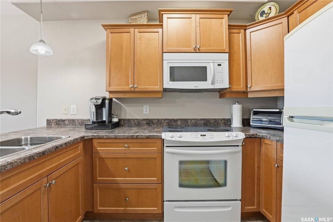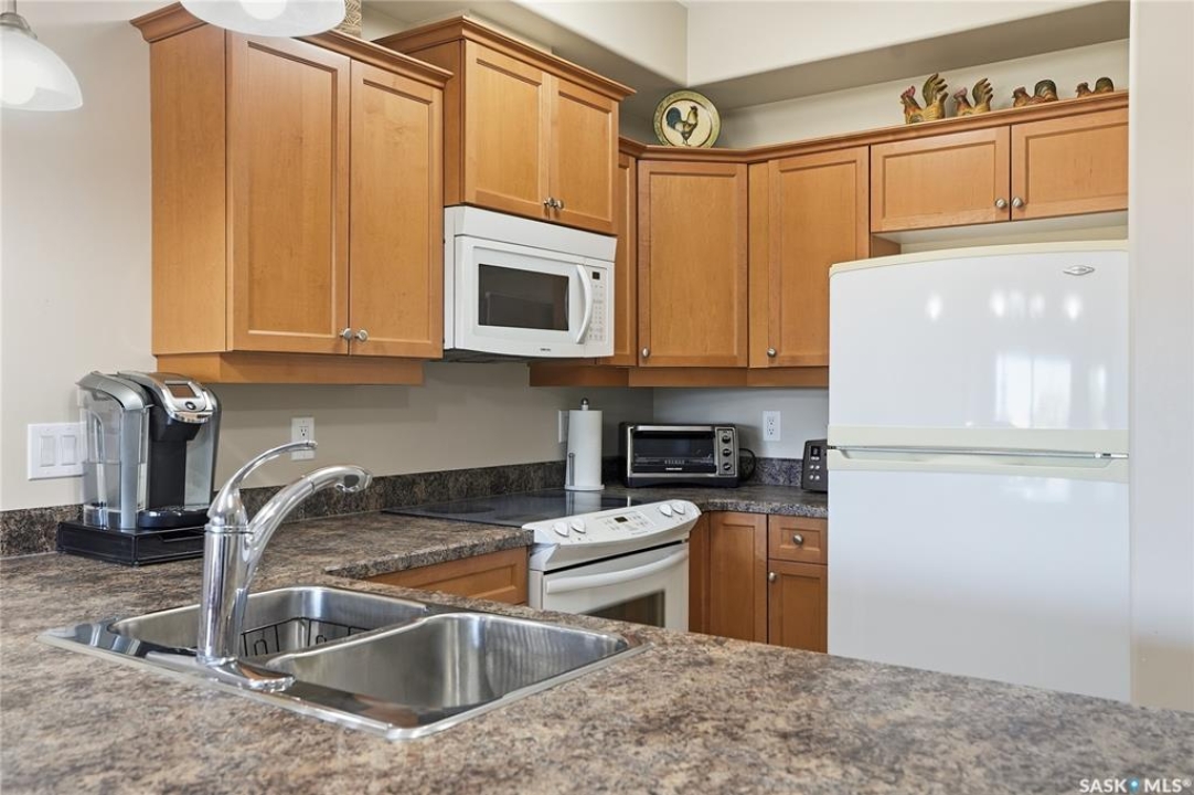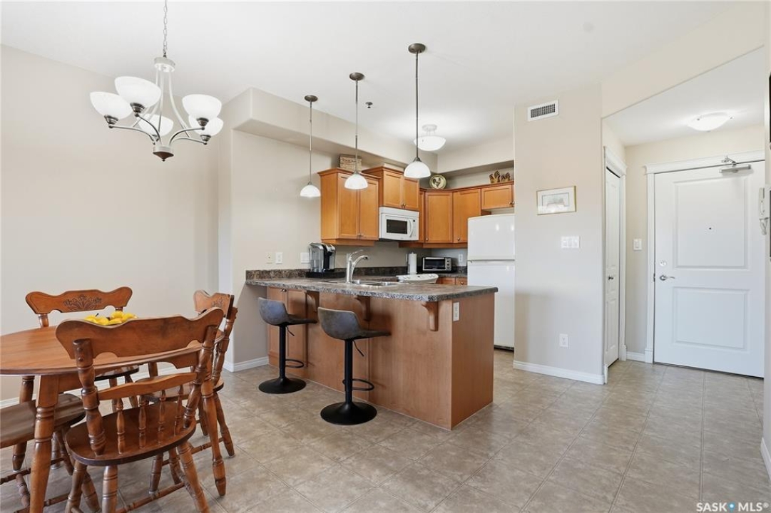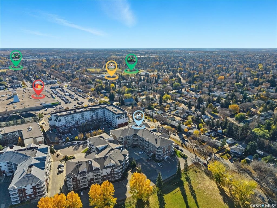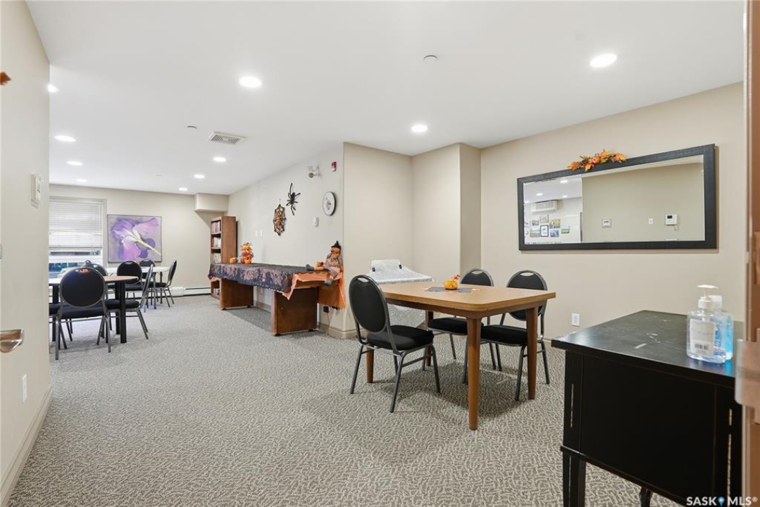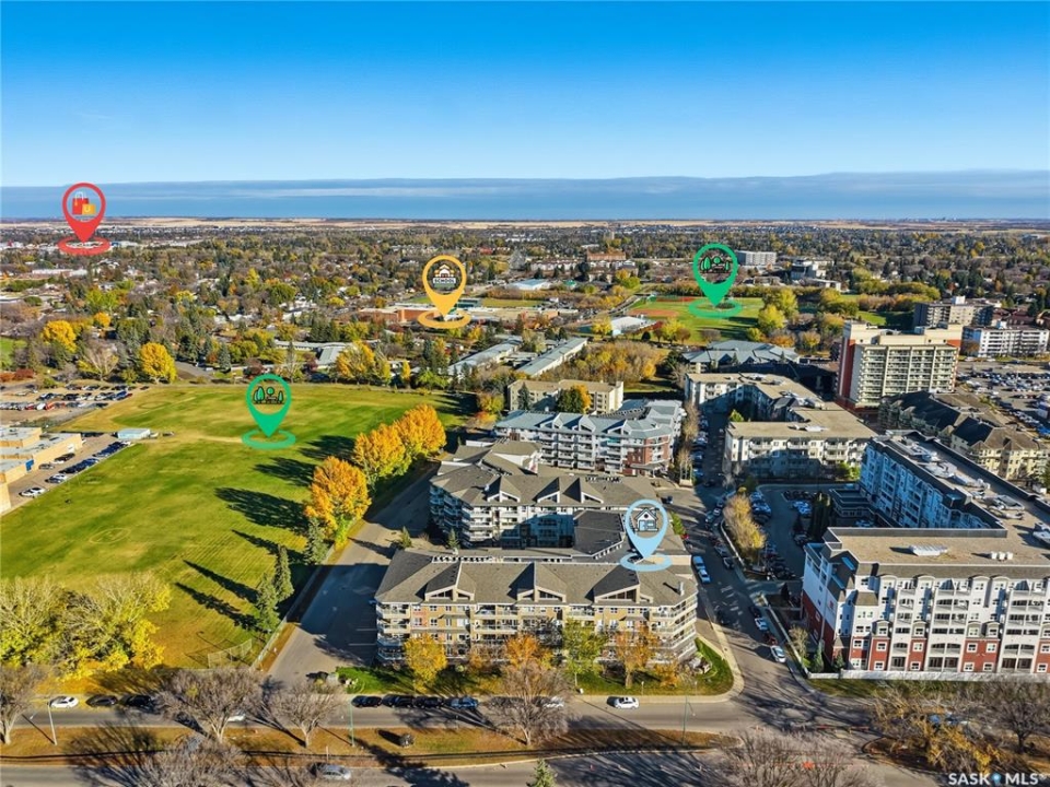 Excellent layout, location & pride of ownership with this 1 bed + den condo at Dover Heights with central A/C, in-suite laundry & storage, underground parking & close proximity to Market Mall & many amenities. This well-designed suite offers a bright & open feel with 9' ceilings, open-concept living room, dining space & kitchen with peninsula breakfast bar, natural wood-tone cabinetry with under-cabinet lighting. Efficient use of space with lots of room for entertaining guests & family. Generously-sized balcony facing trees & open park space, featuring a natural gas hookup for your BBQ. Spacious main bedroom along with a den that's amply sized for use as a home office or guest room. The underground parking stall features a generously-sized self-contained storage room for your convenience. Features of the condo commons include an amenities room, elevator service to all levels of the building, exercise area, visitor parking, & wheelchair-accessible entrances. Well-managed condo association & reserve fund with pride in the building amongst its residents. Heat, water, snow removal & exterior building maintenance included in the condo fees of approximately $394/month. An excellent & affordable condo perfect for those looking to downsize!