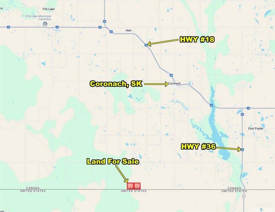 Incredible investment opportunity for two quarters of grain producing farmland located near Coronach, SK in RM of Hart Butte #11. 4% annual cap rate available on a 3 year lease term. Great opportunity for investors to achieve a cap rate that is currently hard to find in Saskatchewan farmland investments. This parcel would also be a great opportunity for farmers looking to add onto their existing operation. The land is rated "J" by SCIC and features 309 cultivated acres (as per SAMA field sheets). There is good access to the land from the North.