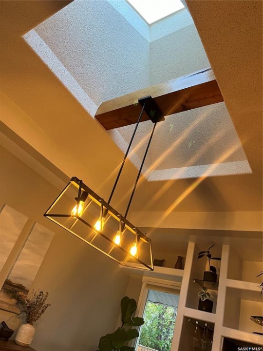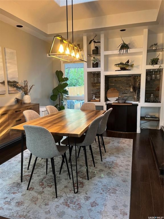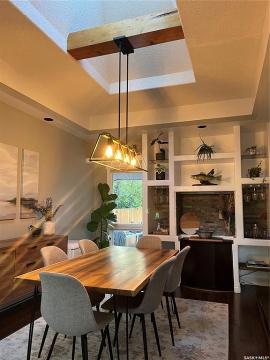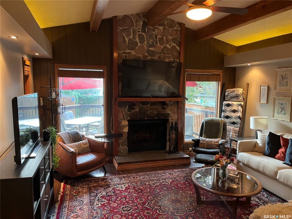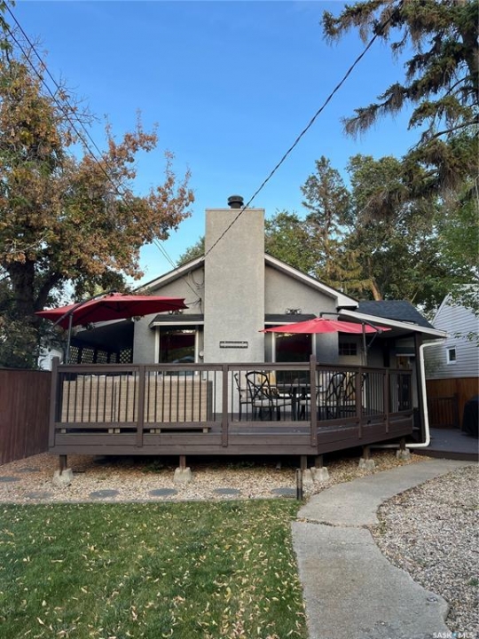 Absolutely beautiful one of a kind, spacious two bedroom one bathroom bungalow with true character. The original home had two additions in 1979 and 1981 with a beautiful dining room feature a beautiful sky light and feature shelving, as well as a spacious living room with cathedral ceilings and a wood fireplace in a fieldstone feature wall. This home features quality finishes. The backdoor opens out onto a spacious wraparound deck facing a beautifully landscaped and fenced backyard. Included in the sale is a patio table with chairs, a sectional, propane fire table, and two large umbrellas. The Smart Thermostat is included.There is a convenient lean too shed attached to the north side of the home. There are two parking spaces off a paved back lane. Plenty of space for a future double garage. We have the building plans from the City of Regina for both the dining room addition and the living room addition, that indicate that their foundations are built on piles, with crawl space. We also have an Engineer's Certificate. Showings are easy to book on Broker Bay.
