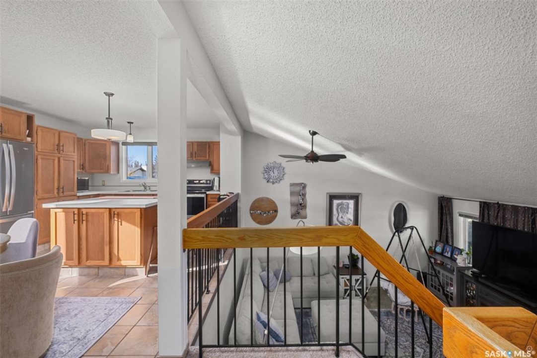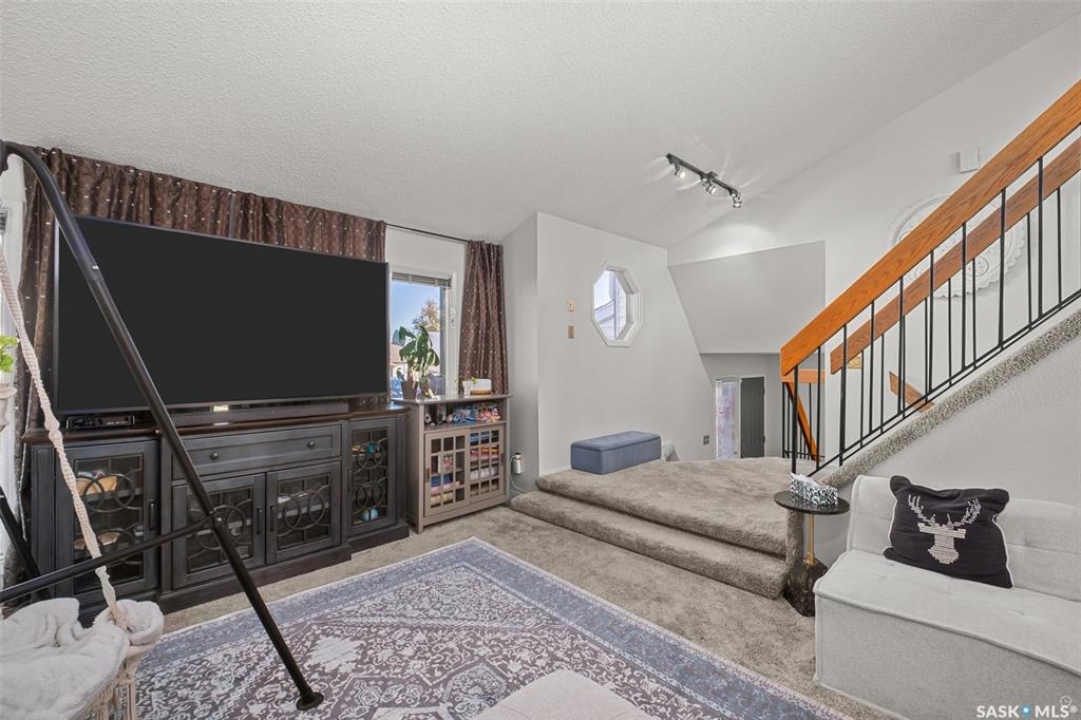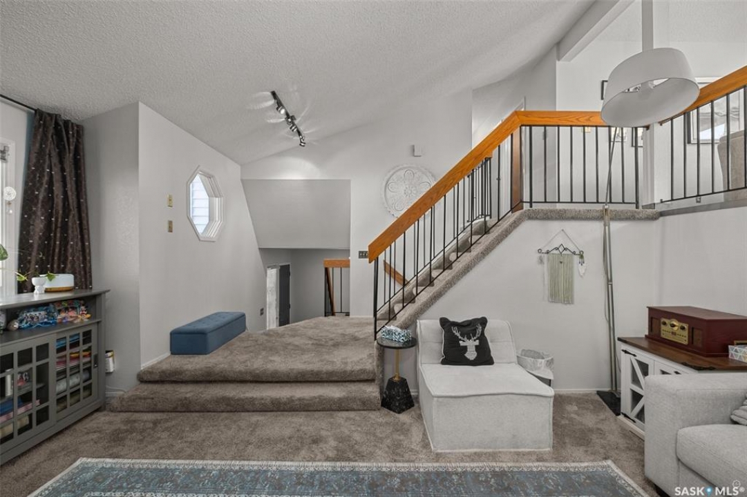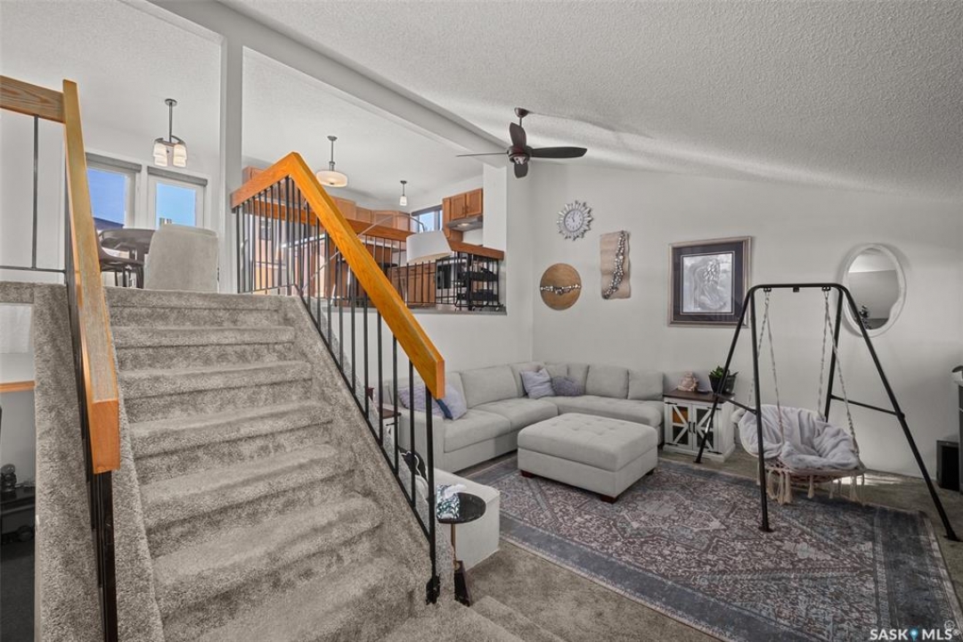 Located in the sought-after Crescent Acres neighbourhood, this unique split-level home offers space, comfort, and convenience — just steps away from schools, playgrounds, the rink, and the new Yard development. The main floor features a welcoming entryway with plenty of room and direct access to the attached triple garage. This level also includes two large bedrooms, a beautifully upgraded 3-piece bathroom, and a cozy family room with patio doors leading to a private deck and a spacious, private treed backyard — perfect for relaxing or entertaining. The second level showcases an oversized living room with vaulted ceilings, creating a bright and open atmosphere. On the upper level, the kitchen offers an abundance of oak cabinetry, a functional island open to the dining area that overlooks the living room. From here, step out the garden door to a balcony with views of the yard — the perfect spot for morning coffee. Three additional bedrooms, including a primary suite with its own 3-piece ensuite. Another full 3-piece bathroom serves the remaining bedrooms, completing the upper level. the basement has a large combined utility and laundry area with an abundance of storage in the crawl space. This one-of-a-kind layout provides flexibility for families of all sizes in a prime location. Call today for your viewing!