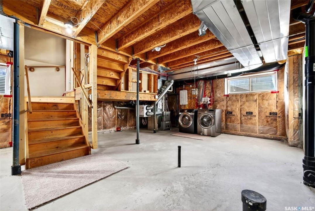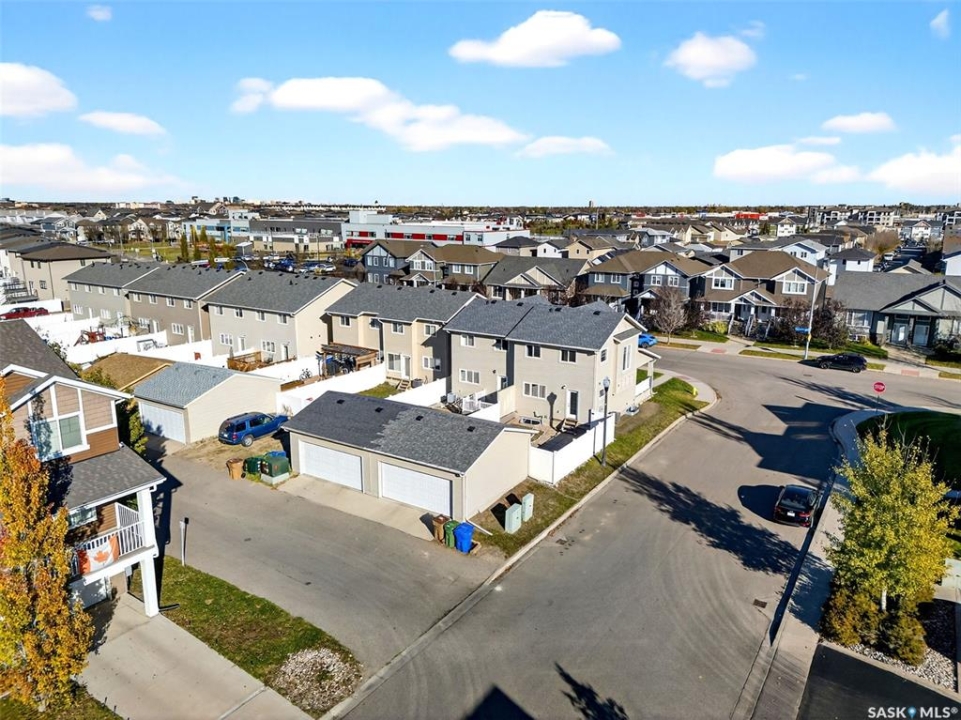 Welcome to this beautifully maintained 1,233 sqft two-storey home, perfectly positioned on a desirable corner lot in Regina's Harbour Landing, just one block from two primary schools. Flooded with natural light from large south, east, and west-facing windows(no north-facing windows in this house) this residence feels incredibly bright and welcoming. The open-concept main floor is illuminated throughout the day, showcasing a seamless flow between the living and dining areas and the modern kitchen. The kitchen is a highlight, complete with new 2025 cabinetry, durable countertops, stainless steel appliances, and is complemented by a convenient 2-piece bathroom. Upstairs, three comfortable bedrooms and a full bathroom create a peaceful retreat. Outside, the lovely backyard presents an ideal canvas for garden lovers and family gatherings. This home is not only charming but also efficient, equipped with a tankless water heater for endless hot water and lower utility costs. Significant updates ensure peace of mind and include 2025 interior paint, 2025 kitchen and bathroom cabinets, 2020 shingles with a 50-year GAF warranty, a 2021 air conditioner, a 2024 range hood, and recent furnace updates. The development-ready basement, featuring 3-piece rough-in plumbing and potential for a separate entrance, offers excellent income suite potential (subject to municipal approvals). With a spacious detached 2-car garage and a prime location near parks and amenities, this sun-filled home masterfully blends move-in-ready comfort with outstanding investment potential. Call your agent to schedule a private viewing today.