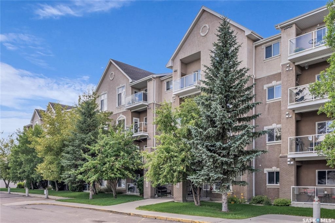 Welcome to unit #414 – 235 Herold Terrace, in the beautiful neighborhood of Lakewood! Conveniently close to many shopping centers, parks, walking trails, bus stops, dog park, and easy access to Circle Drive! Stepping inside your top floor unit, you are greeted with an abundance of natural light flowing throughout. The kitchen provides you with stainless steel appliances, including fridge, stove, dishwasher and hood fan, maple cabinets, pantry and island for additional counter and cabinet space. The living room features 10ft ceilings, a large window and access to your East facing balcony. Coming to the primary bedroom, offering a walk-in closet with custom organizers, and a 3-pc ensuite with sliding glass shower. One additional bedroom, a 4-pc bath, and in-suite laundry room complete this very well-kept home! Additional features include A/C, central vac, and two surface parking stalls! This stunning condo is a must-see in a highly sought after location!