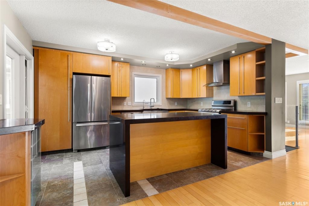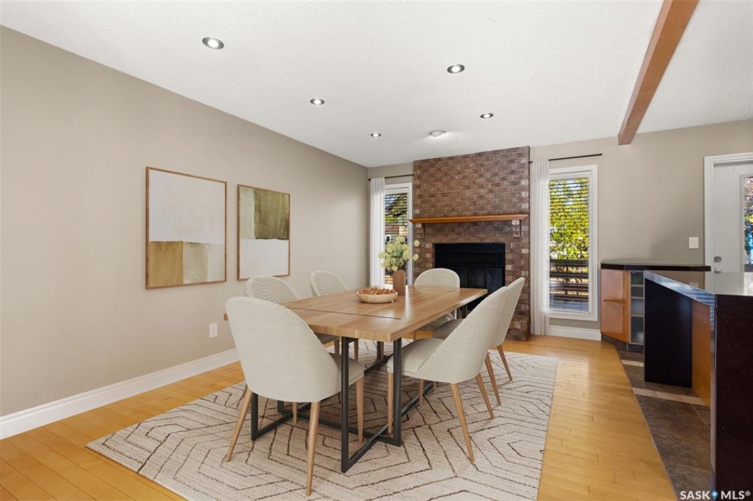 Welcome to 2206 Assiniboine Avenue E, a rare opportunity to own a stunning home in the heart of Richmond Place, one of Regina's most desirable family neighbourhoods. Just a short walk from Hawrylak Elementary School, this beautifully updated property perfectly blends modern design, comfort, and functionality. Step inside to find a bright, open layout that immediately feels like home. The spacious living area is highlighted by rich hardwood floors and large windows that flood the space with natural light. The adjoining dining room offers a cozy gathering spot for family dinners or evenings by the wood-burning fireplace. The kitchen has been thoughtfully reimagined with sleek maple cabinetry, quartz countertops, and a striking waterfall island—a perfect space for cooking or casual conversation. With four bedrooms and three bathrooms, there's room for everyone. The den/mudroom offers direct access to the attached garage, adding convenience to everyday life. Upstairs and down, you'll find thoughtful details that make this home stand out—from custom built-ins to unique design touches throughout. Outside, the spacious backyard and deck provide an inviting extension of the living space—ideal for morning coffee, kids' playtime, or weekend barbecues. Major updates include new shingles (2022) and a brand-new washer and dryer (2025), offering peace of mind for years to come. This home is move-in ready and truly one of a kind.