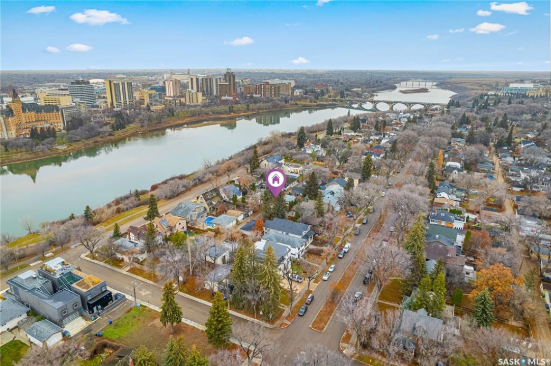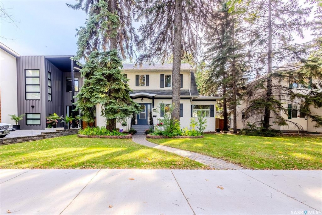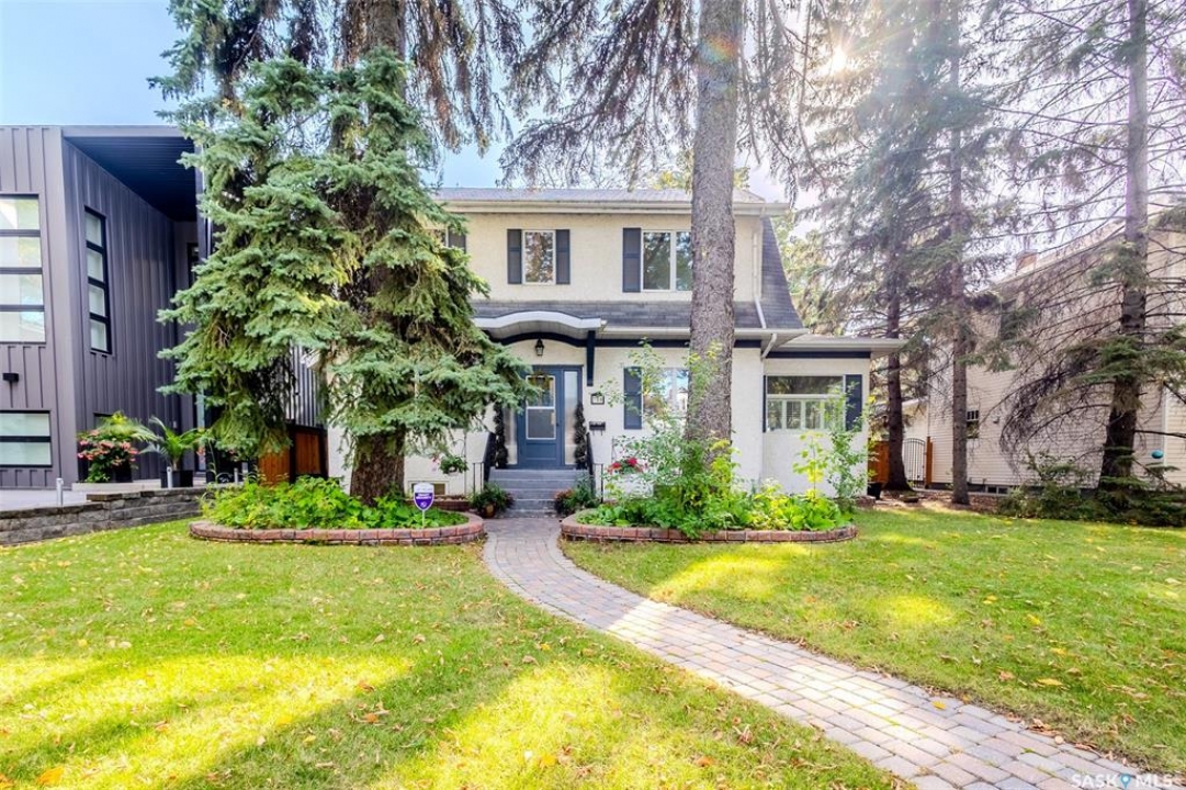 Welcome to 710 University Drive! Presenting a rare opportunity to secure your place on one of Saskatoon's most prestigious and historic streets. Whether you're envisioning your dream home on this coveted lot, seeking an investment to build two custom residences with R2 zoning, or drawn to the timeless character of a Dutch Colonial, this property offers endless potential. Set on an expansive 52 x 140 ft lot, this home is just steps from the river, minutes to Broadway's vibrant boutiques and cafes, and a short stroll to the University of Saskatchewan. University Drive is renowned for its mature tree-lined streets, heritage charm, and unbeatable walkability to river trails and downtown amenities. Built in 1926, the two-story residence blends historic character with thoughtful updates. Original hardwood floors and a gas fireplace anchor the inviting living room, while a sunroom with shuttered windows provides a bright, relaxing retreat. The formal dining room, complete with built-ins, connects to a kitchen that pairs vintage appeal with modern function, featuring a Miele gas cooktop and oven, smart fridge-freezer, farmhouse sink, and views of the private yard. Upstairs, you'll find a spacious primary suite with an updated en-suite, two generous secondary bedrooms, and a 4-piece bathroom. The fully developed lower level offers a rec room, guest bedroom, updated bath, and laundry with a smart washer and dryer. The backyard is an expansive private space with mature trees and a patio, ideal for entertaining, gardening, or future redevelopment. Recent updates include: high-efficiency furnace, on demand hot water heater, bathroom updates and kitchen appliances. This property presents a rare opportunity. Whether you restore its character charm, build your dream residence, or capitalize on R2 zoning for redevelopment, 710 University Drive is a great chance to create something remarkable in one of Saskatoon's most desired neighbourhoods. Call your Realtor today!