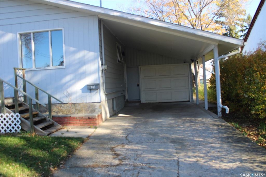 103 Wellington Avenue is a 884 square foot home , features 2 bedrooms on the main floor . The spacious kitchen provides ample cabinet and countertop space. The dining room flows off the kitchen and then continues into the large living room . A 4-piece main floor bath on the main floor ,has been updated . The basement has one bedroom , a rec room , utility room and a 2 piece bathroom .The home has a 100 Amp electrical service . There is a 12 x23 single attached garage ,with a attached carport .The massive lot measuring 50' X 124' with back alley access when required .Call for more information.