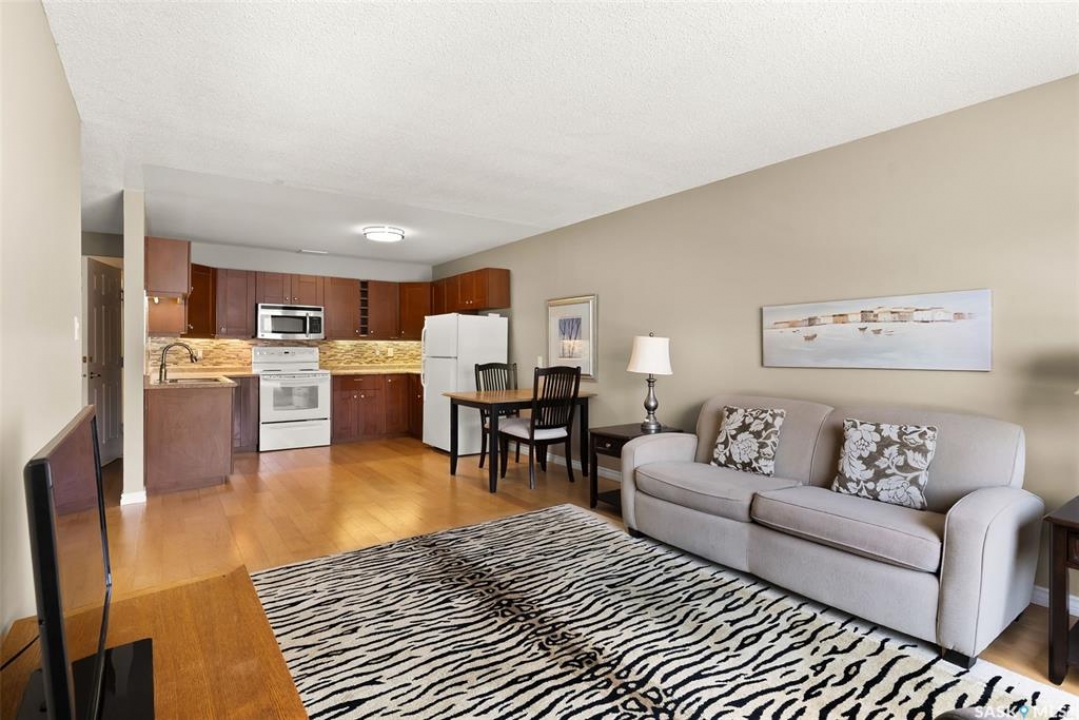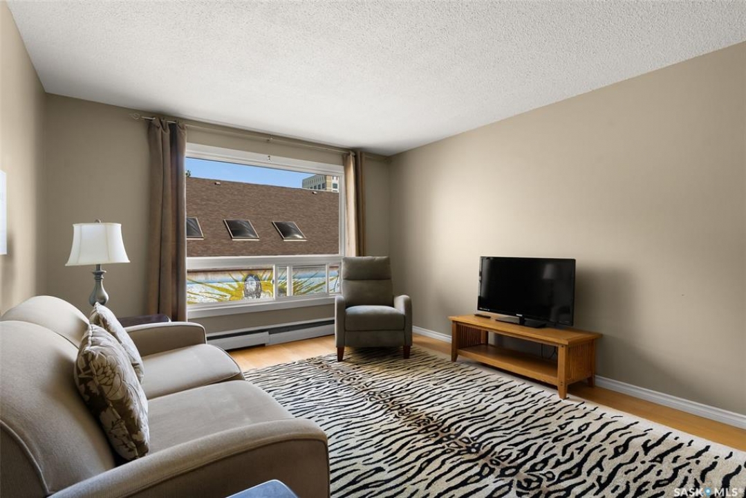 COMPLETELY UPDATED ONE BEDROOM, 2ND FLOOR CONDO IN THE HEART OF CATHEDRAL! Welcome to Park Lane, this nicely updated condo would be ideal for first time buyers or investors. Enter to the foyer that opens up into a bright open kitchen and dining area. The kitchen is updated with newer cappuccino cupboards, newer counters and a tile back splash. All of the windows have been updated and the main living area features engineered hardwood. The 4 pce bath has a brand new tub surround and newer toilet and vanity. The bedroom boasts a big window and lots of closet place. There is also a convenient storage room off the entrance that could be converted to a laundry room. The units condo fee's include heat, water, snow removal, common area and building maintenance as well as contributions to the reserve fund. The front entrance steps are undergoing repairs.The unit comes with one electrified surface parking spot, all furniture is negotiable. This property is walking distance to all that Cathedral has to offer as well as being right next to downtown and minutes to Wascana Park. Please contact you Realtor for more information or personal tour.