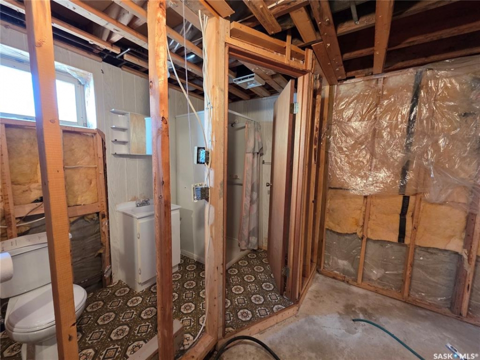 Experience the best of both worlds with this well-maintained 1979 bungalow offering a massive 30,000 Sq. Ft. Of space located in the quiet Village of Tramping Lake, Saskatchewan. This solid home sits on a large 75 ft. x 400 ft. lot with public water and sewer service, natural gas, and plenty of room to enjoy outdoor living. The property includes two storage sheds and a fantastic garden area. Offering 960 sq. ft. of living space, the home features three bedrooms and two bathrooms, with two bedrooms on the main floor and a third converted into main-floor laundry room. Unfinished basement level includes a three-piece bath, and framed out recreation room, and two additional bedrooms. A bright back porch addition with electric baseboard heating provides extra functional space. Updates and features not limited too: newer exterior doors, as well as a updared furnace and water heater, newer shingles, flooring throughout the main to be completed november 2025. Property provides large concrete patio and ample parking. Loads of potential for a garage or shop. This property is ideal for anyone seeking a comfortable, affordable home in a friendly community with the comfortability of acreage style living within a municipality.