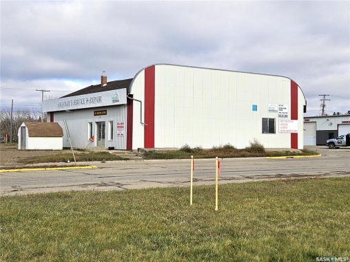 Prime Commercial Property with Highway Exposure – Kamsack, SK! An Excellent Investment Opportunity! This commercial property is ideally located at the high-traffic intersection of Highways 5 & 8, offering exceptional visibility! Situated on 6 spacious lots, the property features a 3,600 sq. ft. metal-clad shop with a large yard—perfectly suited for a variety of business operations. With ample space for parking, maneuvering large equipment, or accommodating trailers, this site is a rare find. The building includes: Two large bays with overhead doors (Door 1: 12.6' H x 13.0' W has manual open, Door 2: 11.5' H x 12.0' W has electric open), room for up to 5 vehicles, vehicle hoist and floor drains, ventilation and ceiling fans, three office spaces, front showroom, mezzanine level and 2-pc bathroom. Offering a flexible layout with a blend of storefront retail and warehouse space, this property is ideal for a wide range of business ventures—from auto service and equipment sales to retail and light industrial uses. Bring your vision to life and tailor this well-located property to meet your commercial needs. Whether you're an investor or an owner-operator, this is your chance to secure a high-exposure asset in a growing community.