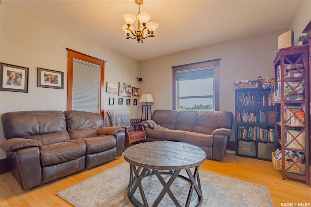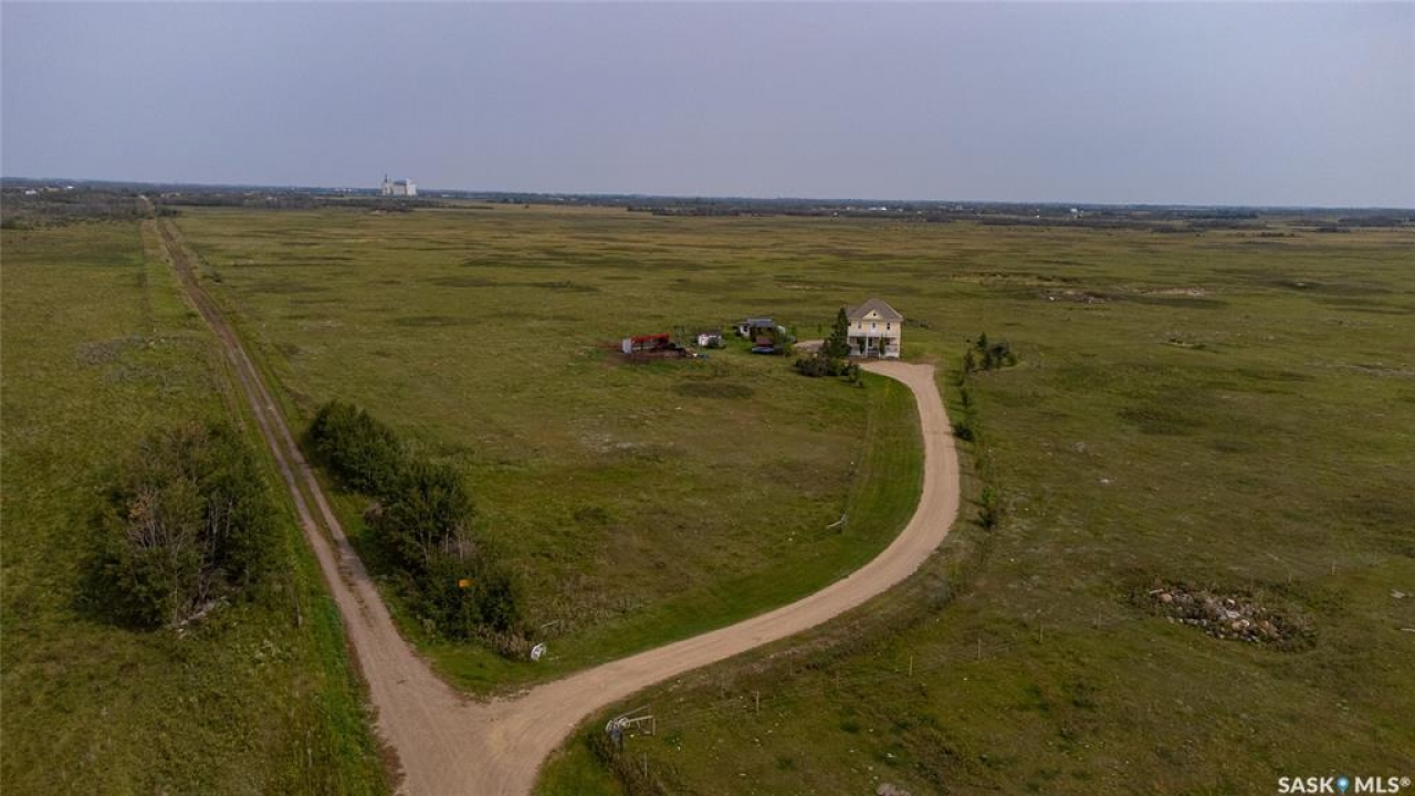 Prime Acreage & Long-Term Investment Opportunity! Located just 2 km NW of the new Martensville Rec Center, this 10-acre property offers the rare opportunity to enjoy acreage living today with strong, built-in future development potential. Surrounded by land already annexed into the City of Martensville and included in the Trilogy Ranch West Sector Development Plan, this is a strategic location positioned near a future commercial district and joint-use school. Whether you're looking for space, privacy, and a place to call home, or you're searching for a smart buy-and-hold, this property checks both boxes. Inside, the home offers 9' ceilings, hardwood floors, and a thoughtful layout. The kitchen is ideal for cooking and gathering, featuring a large eat-up island, butcher block peninsula, built-in oven and cooktop, stone backsplash, oversized fridge and stand-up freezer, plus a convenient back prep/storage area. The main floor also includes a spacious dining area, bright living room, home office/den, and main floor laundry with a half bath. Upstairs you'll find four bedrooms (one without closet) and an updated bathroom with tiled shower. A walkout balcony offers beautiful prairie sunset views, and the insulated attic provides future expansion potential. The home was moved onto a new basement in 2006 with egress windows, offering additional bedroom options if desired. The lower level features a rec room, bathroom, and ample storage. A 30'x30' triple attached garage (added 2009) is fully insulated with in-floor heat and a floor drain, ideal for extra equipment or a workshop. The acreage is fully fenced, connected to city water, and includes a chicken coop, corral, and shed. Recent upgrades include newer windows and shingles. This is a unique property where you can live the acreage lifestyle now, while also securing land in the direct path of Martensville's future growth. Opportunities like this are few and far between. Call your Realtor today!