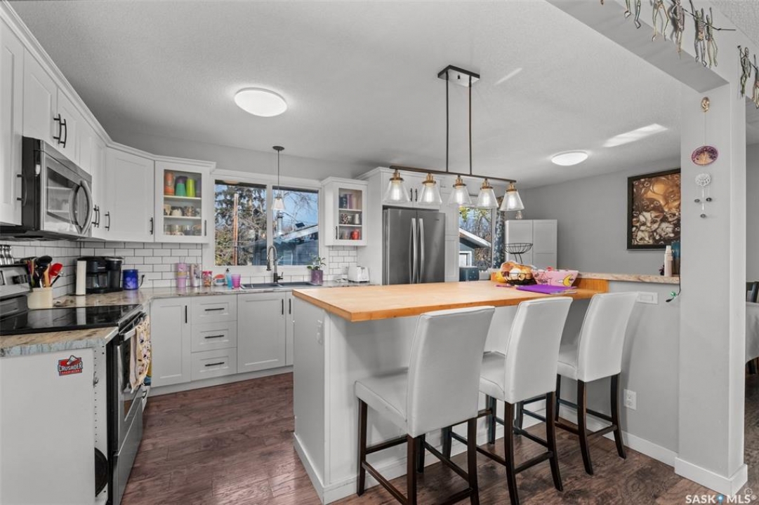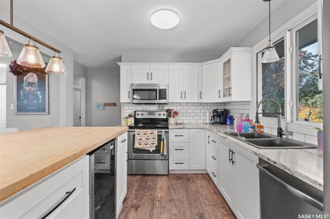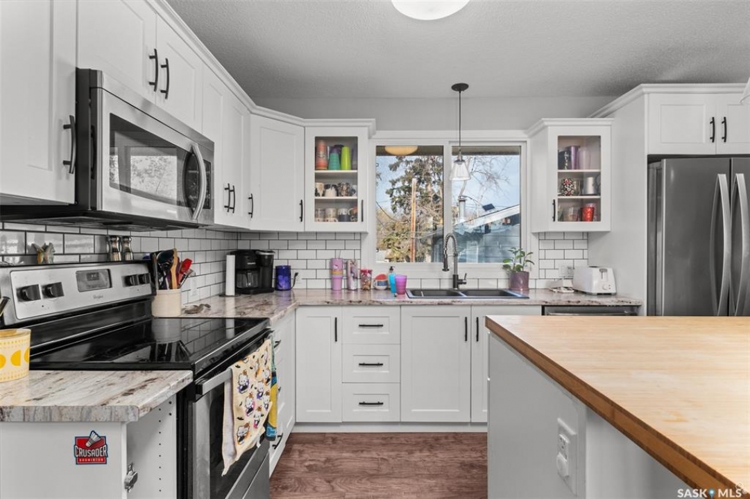 Nicely updated home in mature Crescent Heights neighbourhood. This open concept 1194 square foot bungalow is situated on a large 64.99' x 129.36' lot. The main floor offers a living room with electric fireplace, kitchen, dining area, 3 bedrooms, a full bathroom plus a half bath off the primary bedroom. The fully finished basement provides an enormous family room, 2 additional bedrooms, a 3 piece bathroom, laundry room, utility room and storage. New furnace in 2021. Central air conditioning. 20' x 24' detached garage.