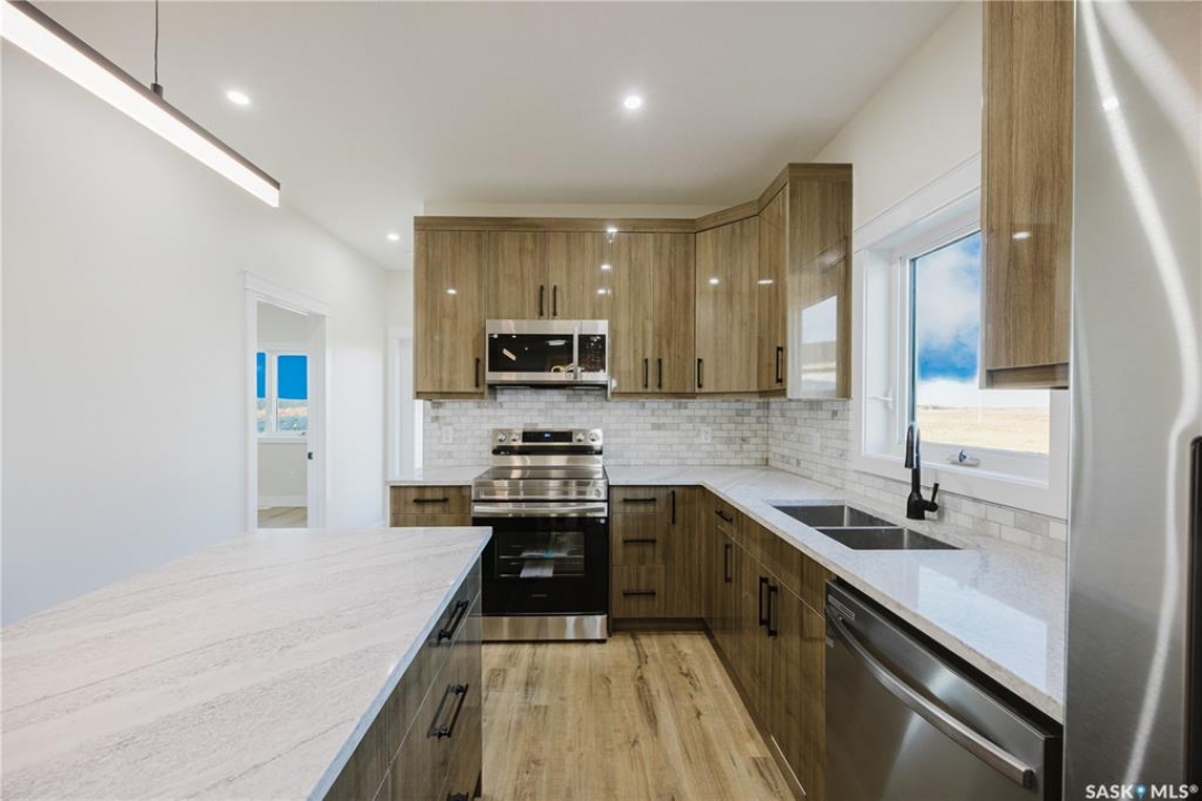 Welcome to 438 Stromberg Crescent in Kensington, perfectly situated in a desirable neighborhood across from green space and just steps away from malls, parks, and other amenities. This inviting property features an open-concept main floor, ideal for entertaining and everyday living. A cozy electric fireplace adds warmth and charm to the living space. The primary bedroom is a quiet retreat with large, east-facing windows that fill the room with natural morning light, a spacious ensuite bathroom, and a walk-in closet. An additional nook on the main floor offers flexible space for an office or extra storage. The back deck, overlooking the horizon, is perfect for afternoon relaxation or a BBQ. The upper level includes three generously sized bedrooms and two full bathrooms. The basement offers fantastic potential for a rental or extended family living, featuring three bedrooms, two living rooms, and two full bathrooms. A double-car garage provides ample parking. With abundant space and flexibility, this home is designed to meet various needs. Don't miss out on the chance to own this versatile property in a welcoming community! Please call for a private viewing. Realtors are welcome. N.B. Pictures are taken from similar property