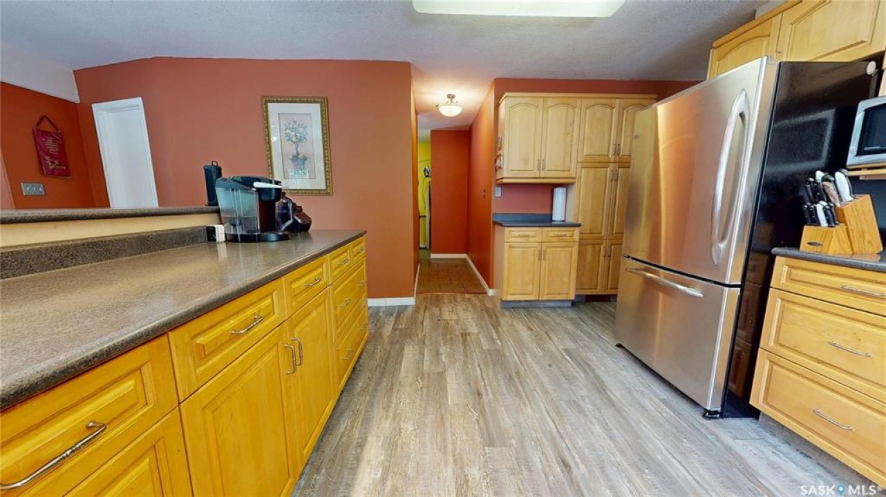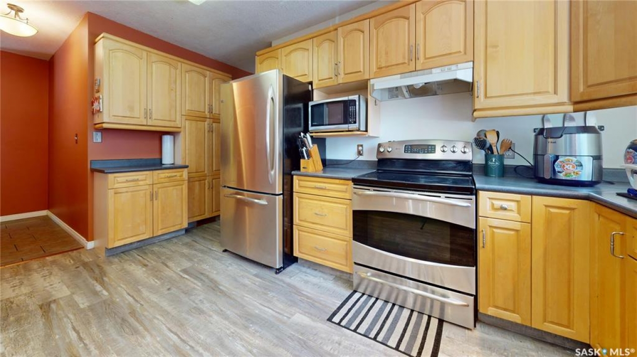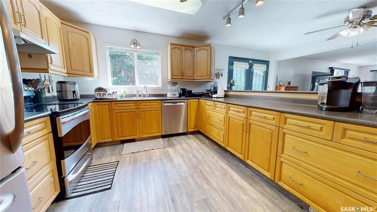 Welcome to 112 Herbert. Don't let the original build date fool you; this home had a full 1980 addition, including a basement, & has experienced many updates since. Nestled on a tree-lined street, walking distance from schools, recreation, groceries, & downtown. This 1 1/2 story features a spacious open-concept kitchen, dining, & living area with lots of natural light, ideal for entertaining & family gatherings. The kitchen boasts plenty of cabinets, a full line of appliances, eat-at counter top, dining area and access to the large side deck. Everything you need is on the main floor of this home with 3 bedrooms, 3 bathrooms, plus a convenient main floor laundry. The upstairs offers additional bedrooms/bonus options. This 2nd level is perfect for your family, guest space, office/craft area. The side door has access to the basement or main floor. The basement offers a rec room, storage, & two more bedrooms, one with a 2-piece ensuite, & another 3-piece bath. There is also bonus space for work out and/or media room or if you want a mortgage helper you could development a rental space in the basement. A side deck off the dining area is perfect for hosting summer barbecues or relaxing afternoons. The fully fenced, xeriscaped backyard offers privacy in a low-maintenance, eco-friendly oasis, with a large concrete patio & a storage shed. The concrete pad is ready for you to build a garage to complete this great property. Presently, Maple Creek has a rental shortage, so having the potential for an income-generating basement adds versatility and value to this already impressive property. Don't miss out on owning this spacious gem of a home. Don't forget to check out the video link to take a walk through the virtual tour and check out the floor plan or call today to arrange your personal viewing.