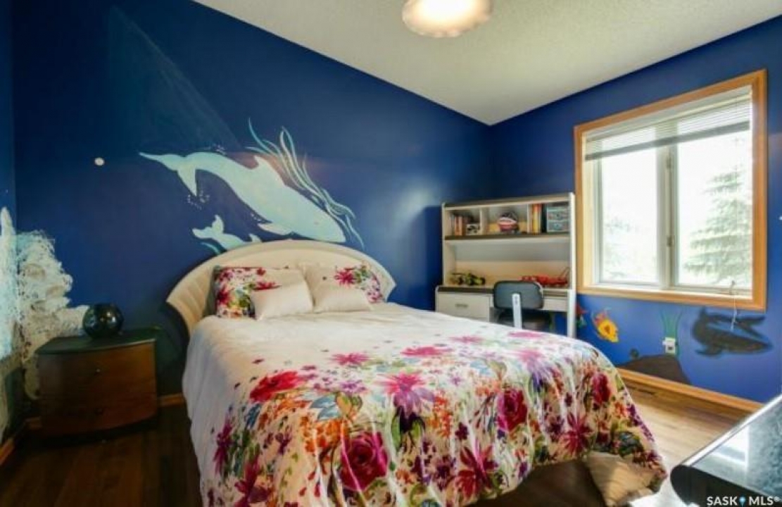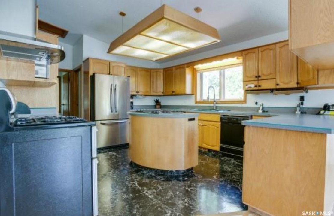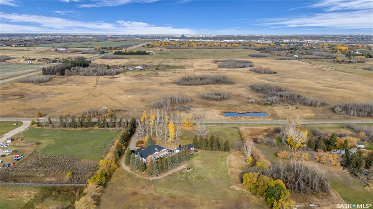 This remarkable estate combines luxurious residential living with expansive potential, offering a total of 9.06 acres. The property includes a 4.6-acre developed residential area with mature landscaping and a 3,447-square-foot walk-out bungalow (excluding the lower level) featuring five bedrooms and five bathrooms. With an open floor plan and formal spaces such as a 16' x 13.9' dining room, a 17' x 22' living room, and a gracious foyer, this home is designed for both comfort and elegance. Additional highlights include two wood-burning fireplaces, a spacious kitchen with an eating area, balconies, covered patio spaces, a double attached garage, a double detached garage, and a greenhouse. The remaining land is a natural lot, adding privacy and beautiful green space surrounding the residence. Additionally, this property offers potential for a zoning shift to commercial use, supported by nearby properties that have successfully made this transition. For those interested in expansion, an additional 5-acre parcel adjacent to the west side of the backyard is available for potential acquisition. This unique 9.06-acre estate, minutes from Saskatoon, offers an ideal blend of private, luxurious living with flexible zoning possibilities.