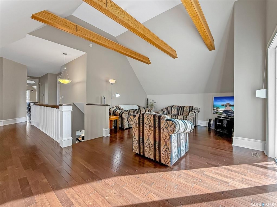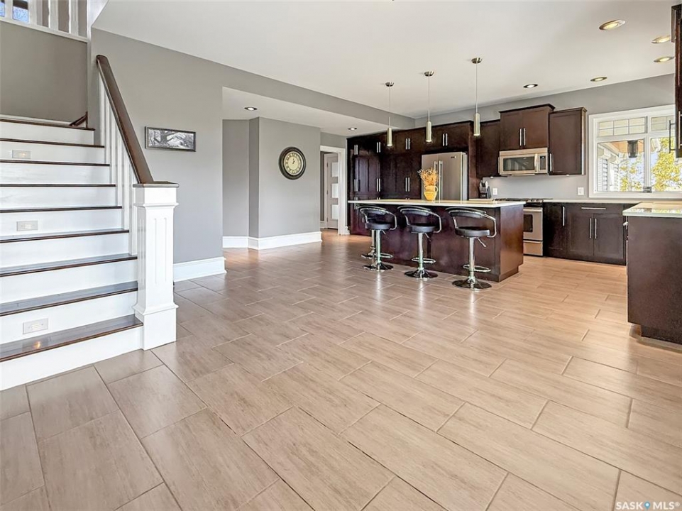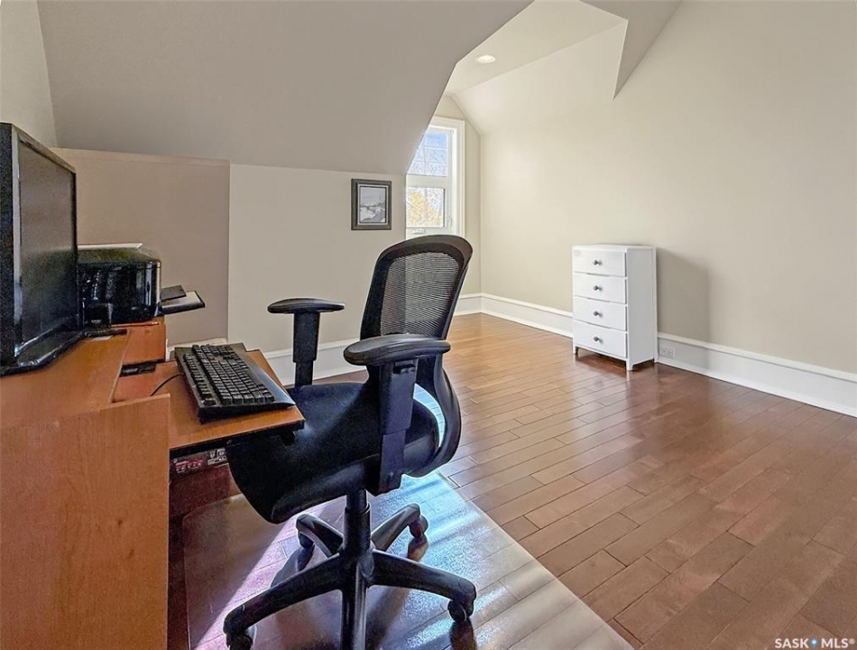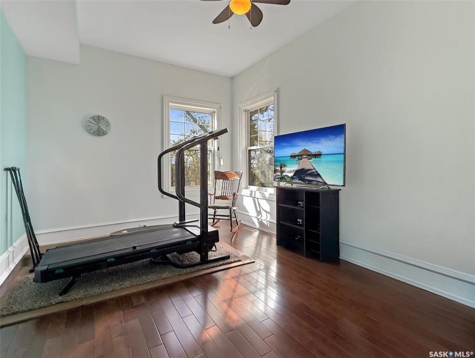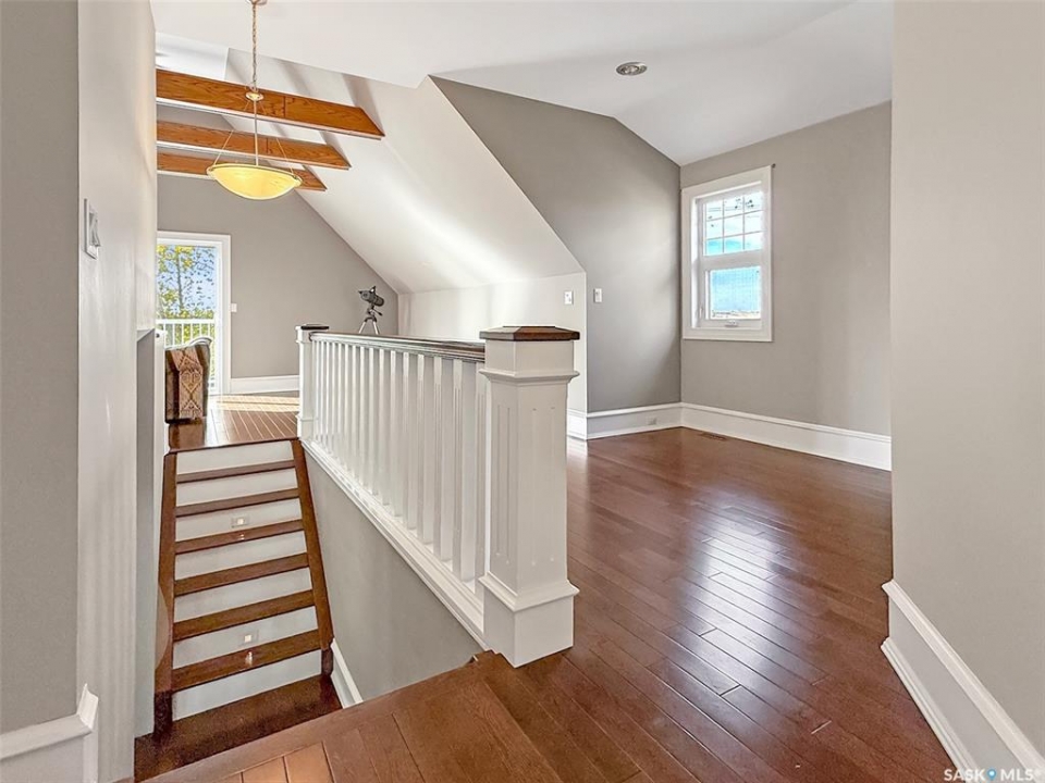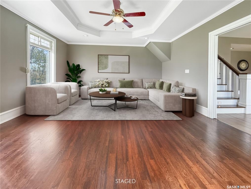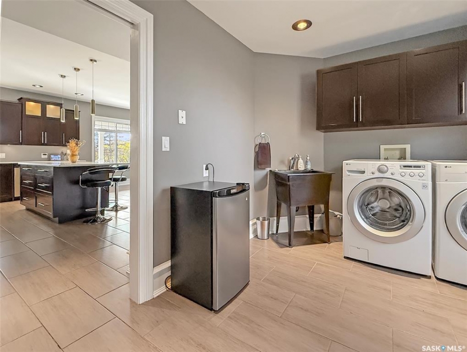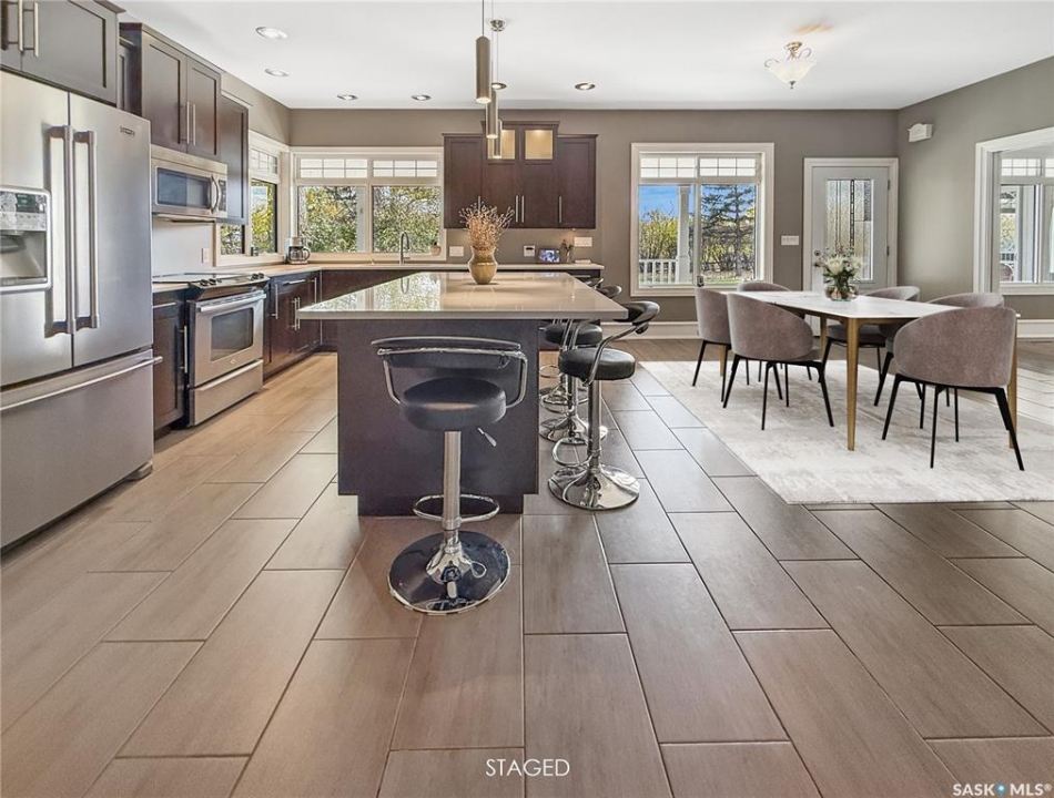 Discover an exquisite blend of privacy and convenience with this luxurious "in city" acreage. Nestled on the eastern edge of the city, this picturesque 1.5-acre property is enveloped by a lush shelter belt and bordered by a serene creek, offering stunning views. The craftsman-style home exudes charm with its elegant wraparound veranda, second-story dormers, and expansive windows that flood the interior with natural light.Upon entering, you'll be greeted by a graceful staircase leading to the second floor. To one side is a sitting room, the other side hosts a fully renovated eat-in kitchen and dining area. The kitchen features rich cabinetry, Stone countertops, a large island with seating, and SS appliances, all overlooking the beautiful yard. The main floor also includes a bedroom/office, a newly renovated bathroom, and a large laundry room that connects to the breezeway and a heated double car garage.The second floor boasts a charming bonus room with open-beam construction and a balcony overlooking the yard. Two additional bedrooms and a guest bath are located in the opposite wing. The master suite is a true highlight, featuring window seats, a closet spanning the entire wall, a private balcony, and a newly renovated five-piece en suite with a standalone tub and walk-in shower.The lower level offers a large family room, a fifth bedroom, a renovated three-piece bathroom, and an oversized utility/storage room. The home equipped with a zoned furnace(2024), two water heaters (one dedicated to floor heating in the garage and kitchen), central air and shingles installed(8 years ago). Additional updates include vinyl siding, triple-pane PVC windows, fresh paint throughout, and updated trim. The property is connected to city power and water, with a newly replaced septic tank and pump.Outside, the veranda leads to a fully enclosed hot tub room with panoramic windows. The property also includes an additional shop, a cozy fire pit area, and an additional back deck.