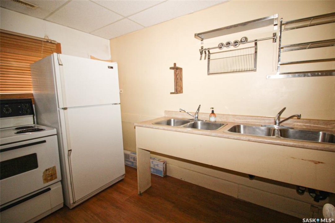An exceptional opportunity awaits with this well-loved small business property, available for immediate possession! This versatile little building has truly stood the test of time — serving as everything from a cozy bookstore to a bustling coffee shop. Perfectly positioned right beside the grocery store, it boasts an ideal high-traffic location with a bright, welcoming façade that's sure to draw customers in. Step inside to a spacious reception area with a built-in counter, perfect for taking orders or greeting clients. Behind the counter, you'll find a convenient storage area complete with two sinks — one for hand washing and one for prep — making it functional for a wide variety of uses. The separate kitchen area features four plumbed sinks, a full-sized fridge, and a stove, giving you the infrastructure you need to start operations right away. The property also includes a handy 2-piece bathroom with a shower, and a rear porch that leads out to the backyard with lane access — ideal for deliveries or outdoor seating. Infrastructure include a durable metal roof, a natural gas furnace, and a new hot water heater (2020), ensuring the space is move-in ready. With its unbeatable location, flexible layout, and history of success, this is truly a turn-key opportunity — your dream business could be up and running in no time. Opportunities like this don't come often, so don't let this one slip away!