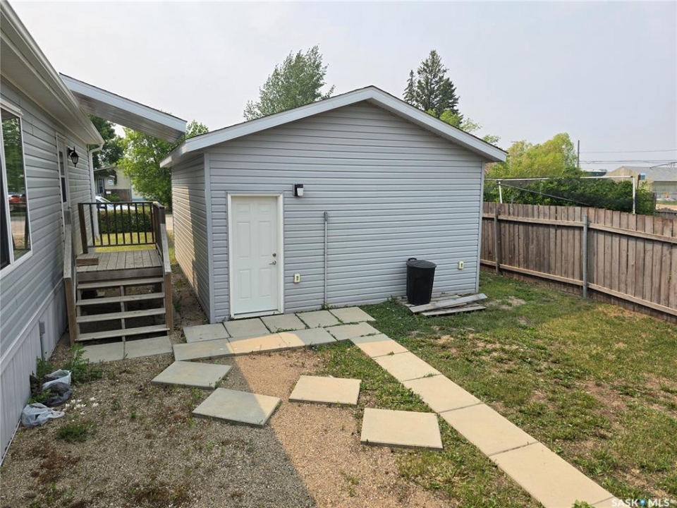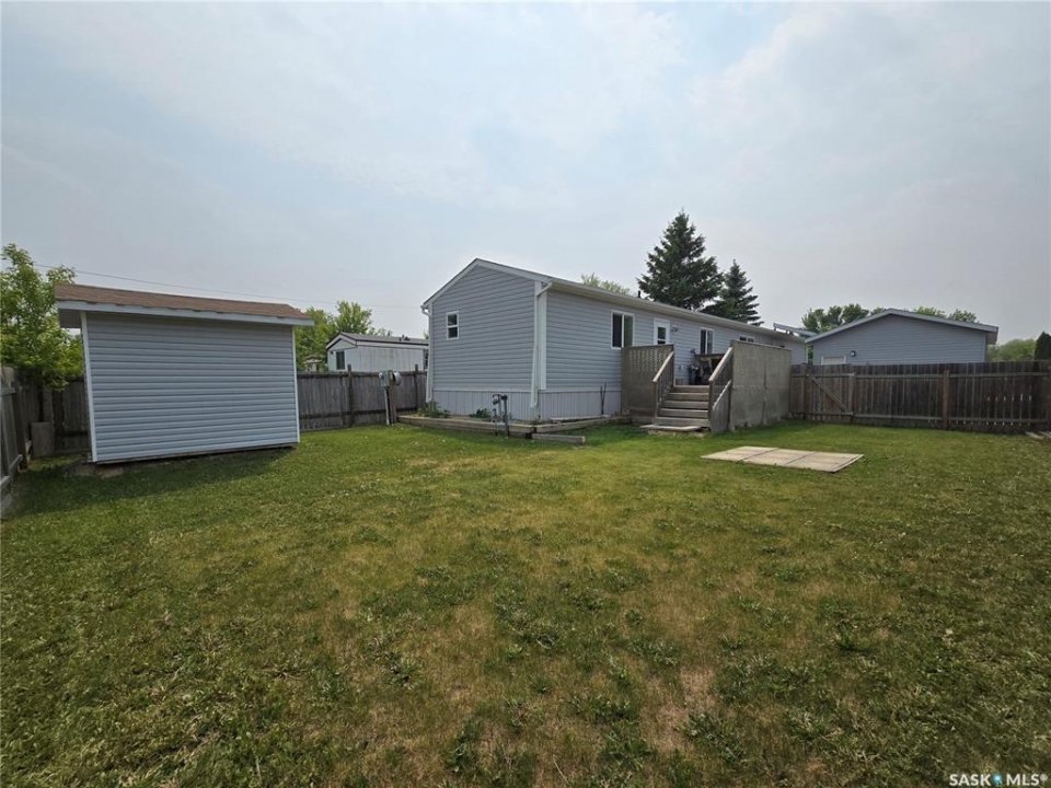 QUICK POSSESSION IS AVAILABLE! Welcome to one of Humboldt's newest and nicest mobile homes! This 1,216 sq. ft. mobile home was built in 2013 and features a vaulted ceiling in the living room, kitchen, and dining room. New Maytag stainless steel appliances in 2021 include fridge, stove, dishwasher, and over-the-range microwave/fan. New Maytag washer and dryer in 2021. New central A/C installed in 2022. The master bedroom features a 4 piece ensuite and walk-in closet. There's a 10' x 16' deck at the rear of the home and a fenced backyard. The 18' x 24' single detached garage (not insulated) built in 2021 features a garage door opener, power services, a 220 V electric heater, and an entry door. An 8' x 10' shed is also included. Just a few doors away from Wilf Chamney Park and a few blocks away from St. Dominic School.