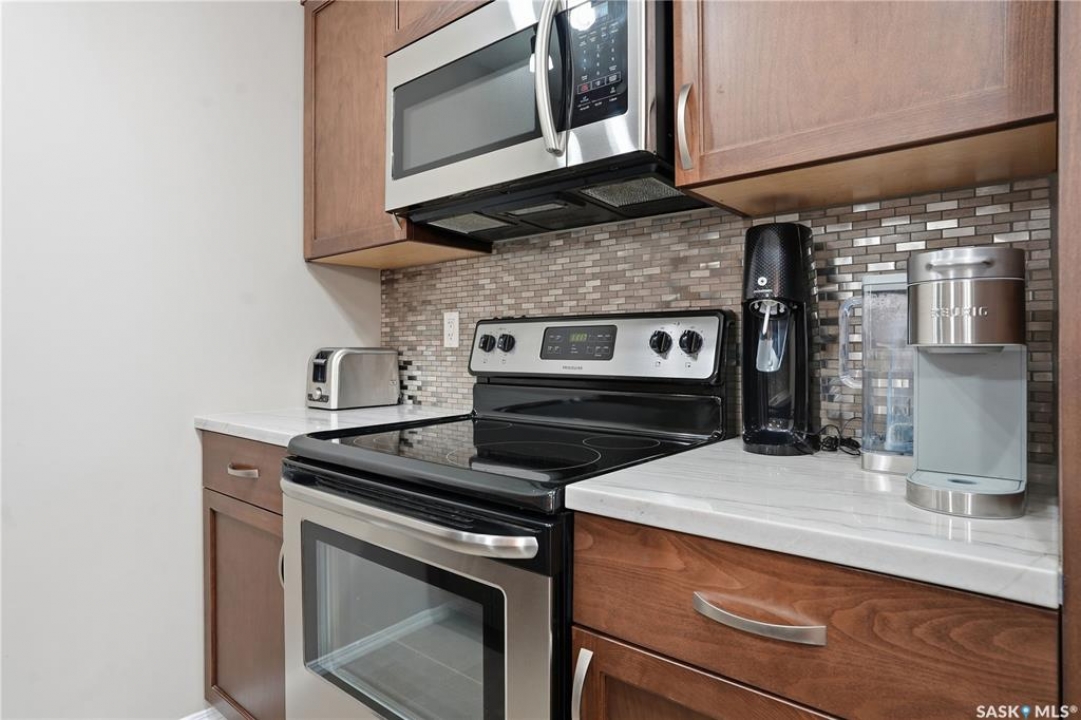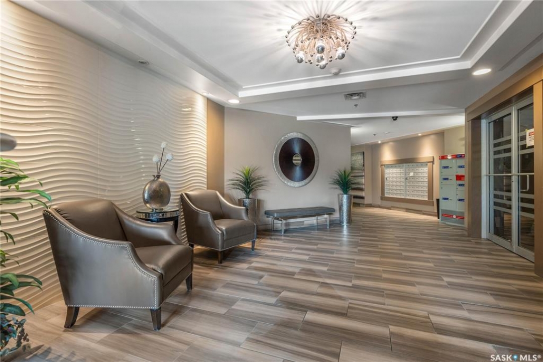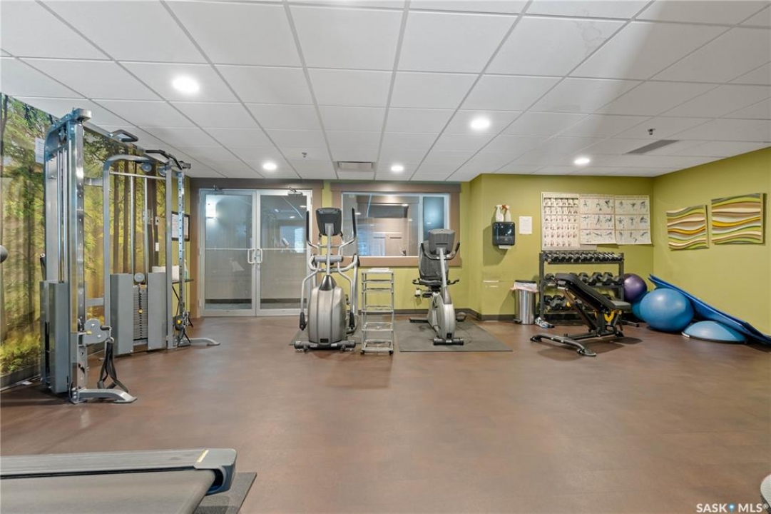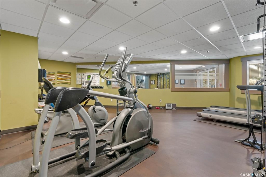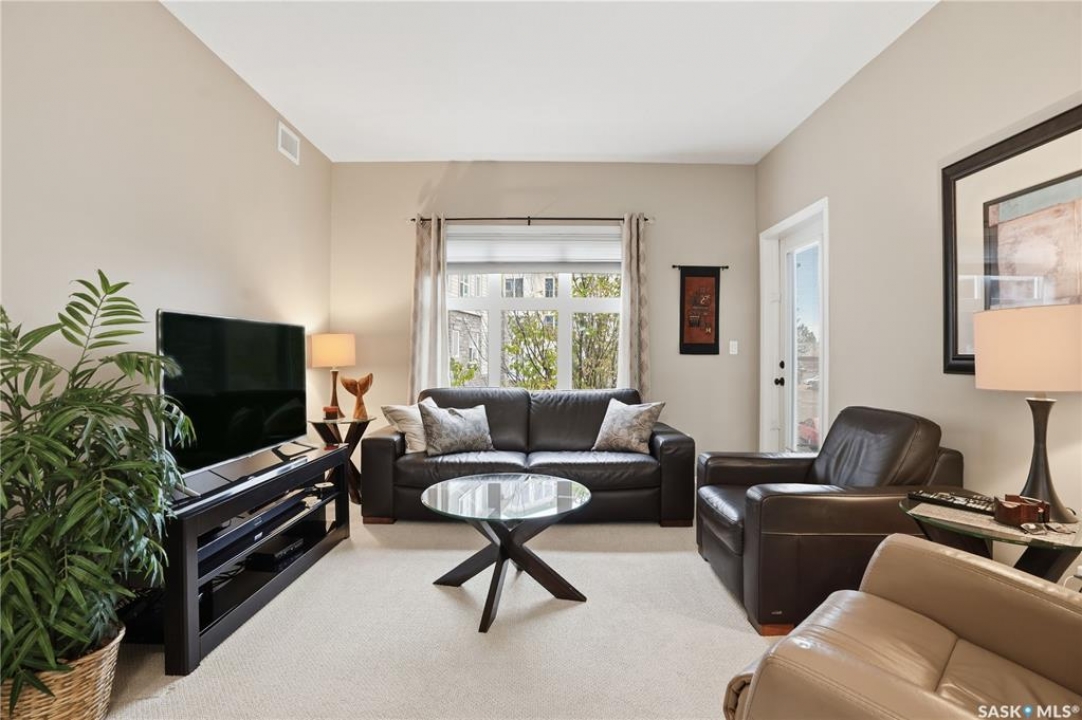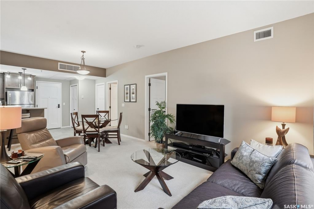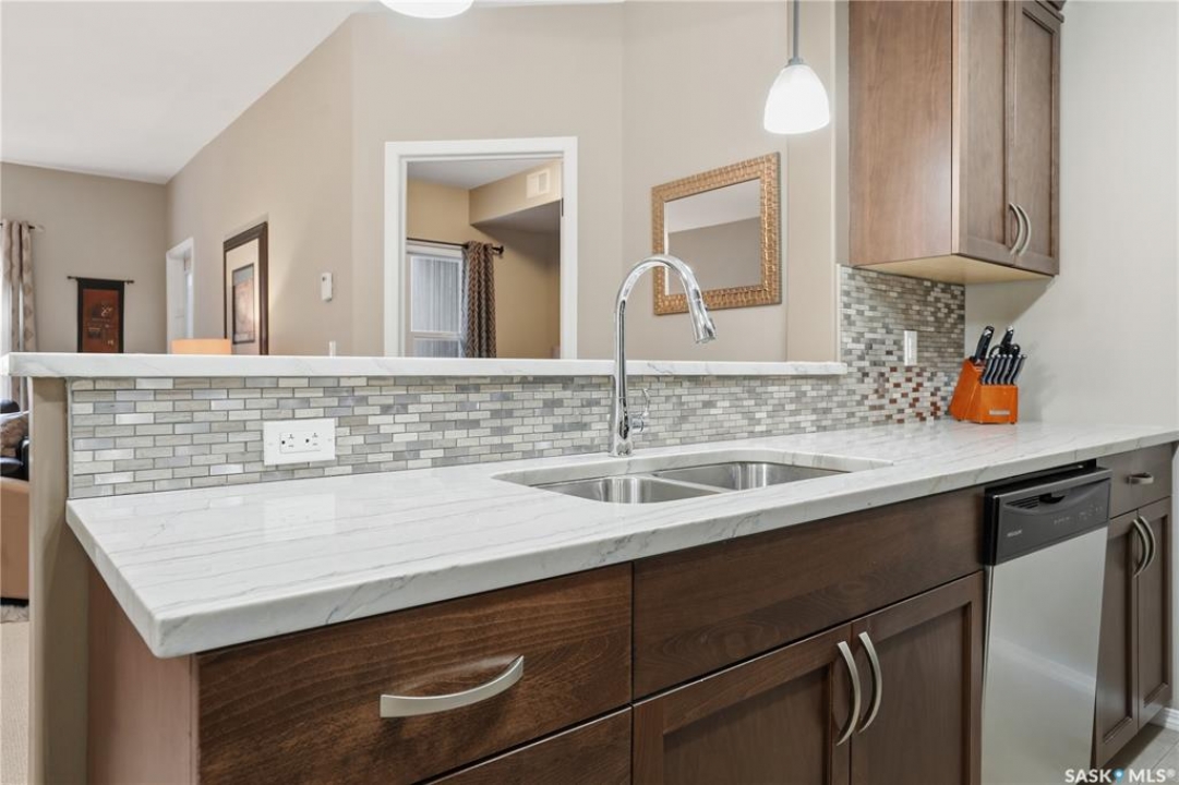Welcome to Bellagio Terrace, one of Regina's upscale condo communities, perfectly located in the heart of Hillsdale—steps from Wascana Park, University of Regina, Wascana Rehab, Conexus Arts Centre and countless south-end amenities. Beautifully maintained 2nd floor unit offering 885 sq ft of comfortable MOVE IN READY living space with 2 bedrooms + 2 bathrooms. This home is ideal for 1st time buyers, busy professionals or anyone looking to simplify their lifestyle without compromising on quality, style & convenience. Step inside to an inviting open-concept layout with warm neutral tones and large windows creating a bright atmosphere. Modern kitchen features rich maple cabinetry, tiled backsplash, stainless steel appliances and a sit-up island—perfect for entertaining or casual dining. The dining and living area opens to a private balcony, where you can enjoy your morning coffee, unwind after work or grill a steak on your BBQ. The large primary suite features a walk-in closet and 3-piece ensuite, while the second bedroom and full 4-piece bathroom provide flexibility for guests or a home office. Additional highlights include new carpet, top down bottom up custom blinds, central A/C, in-suite laundry & storage room plus 1 underground heated parking stall which is a luxury during SASK winters. This parking stall is a preferred spot and fits a full sized pick up and is easy to navigate. Condo fees include: heat, water, common area maintenance, snow removal, lawn care and building insurance which make ownership simple and stress-free. Residents enjoy access to a well-equipped fitness room, owner's lounge (currently under reno to refresh the look) and secure elevator access—all in a quiet, pet-friendly building managed by W Management. Whether you're a first-time buyer ready to build equity, a professional seeking convenience or a down-sizer looking for lock-and-leave comfort, the Bellagio Terrace condo delivers the perfect blend of style, security and location.