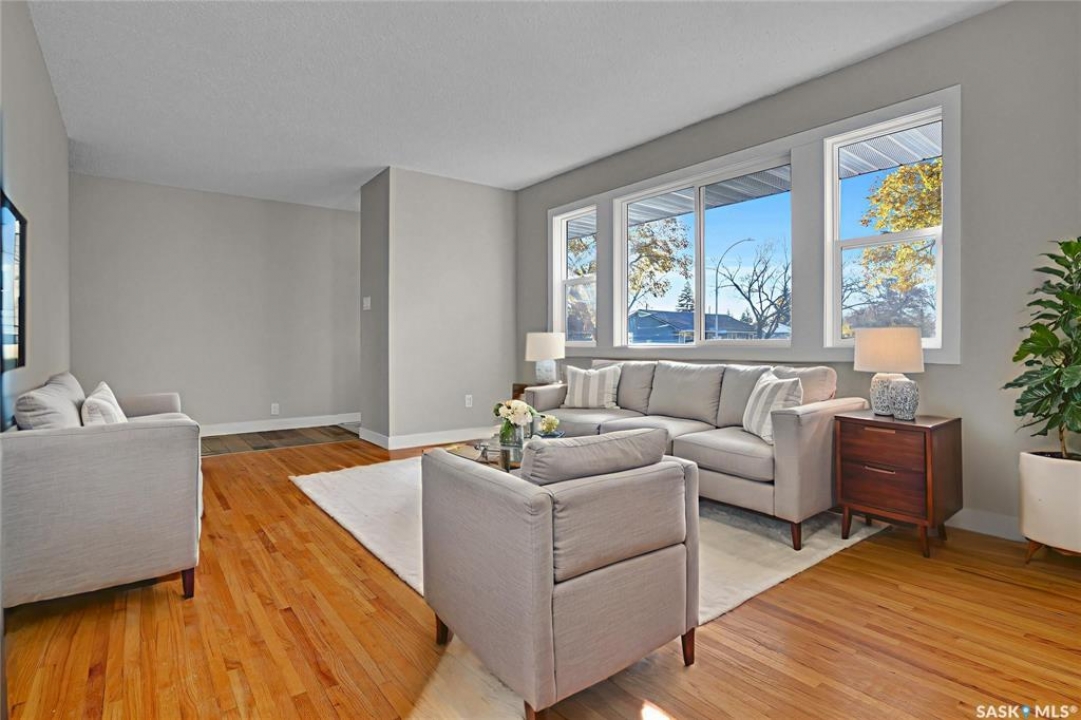 This beautifully maintained bungalow is move-in ready, boasting a myriad of stylish upgrades that combine comfort & functionality. Nestled on a tranquil street, this gem offers a large, private yard, enveloped by mature trees, providing a serene oasis for relaxation and entertainment. Note - Sewer line was replaced including the addition of a backflow valve from house to street has been completed. This home has 3 Bedrooms, a Den & has Finished Lower Level. Step inside to discover a bright and welcoming living space, anchored by hardwood floor that exude warmth and elegance. The heart of the home, the kitchen, which is open to the dining area, has been tastefully updated with modern white cupboards, sleek countertops, and a convenient pantry, all enhanced by elegant tile flooring. The bathroom, revamped by Bath Fitters, features a chic vanity with a granite top, perfectly paired with matching tile for a cohesive look. Throughout the main floor, nearly all windows have been replaced with newer PVC models, ensuring energy efficiency & abundant natural light. The interior also boasts upgraded lighting, and beautiful new laminate flooring that flows through both the main level and the finished basement, elegantly accented with new trim and baseboards. The exterior of the home is equally impressive, with tasteful newer vinyl siding complemented by updated shingles, creating a polished, turnkey exterior. The single garage provides ample storage and workspace, while the private yard offers character and charm, and with your gardening skills can be your next oasis. This bungalow not only offers a solid foundation but also peace of mind with its comprehensive updates. It's a blend of style, comfort, and modern convenience, ready to welcome its new owner's home. Don't miss the opportunity to make this exquisite property yours! CLICK ON THE MULTI MEDIA LINK FOR A FULL VISUAL TOUR and call today for your personal viewing.