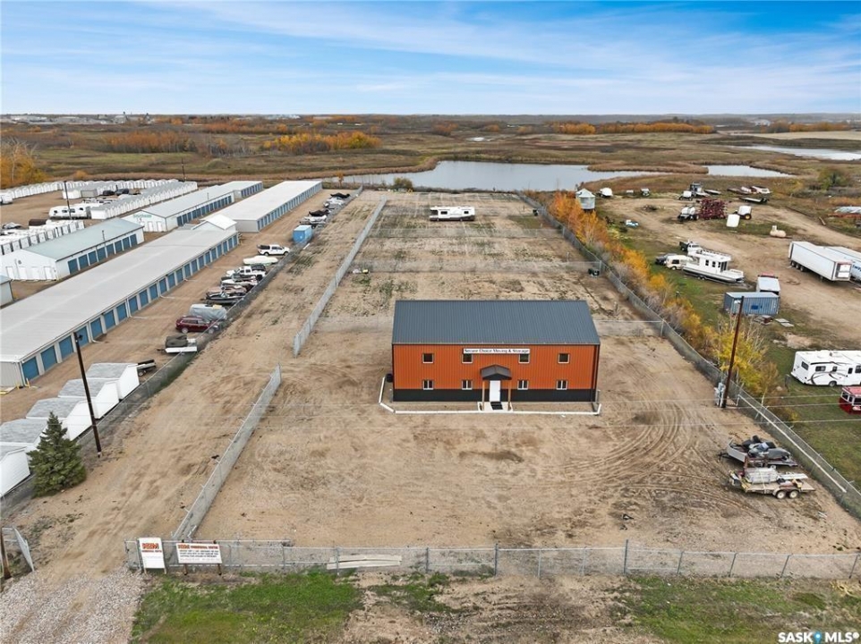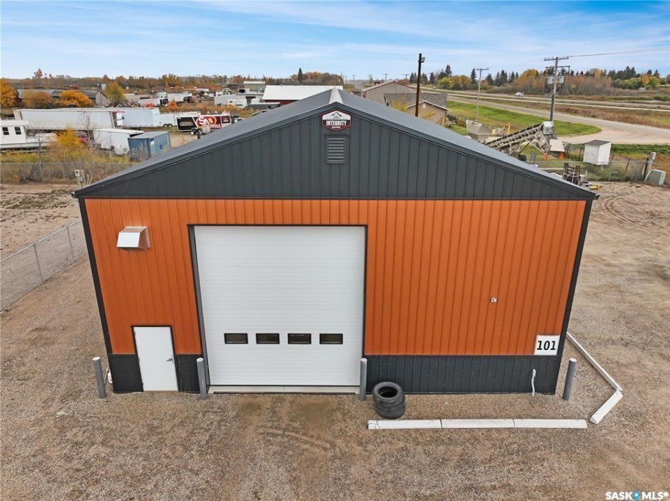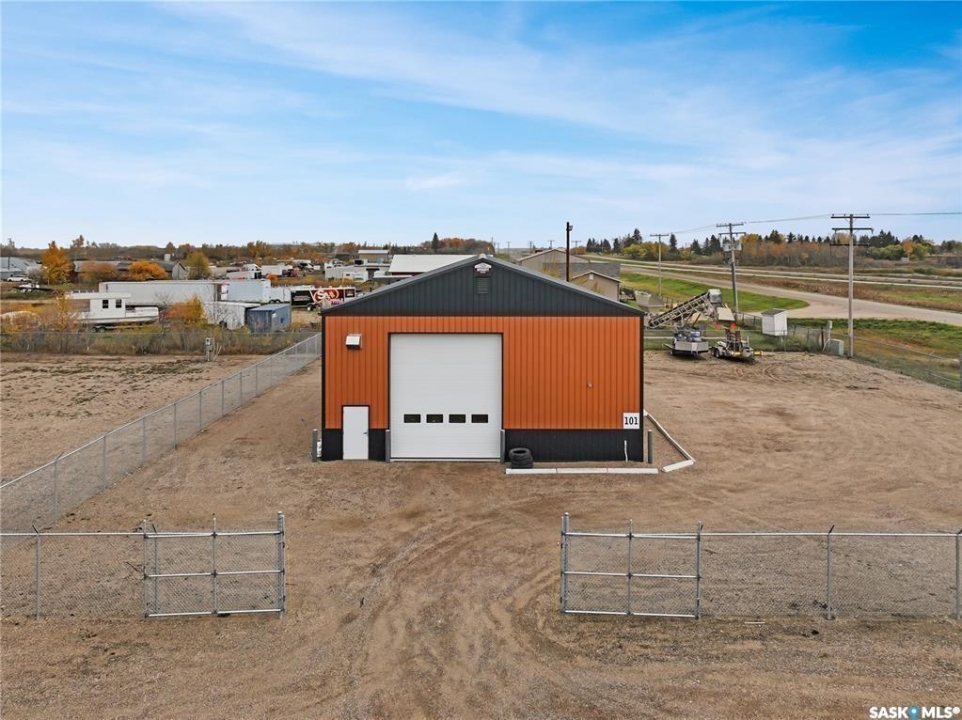 High-Exposure Commercial Property with 2400sqft Shop & FIVE fenced serviced compounds/lots. This 2.54-acre highway-front property offers outstanding visibility and flexibility. It includes a like-new(2021) 2,400sqft commercial shop (40' x 60') with 18' ceilings, a 12' x 16' overhead door, radiant heat, bathroom, kitchenette, and fenced yard. The building is designed for expansion with optional mezzanine space. Also included are five fully fenced, serviced compounds (each 100' x 150') with double-gate access—perfect for storage, equipment, or business operations. All lots are cleared and fully serviced with natural gas, power, and telephone. Ideal for workshops, manufacturing, or retail use, this property delivers prime highway exposure, secure fencing, and move-in-ready infrastructure.