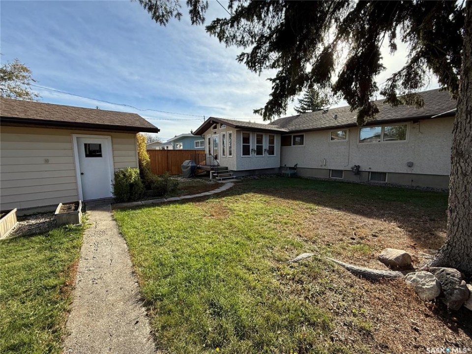 Charming 4-Bedroom Home with Sunroom in a Quiet, Central Location. This spacious 1,381 sq. ft. home offers the perfect blend of modern updates and timeless charm. Featuring 4 bedrooms and 2 bathrooms, this property has been thoughtfully maintained with many upgrades throughout. The main floor includes updated windows, fresh paint, and a large mudroom/entrance leading into a bright and inviting sunroom — ideal for relaxing with a great book. The high-efficiency furnace ensures year-round comfort, while the exterior stucco and brick finish add lasting appeal. Downstairs, you'll find an updated basement with vinyl plank flooring, a spare bedroom, and a laundry area with storage along with a second bathroom. Outside, enjoy a fully fenced yard with a newer wood fence, single detached garage, and mature landscaping. Located in a quiet neighborhood, this home is centrally situated near several schools yet tucked away on a peaceful street. A wonderful opportunity to move right in and enjoy — modern comfort meets classic style!